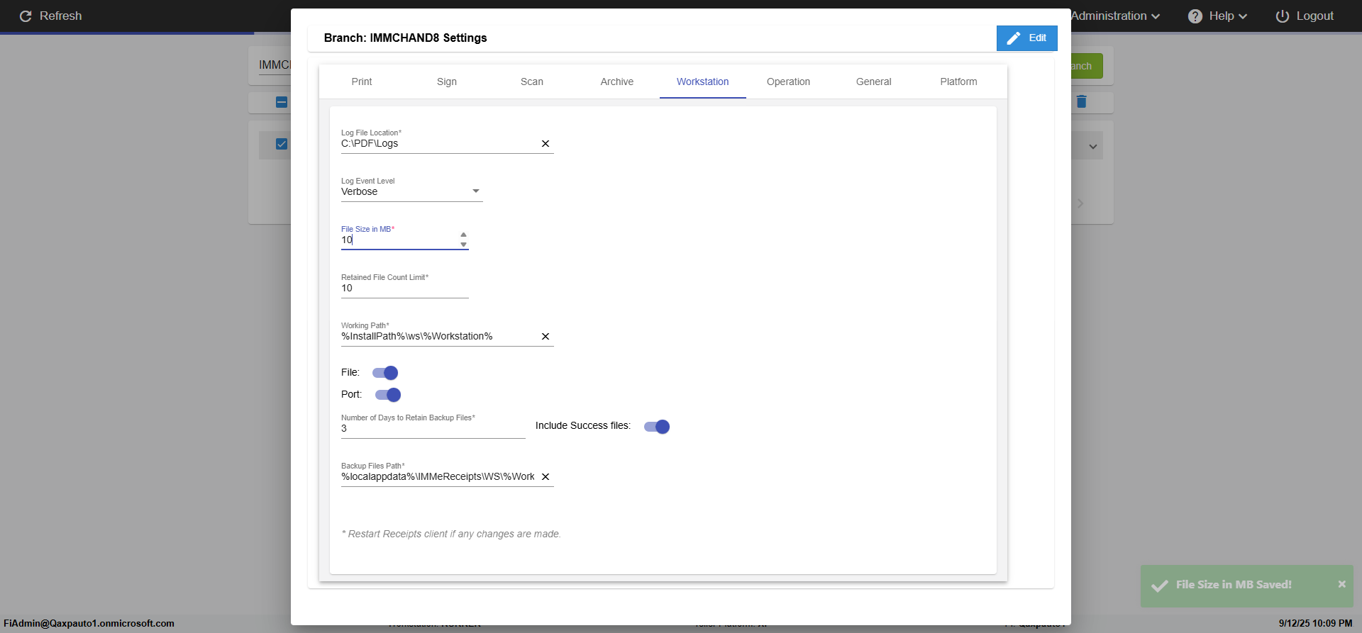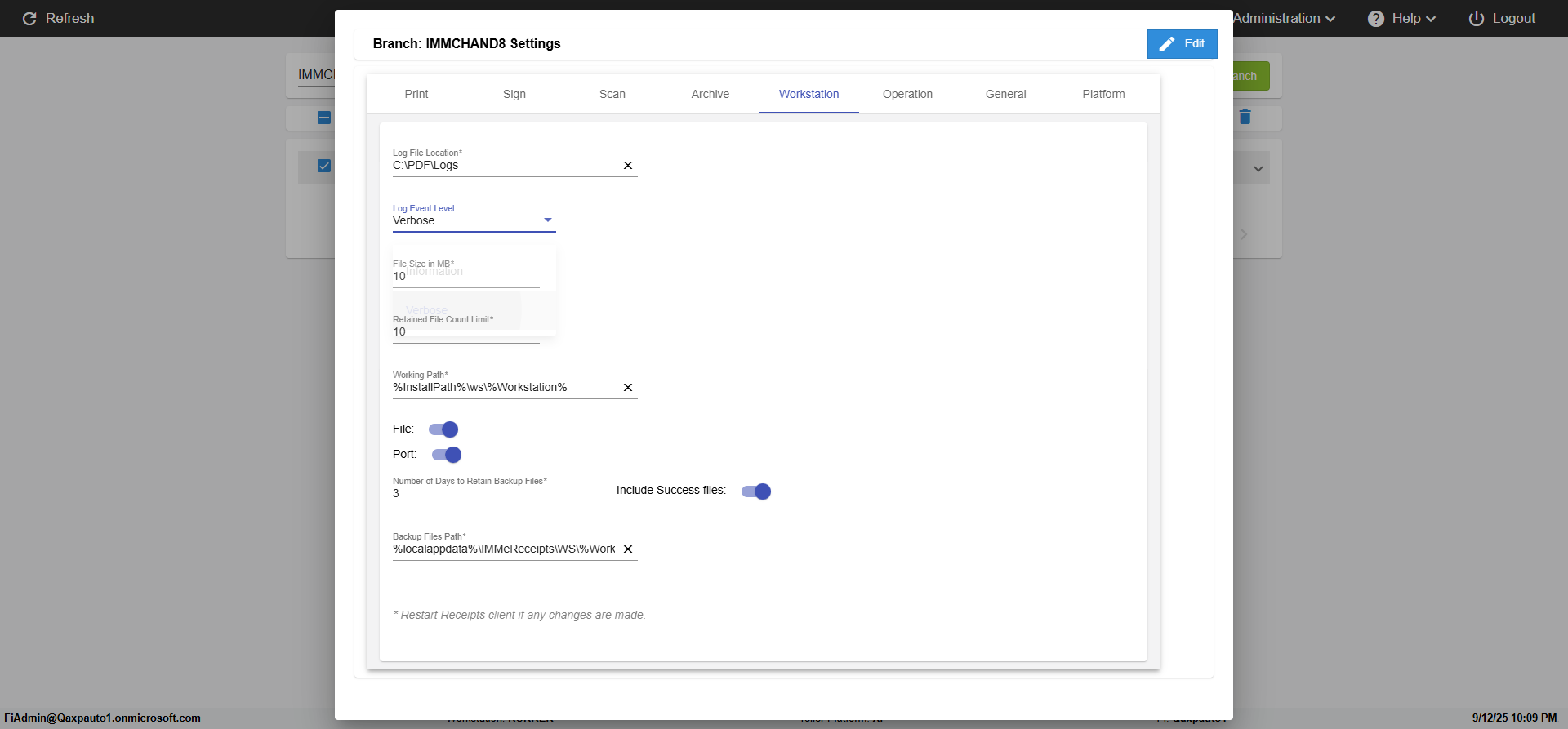 | {FromBranch=, Archived Transactions=, Description=verify Workstation Settings In Admin, Archive=, Operation=, print signatur=, Name=, Clear=, TestID=verifyFIWorkstationSettingsInAdmin, Phone=, MultipleWorkstation=, WorkstationName=, ToBranch=, WorkstationDeleteOption=, Subscription Names=, BranchName=, retention=, FilePath=, Agent=, UserPwd=iMM2022!, BranchDeleteOption=, Transtatus=Archived-false;Active-true;Error-false, Receipt=, Report=, Index_Field_Name=, Agents=Log File Location-C:\PDF\Logs;Log Event Level-Verbose;File Size in Bytes-10;Retained File Count Limit-10;File-True;Port-false;Retain Backup Days-3;Include Success Files-true;, IPFilter=, Text=, Hold Notice=, Suppress=, SchedualType=, Date=, Platfrom=, GroupId=, print Disburstments=, Role=, Brand=, SMTP=, Print signature line=, TimeZone=, Imaging System=, Header=, MultipleBranches=, Username=fiAdmin@Qaxpauto1.onmicrosoft.com, MappedOption=, Sign=, Scan=, PortNumber=} |
