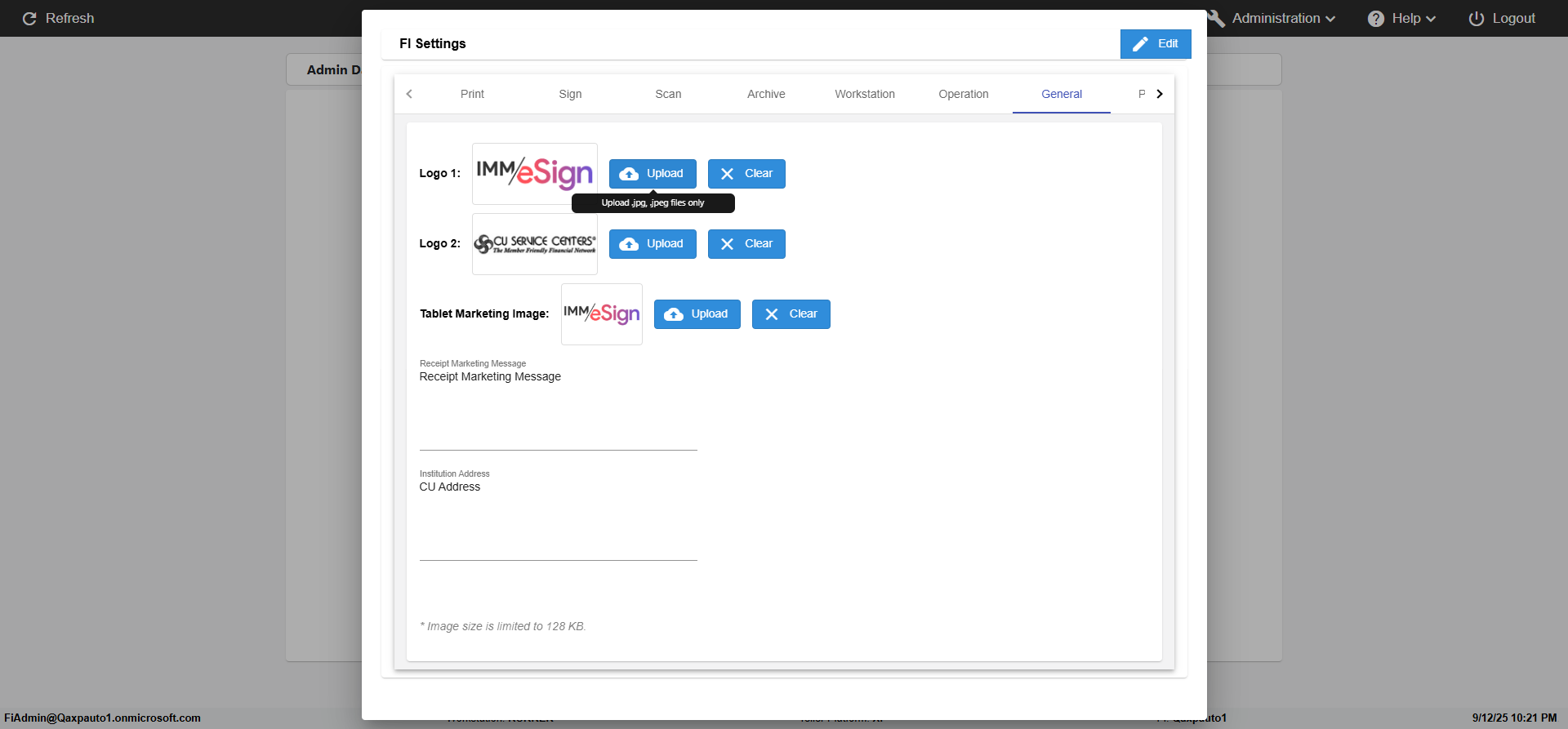 | {FromBranch=, Archived Transactions=, Description=verify Institution address label, Archive=, Operation=, print signatur=, Name=, Clear=, TestID=verifyInstAddressLabelinFiSettings, Phone=, MultipleWorkstation=, WorkstationName=, ToBranch=, WorkstationDeleteOption=, Subscription Names=, BranchName=, retention=, FilePath=, Agent=, UserPwd=iMM2022!, BranchDeleteOption=, Transtatus=Archived-false;Active-true;Error-false, Receipt=, Report=, Index_Field_Name=, Agents=, IPFilter=, Text=, Hold Notice=, Suppress=, SchedualType=, Date=, Platfrom=, GroupId=, print Disburstments=, Role=, Brand=Logo 1-src/main/resources/testdata/files/Logo1.jpg;Logo 2-src/main/resources/testdata/files/Logo2.jpg;Receipt Marketing Message-Receipt Marketing Message;CU Address-CU Address;Marketing Image-src/main/resources/testdata/files/eSignLogoTablet.jpg;, SMTP=, Print signature line=, TimeZone=, Imaging System=, Header=, MultipleBranches=, Username=fiAdmin@Qaxpauto1.onmicrosoft.com, MappedOption=, Sign=, Scan=, PortNumber=} |