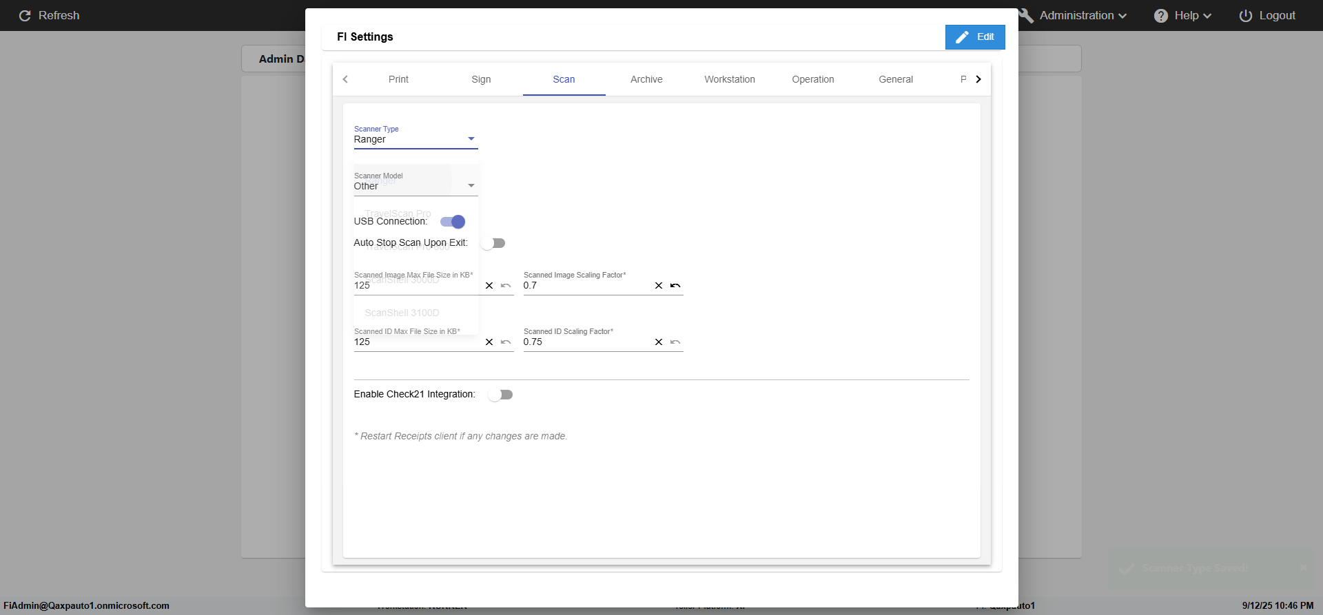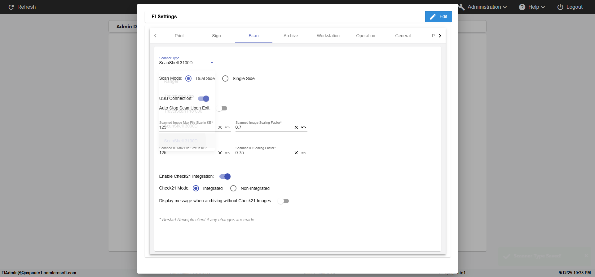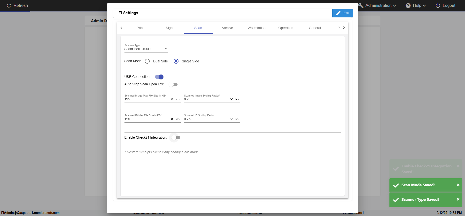 | {FromBranch=, Archived Transactions=, Description=verify Scan Settings In Admin, Archive=, Operation=, print signatur=, Name=, Clear=, TestID=verifyFIScanSettingsInAdmin, Phone=, MultipleWorkstation=, WorkstationName=, ToBranch=, WorkstationDeleteOption=, Subscription Names=, BranchName=, retention=, FilePath=, Agent=, UserPwd=iMM2022!, BranchDeleteOption=, Transtatus=Archived-false;Active-true;Error-false, Receipt=, Report=, Index_Field_Name=, Agents=, IPFilter=, Text=, Hold Notice=, Suppress=, SchedualType=, Date=, Platfrom=, GroupId=, print Disburstments=, Role=, Brand=Logo 1-src/main/resources/testdata/files/Log1.jpg;Logo 2-src/main/resources/testdata/files/Log2.jpg;Receipt Marketing Message-Receipt Marketing Message;CU Address-CU Address;Marketing Image-src/main/resources/testdata/files/Log2.jpg;, SMTP=, Print signature line=, TimeZone=, Imaging System=, Header=, MultipleBranches=, Username=fiAdmin@Qaxpauto1.onmicrosoft.com, MappedOption=, Sign=, Scan=Scanner Type-ScanShell 3000D;Image Mode-SingleSide;USB Connection-true;CK21 Integration-False;, PortNumber=} |