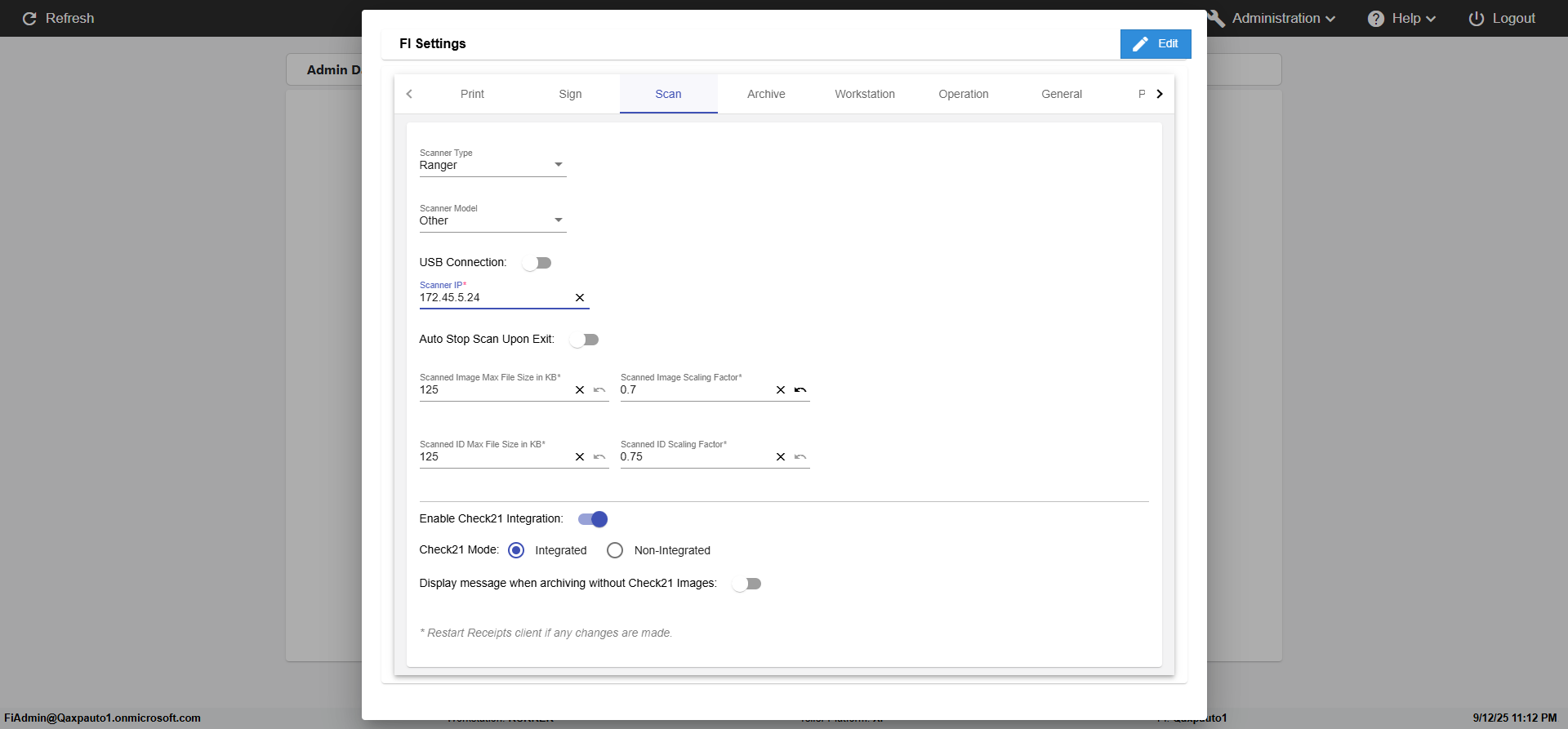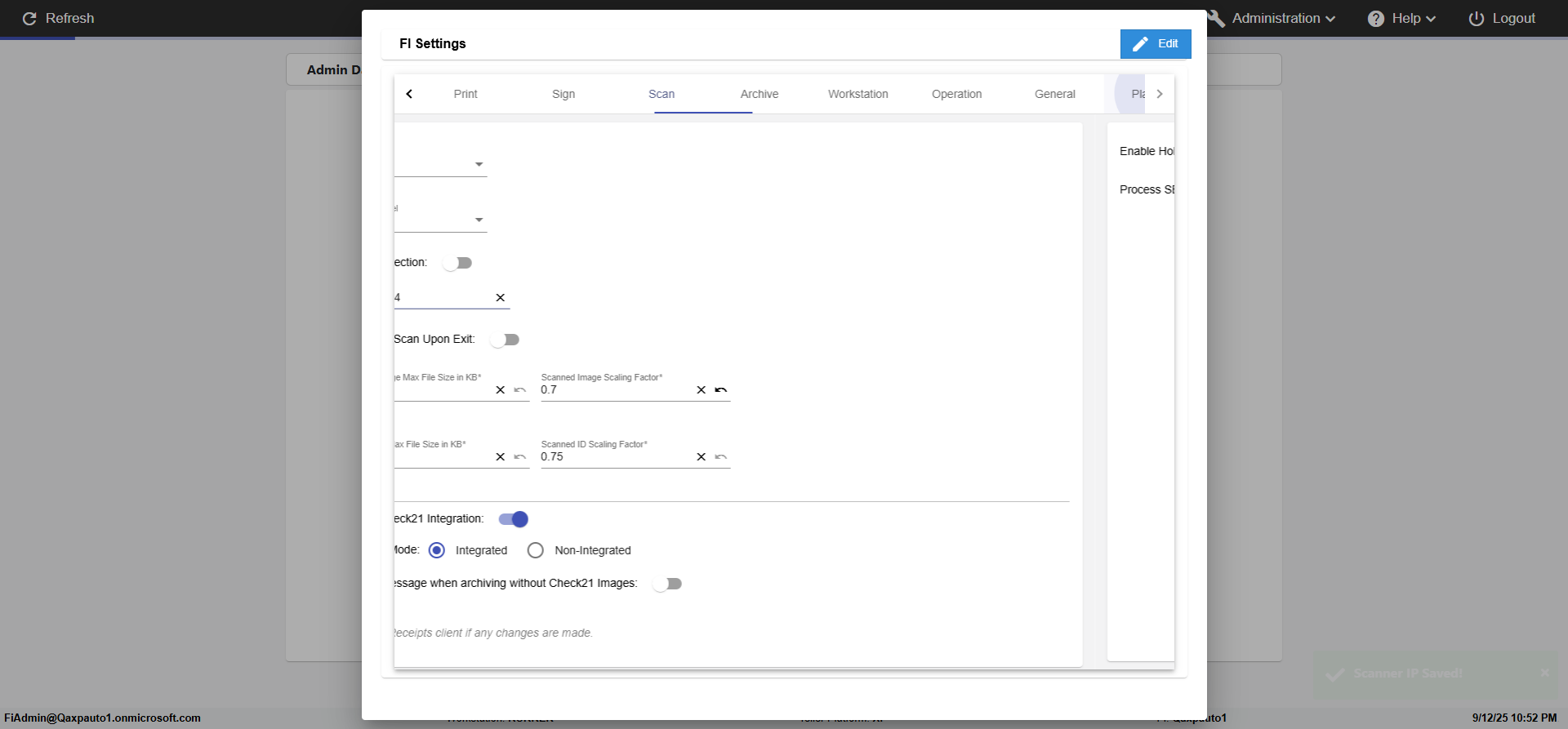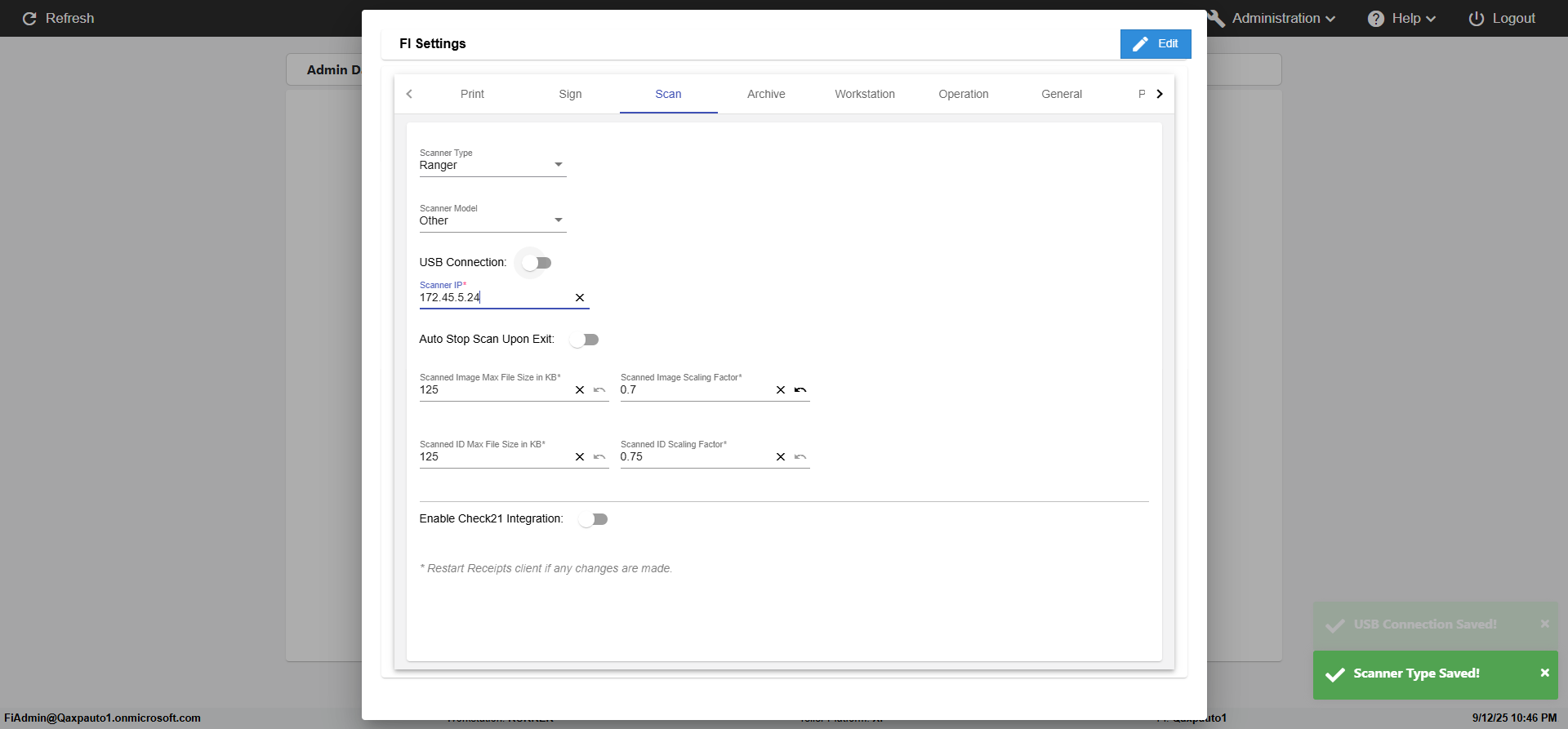 | {FromBranch=, Archived Transactions=, Description=verify Scan Settings In Admin, Archive=, Operation=, print signatur=, Name=, Clear=, TestID=verifyFIScanSettingsInAdmin, Phone=, MultipleWorkstation=, WorkstationName=, ToBranch=, WorkstationDeleteOption=, Subscription Names=, BranchName=, retention=, FilePath=, Agent=, UserPwd=iMM2022!, BranchDeleteOption=, Transtatus=Archived-false;Active-true;Error-false, Receipt=, Report=, Index_Field_Name=, Agents=, IPFilter=, Text=, Hold Notice=, Suppress=, SchedualType=, Date=, Platfrom=, GroupId=, print Disburstments=, Role=, Brand=Logo 1-src/main/resources/testdata/files/Log1.jpg;Logo 2-src/main/resources/testdata/files/Log2.jpg;Receipt Marketing Message-Receipt Marketing Message;CU Address-CU Address;Marketing Image-src/main/resources/testdata/files/Log2.jpg;, SMTP=, Print signature line=, TimeZone=, Imaging System=, Header=, MultipleBranches=, Username=fiAdmin@Qaxpauto1.onmicrosoft.com, MappedOption=, Sign=, Scan=Scanner Type-Ranger;USB Connection-false,172.0.0.1;CK21 Integration-True,Integrated,false;, PortNumber=} |