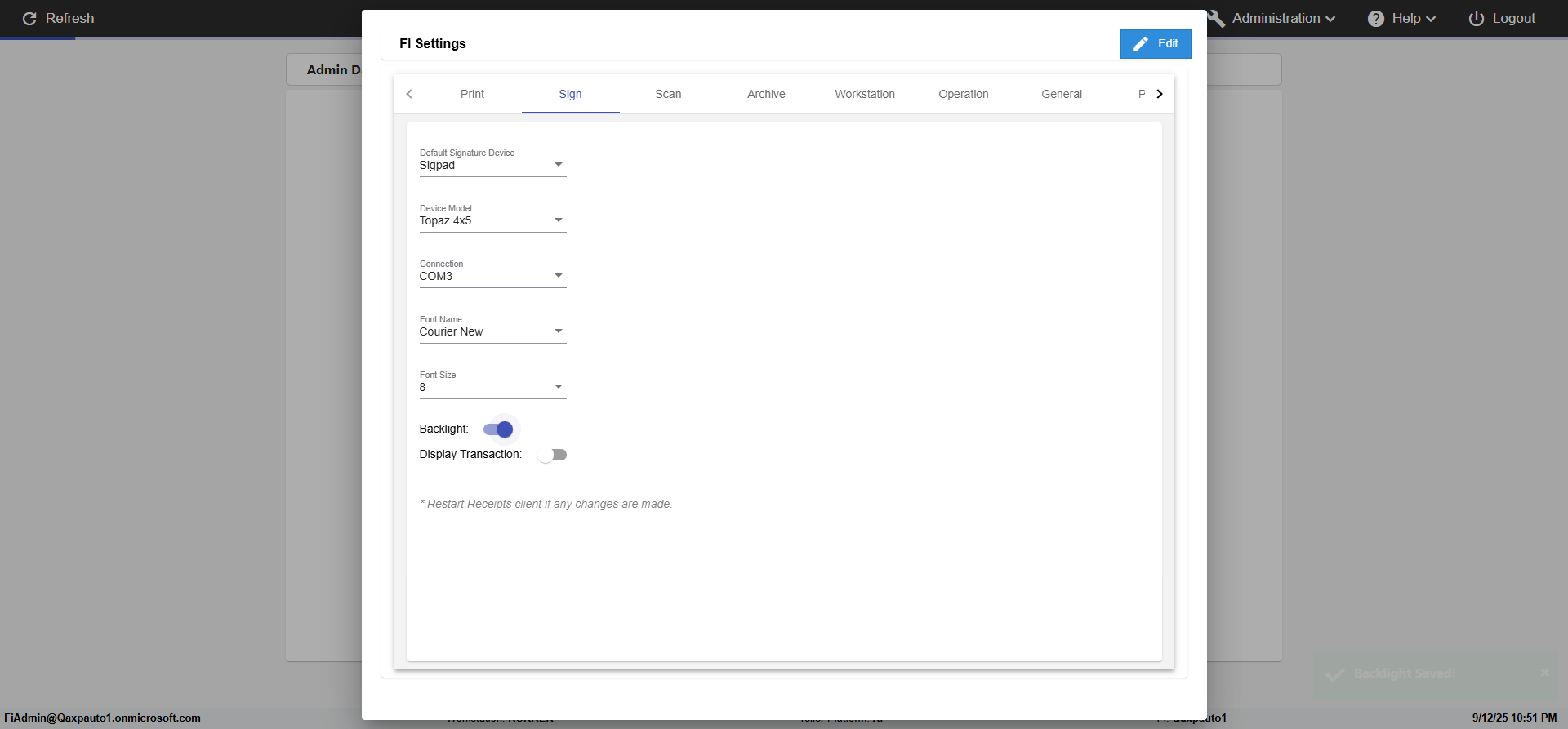 | {FromBranch=, Archived Transactions=, Description=verify sign settings Admin Portal, Archive=, Operation=, print signatur=, Name=, Clear=, TestID=verifyFISignSettingsInAdmin, Phone=, MultipleWorkstation=, WorkstationName=, ToBranch=, WorkstationDeleteOption=, Subscription Names=, BranchName=, retention=, FilePath=, Agent=, UserPwd=iMM2022!, BranchDeleteOption=, Transtatus=Archived-false;Active-true;Error-false, Receipt=, Report=, Index_Field_Name=, Agents=, IPFilter=, Text=, Hold Notice=, Suppress=, SchedualType=, Date=, Platfrom=, GroupId=, print Disburstments=, Role=, Brand=, SMTP=, Print signature line=, TimeZone=, Imaging System=, Header=, MultipleBranches=, Username=fiAdmin@Qaxpauto1.onmicrosoft.com, MappedOption=, Sign=Default Signature Device-Sigpad;Device Model-Topaz 4x5;Connection-COM3;Backlight-true, Scan=, PortNumber=} |