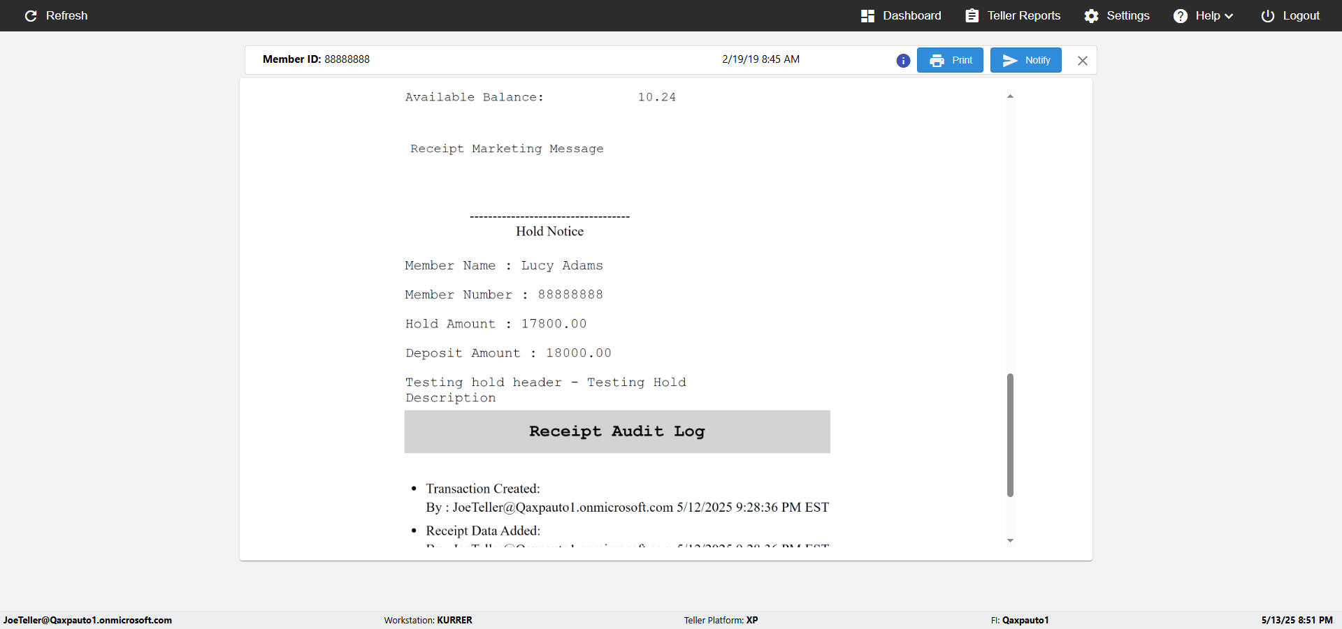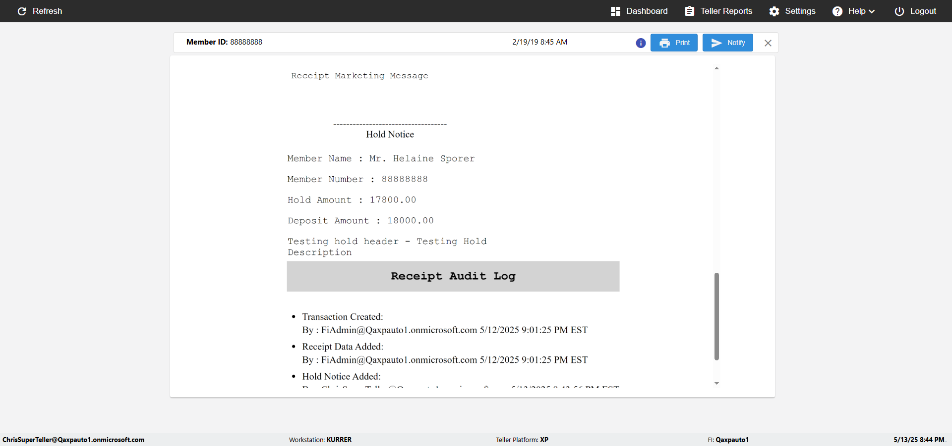 verifyTellersMemberNameUpdateinHoldNoticePage({Toggel=TRUE, Archived Transactions=no, Description=verify Updated Member Name Hold NOtice page mat...)