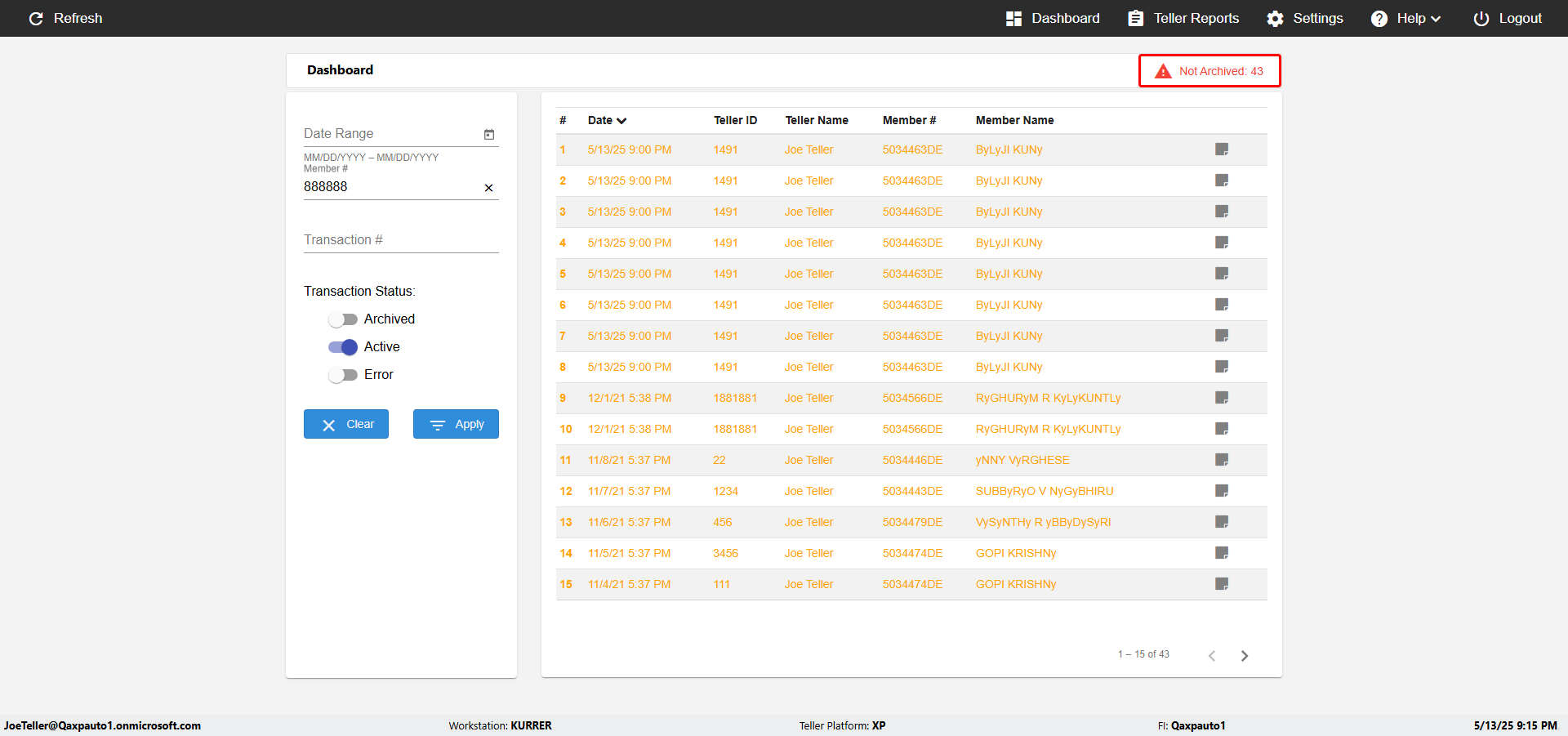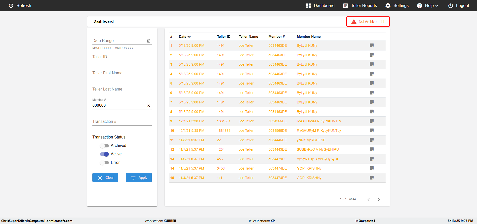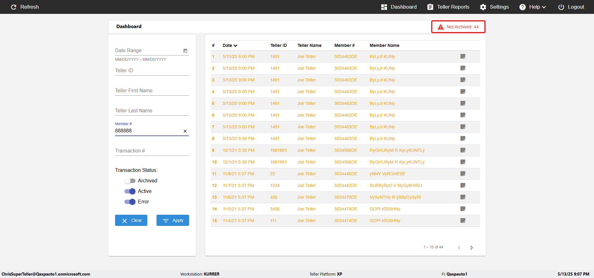| {Toggel=TRUE, Archived Transactions=no, Description=verify Updated Member Name Hold NOtice page match datfile MMR, Email=ratna.kurre@kinective.io, Archive=, Document Type=, Notify=False, SignatureTab=, DisbursedExpression=, Operation=, Teller LastName=, Disbursed cash=, errorint=, TestID=verifyTellersMemberNameUpdateinHoldNoticePage, Print=, DisbursedExpressionValue=, Phone=7328906074, ReceivedCashValue=, Member=888888, UserPwd=iMM2022!, Transtatus=Archived-false;Active-true;Error-false, Docment ID=, Teller=, Teller FirstName=, errorMessage=, ReceivedExpressionValue=, SecondName=ChrisSuperTeller@Qaxpauto1.onmicrosoft.com, Date=, Platfrom=Enable Hold Notice-true;, Received cash=, Transaction=, Header=, Expression=, Username=fiAdmin@Qaxpauto1.onmicrosoft.com, DisbursedCashValue=, FullName=katie, ReceivedExpression=, SMS=, Memo=} |