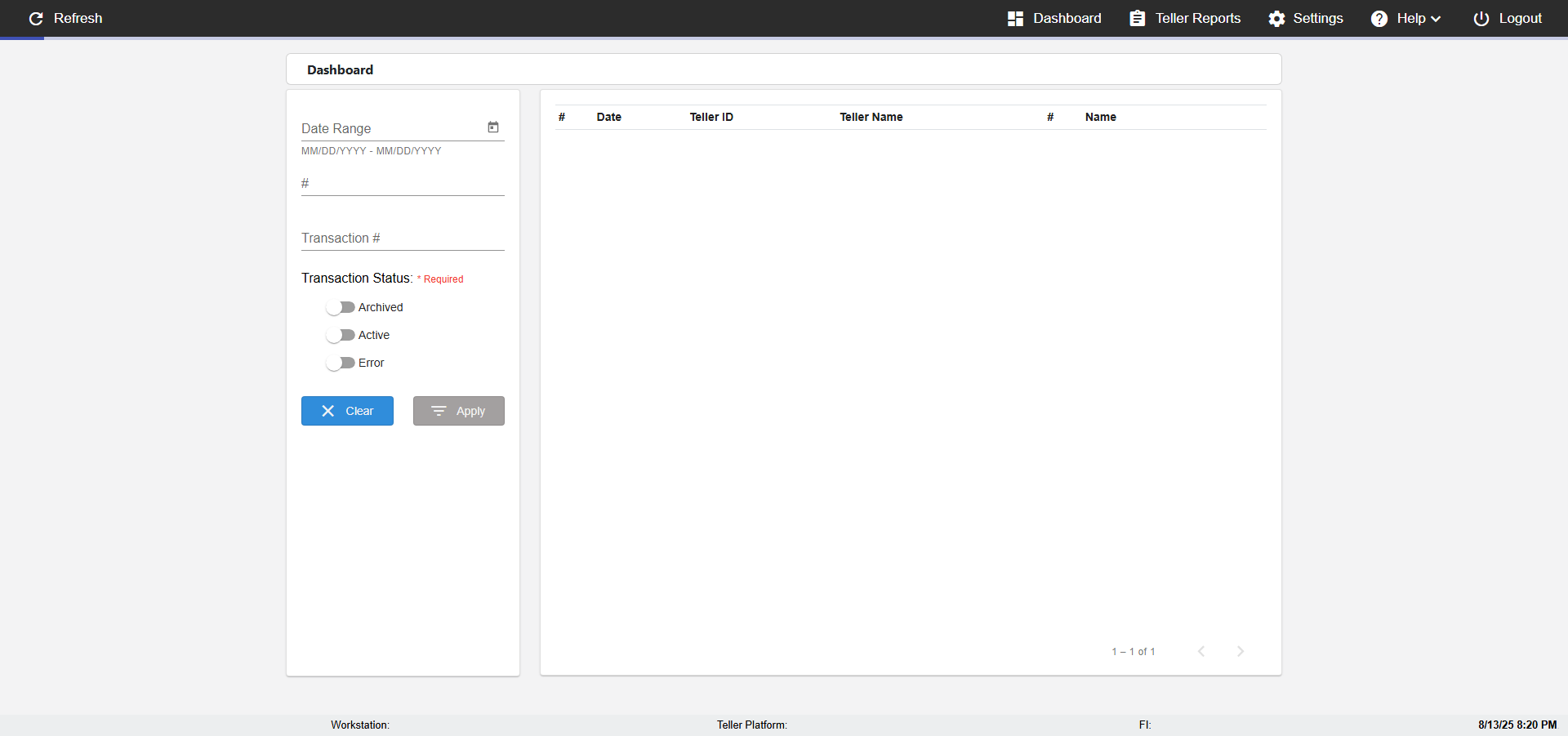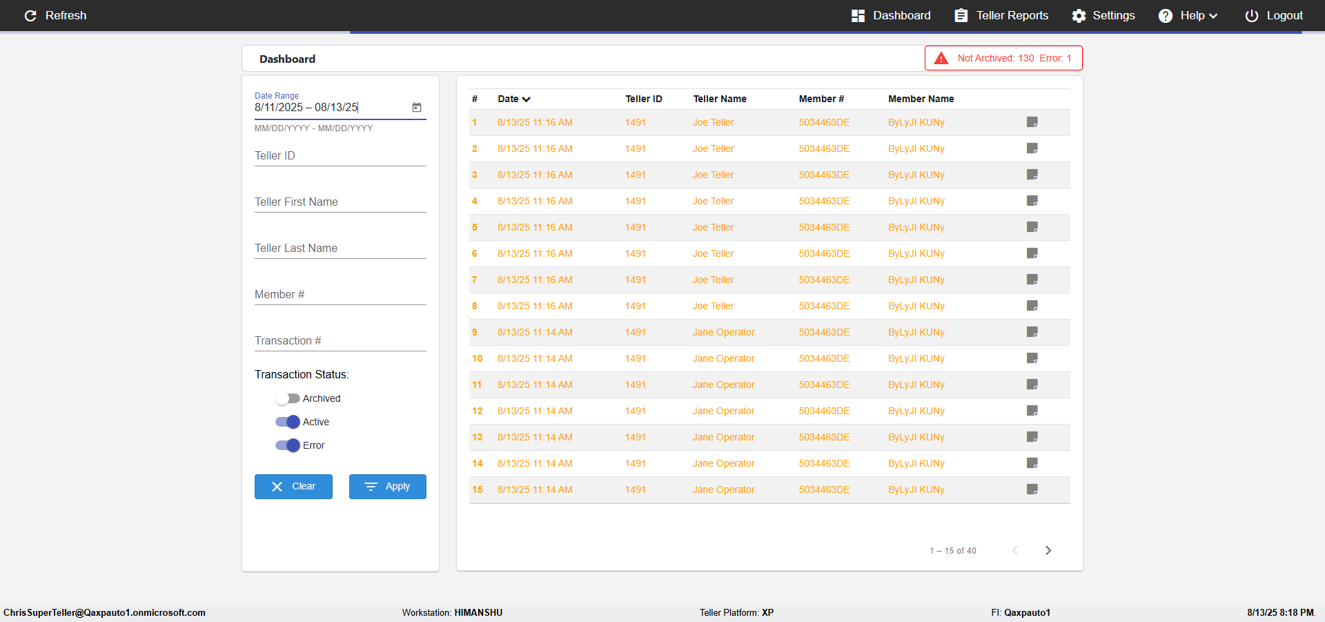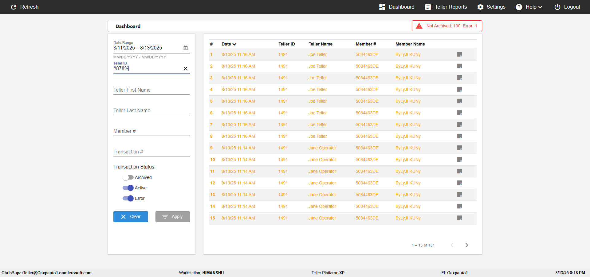| verifyErrorMessagesInDashBoardPage: verify Error Messages In DashBoard Page with Teller First and Last name | |||