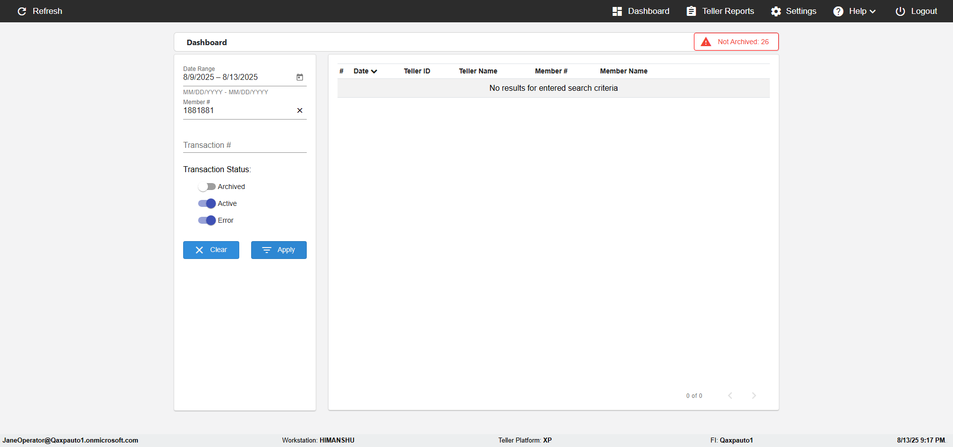 | 09:16:38 PM | ***** verify Transactions in Teller ***** | |