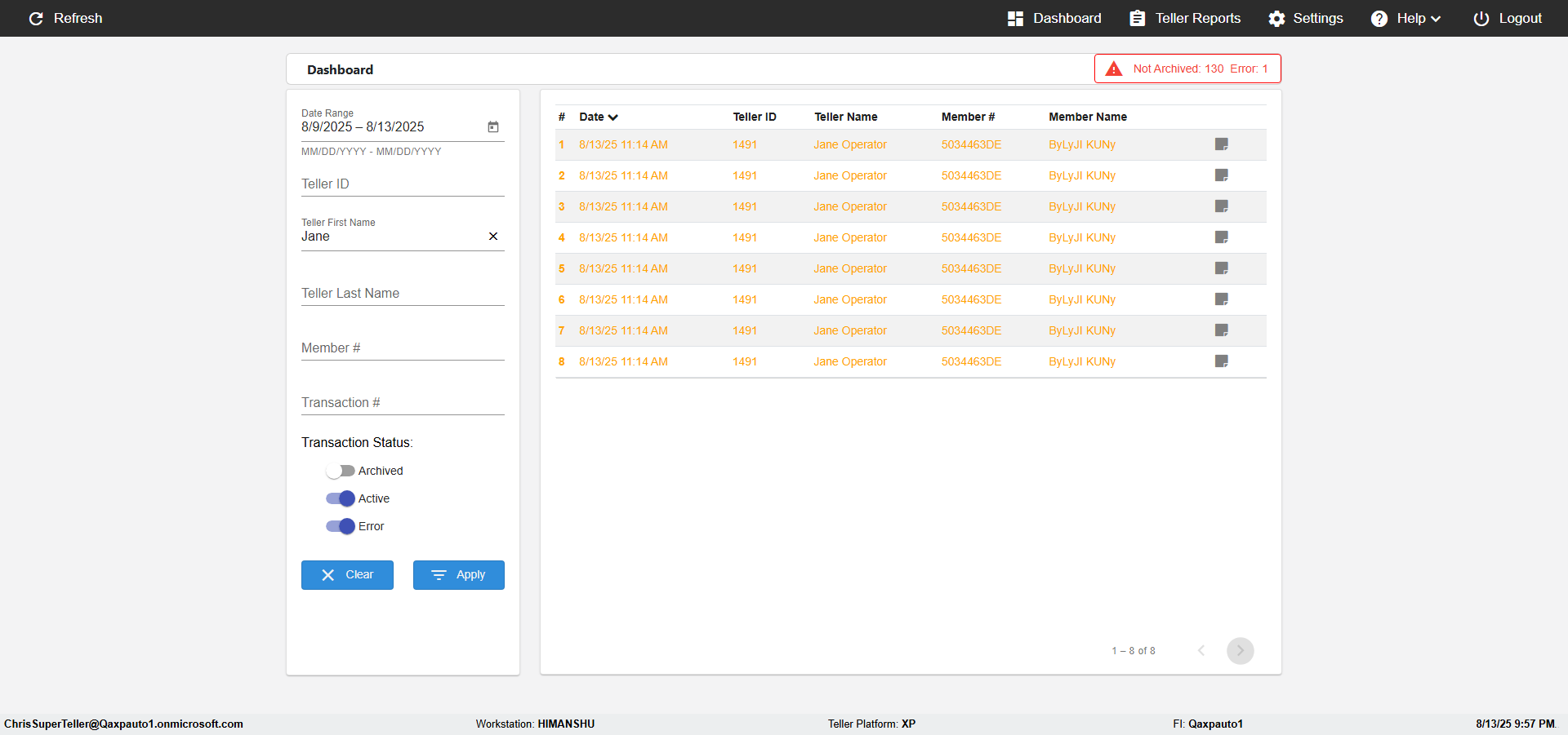 | {Description=verify Transactions in Teller, Email=, Teller LastName=, print signatur=, errorint=, TestID=verifyForTransactionInTellerAndSuperTeller, Color Transactions=, Member=5034463, UserPwd=iMM2022!, Transtatus=Archived-false;Active-true;Error-false, Receipt=, Report=, Teller=, Teller FirstName=, errorMessage=, Suppress=, Date=4, print Disburstments=, Print signature line=, Type=Teller, Transaction=, Header=, Username=JaneOperator@Qaxpauto1.onmicrosoft.com, SMS=, Sign=, Scan=} |