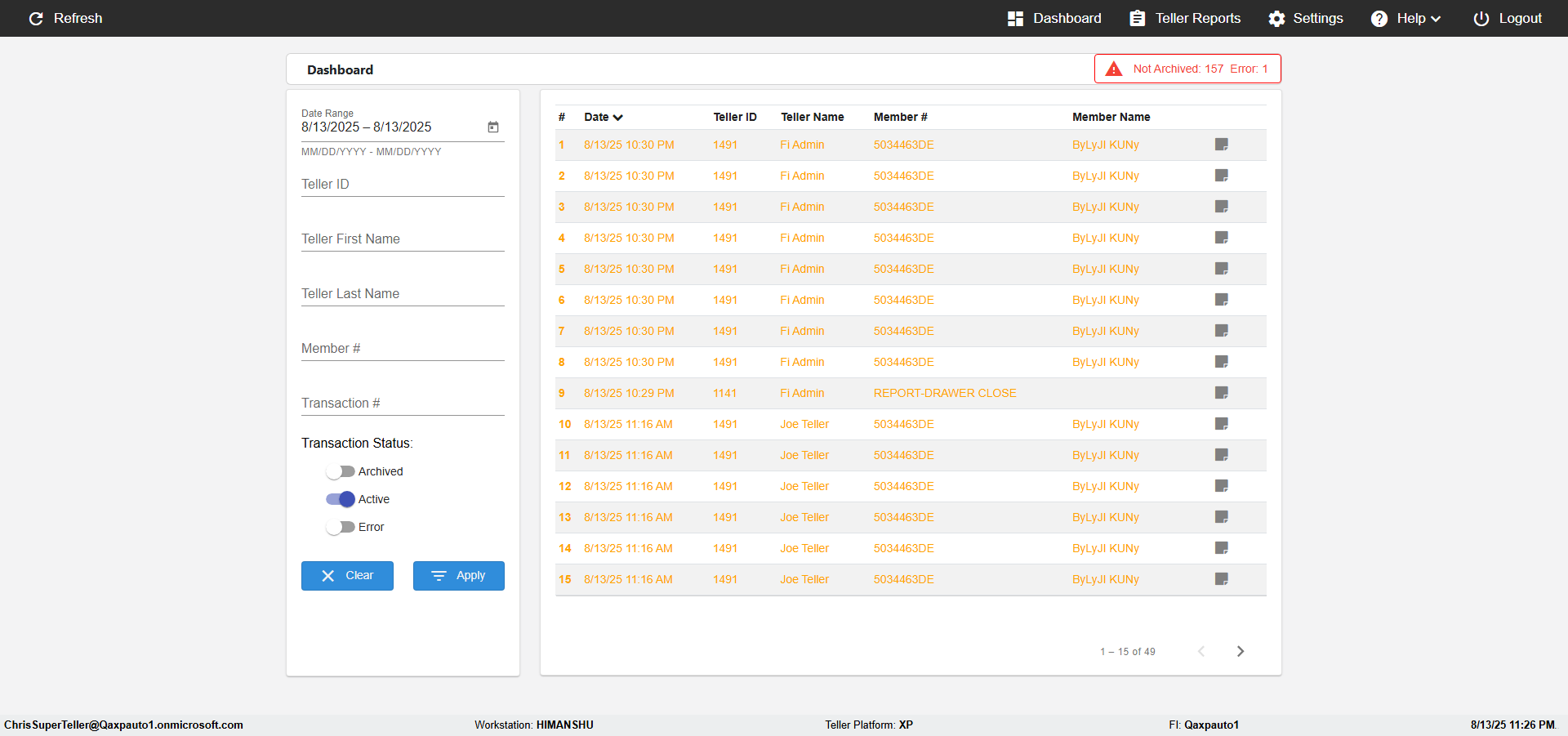 | 11:25:37 PM | Successfully navigated to 'eReceipts Teller' Page | |