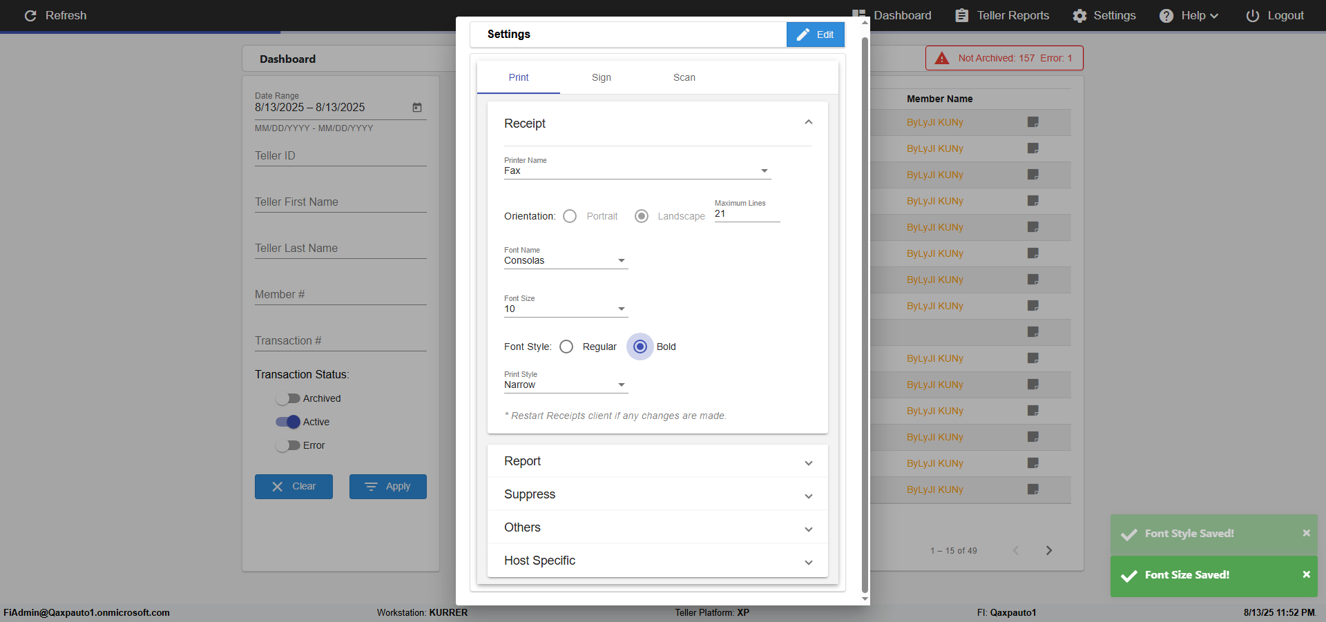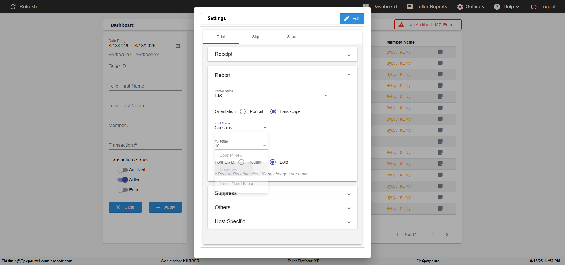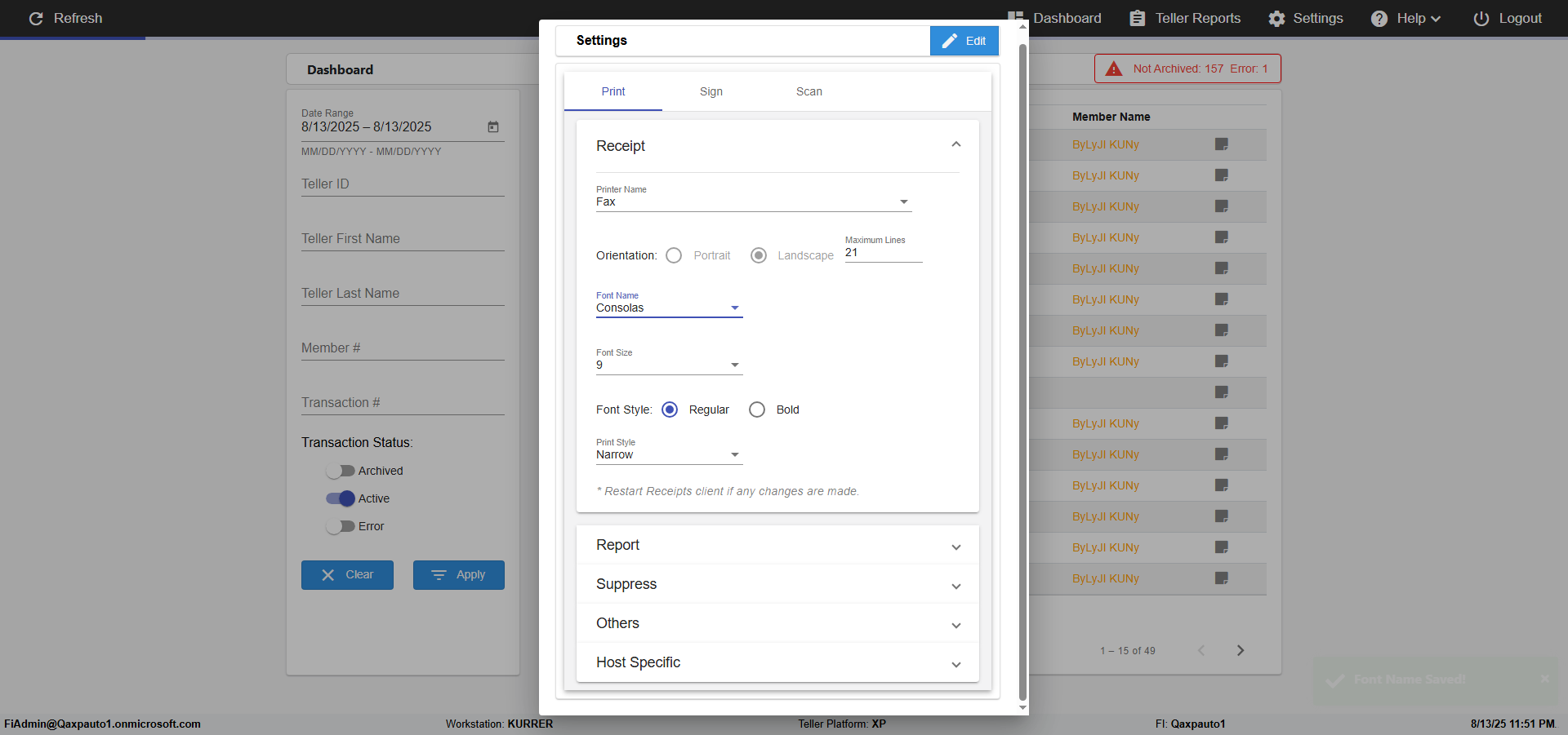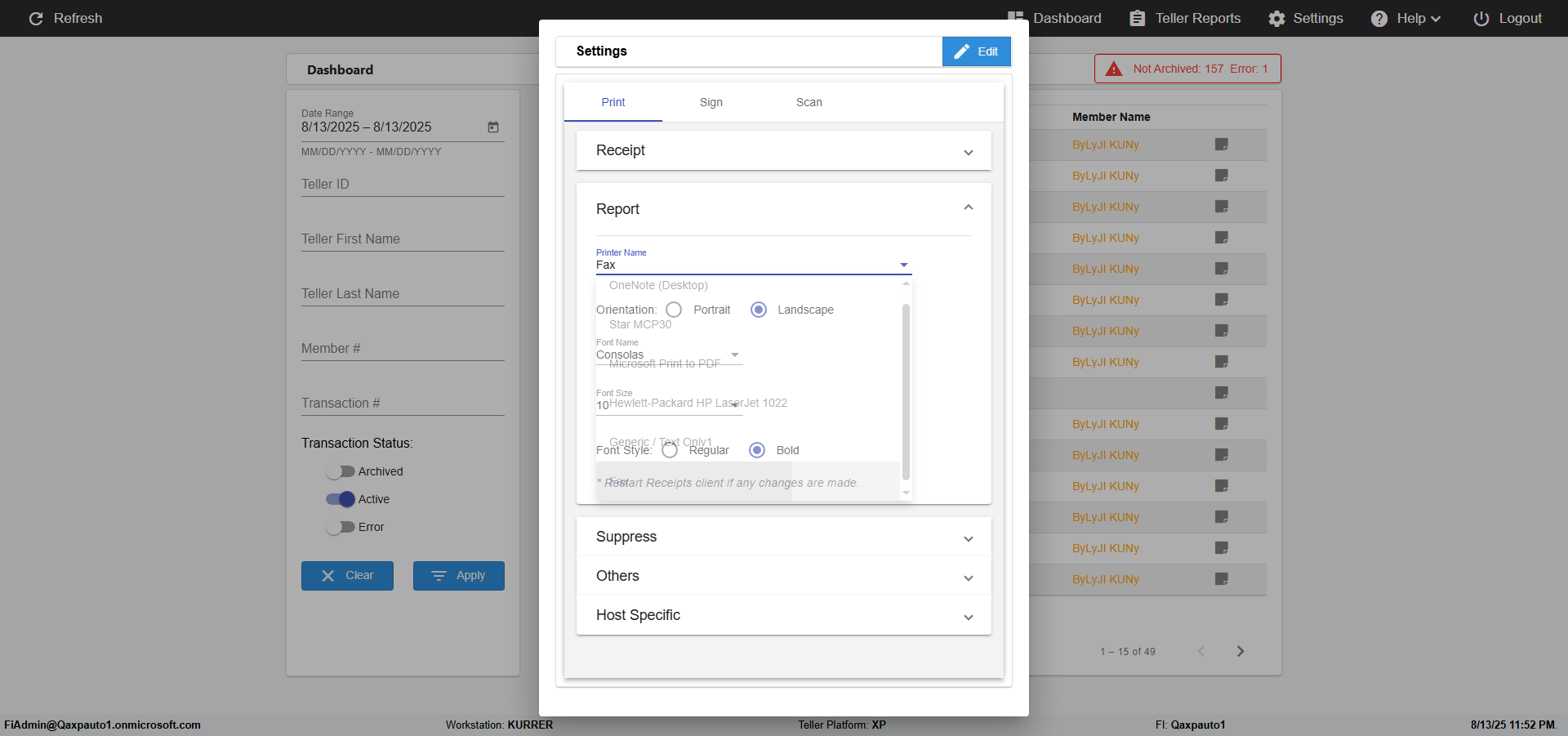 Actual(Passed): Sucessfully Expanded the Receipt panel[ScreenShot] Expected: Select the Priner Name