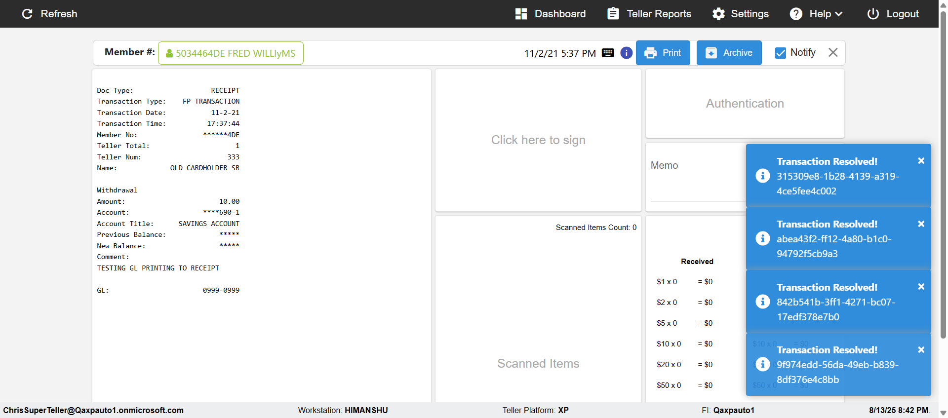 | 08:28:21 pm | Successfully navigated to 'eReceipts Teller' Page | |