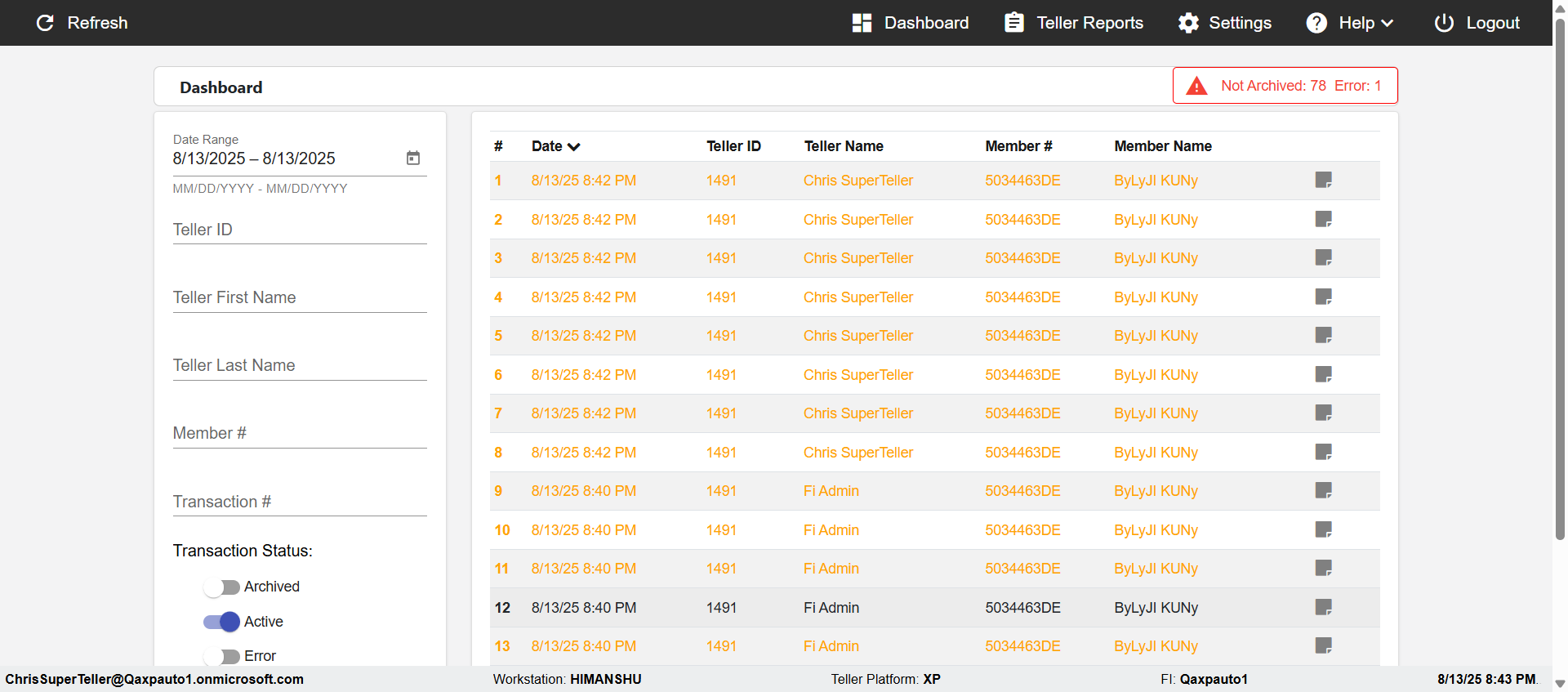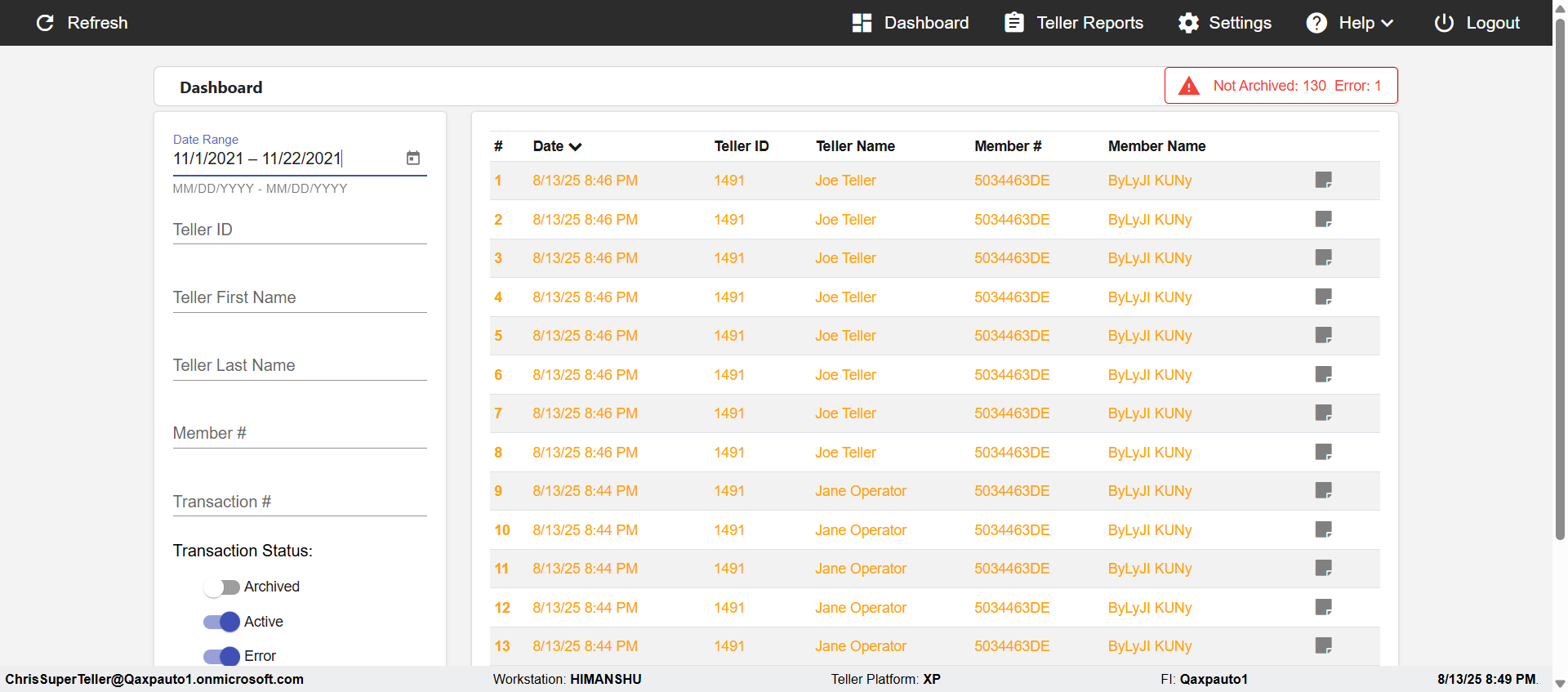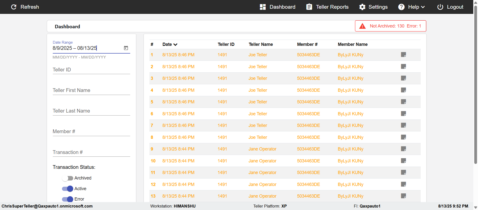 | 13-08-2025 09:50:25 pm | com.imm.ereceipt.testscripts.DashBoard.DashBoard#verifyForTransactionInTellerAndSuperTeller#130825215025 | pass |