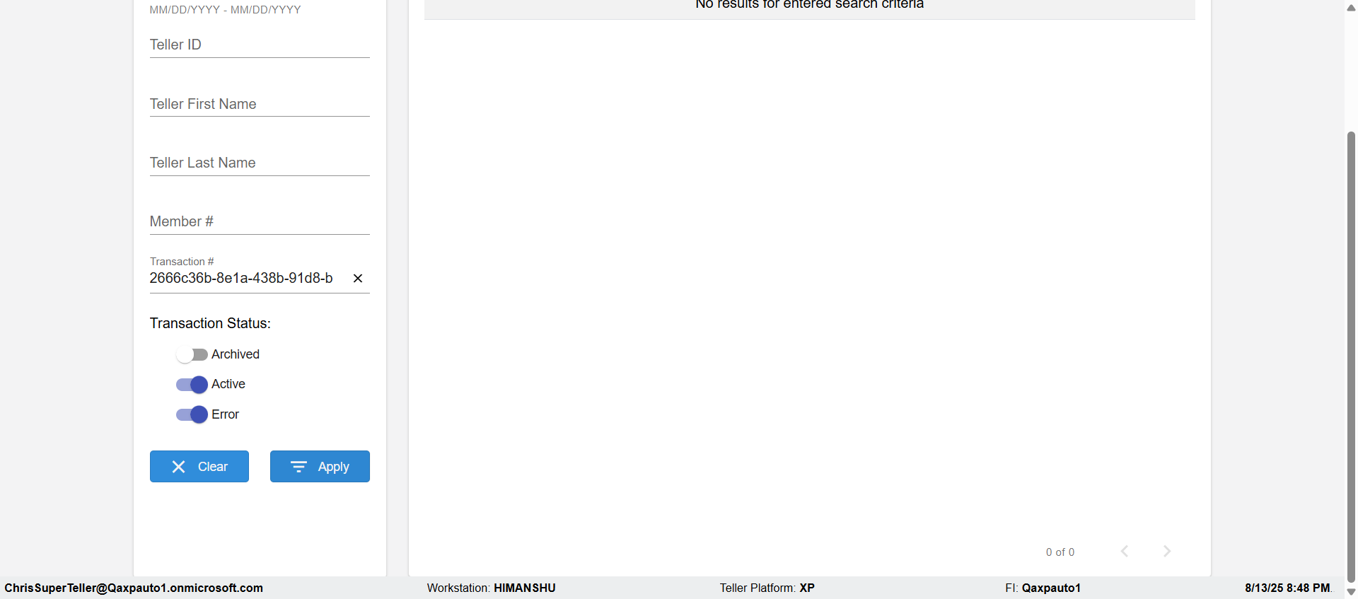| 08:24:51 pm | logged with the Username:ChrisSuperTeller@Qaxpauto1.onmicrosoft.com | |