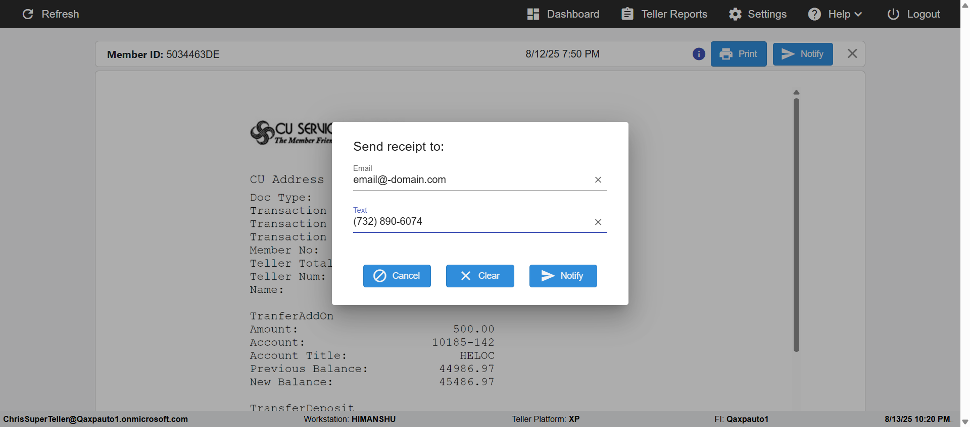 | 08:30:27 pm | Successfully navigated to 'eReceipts Teller' Page | |
