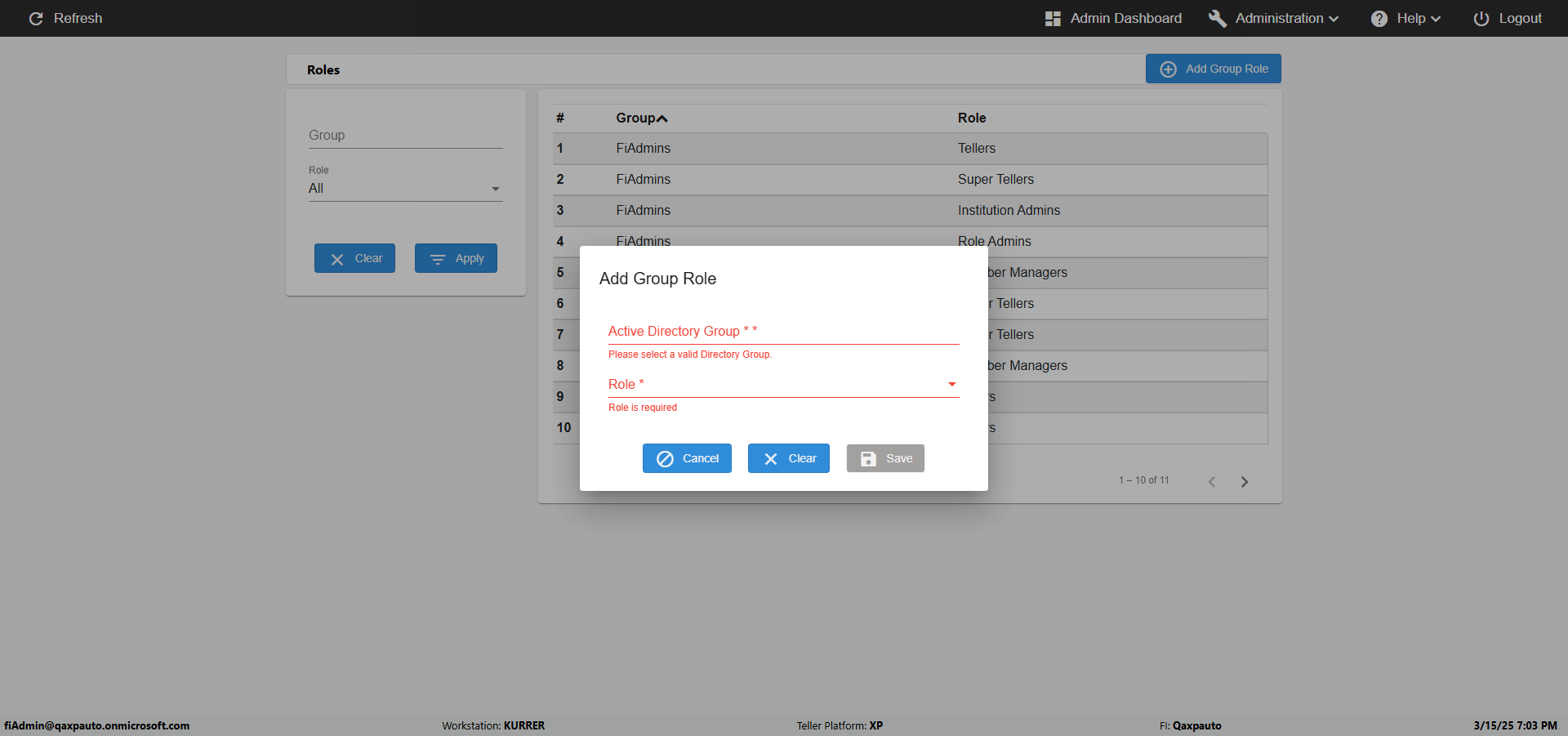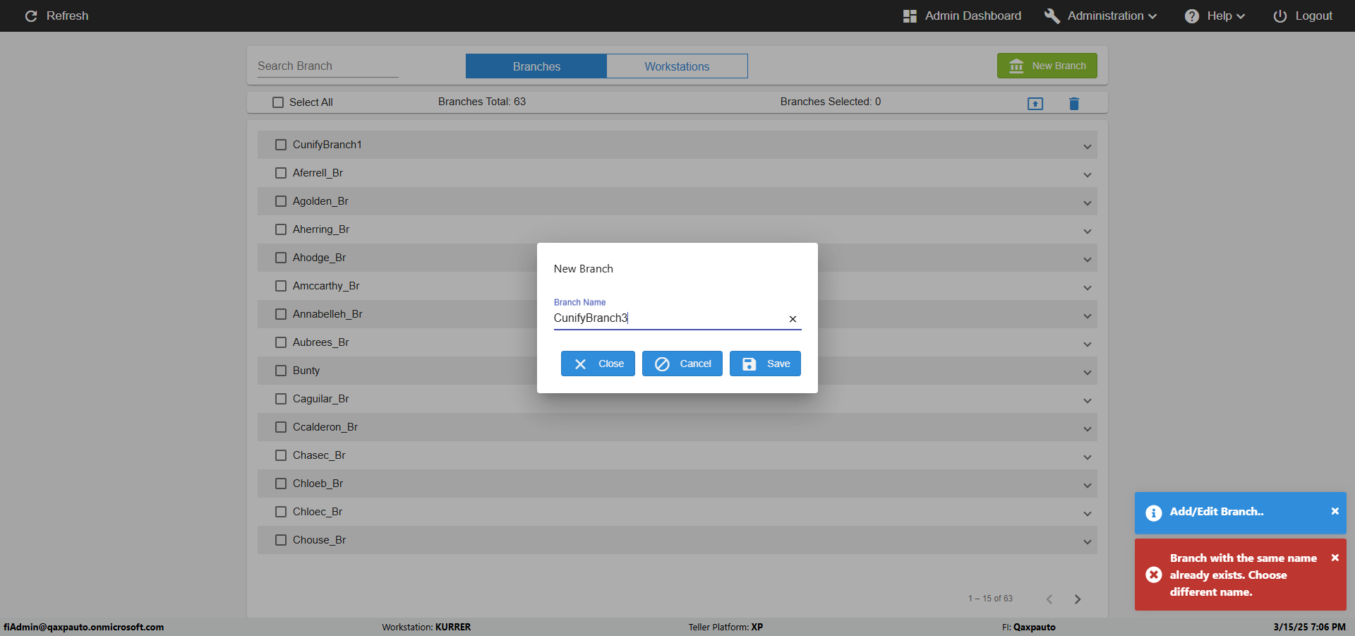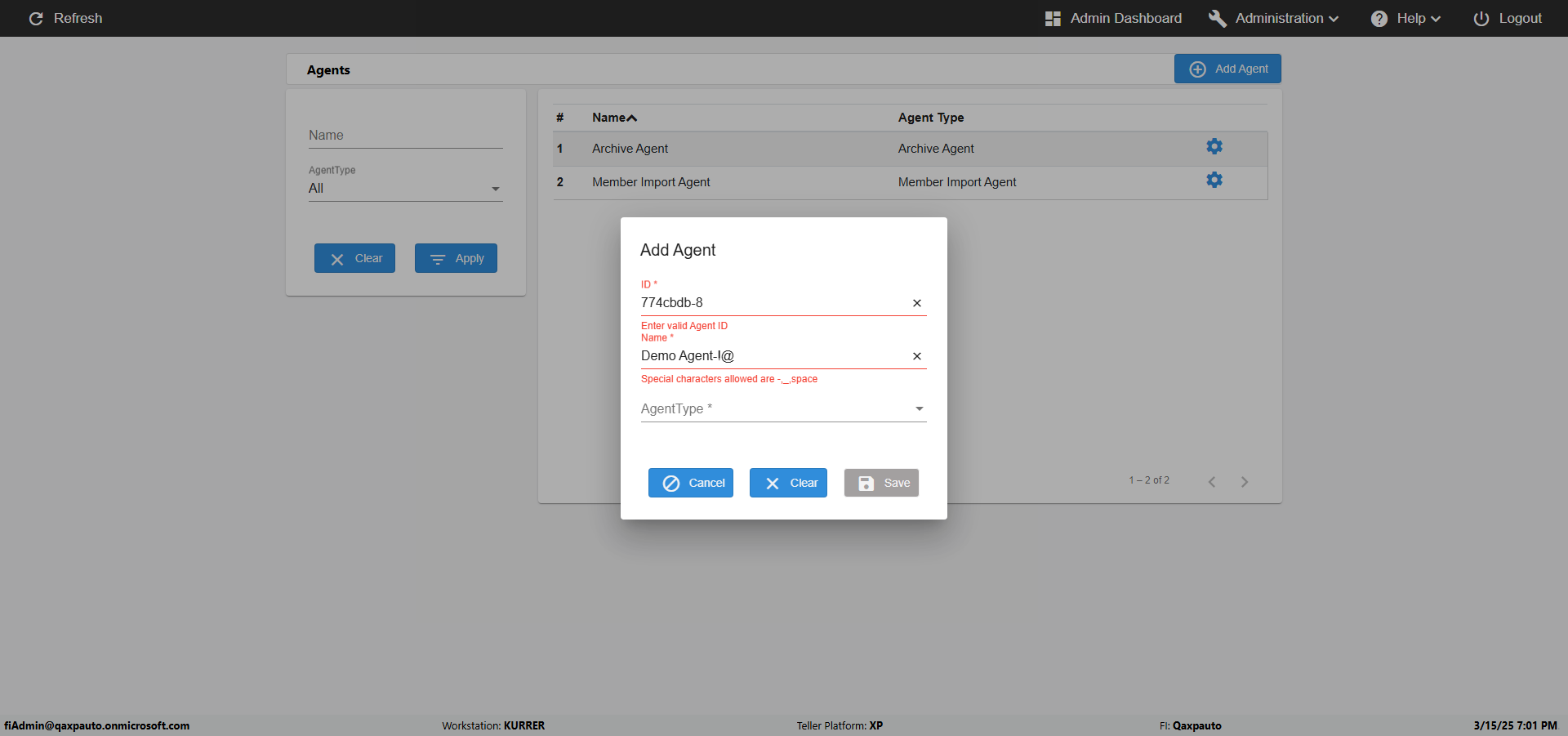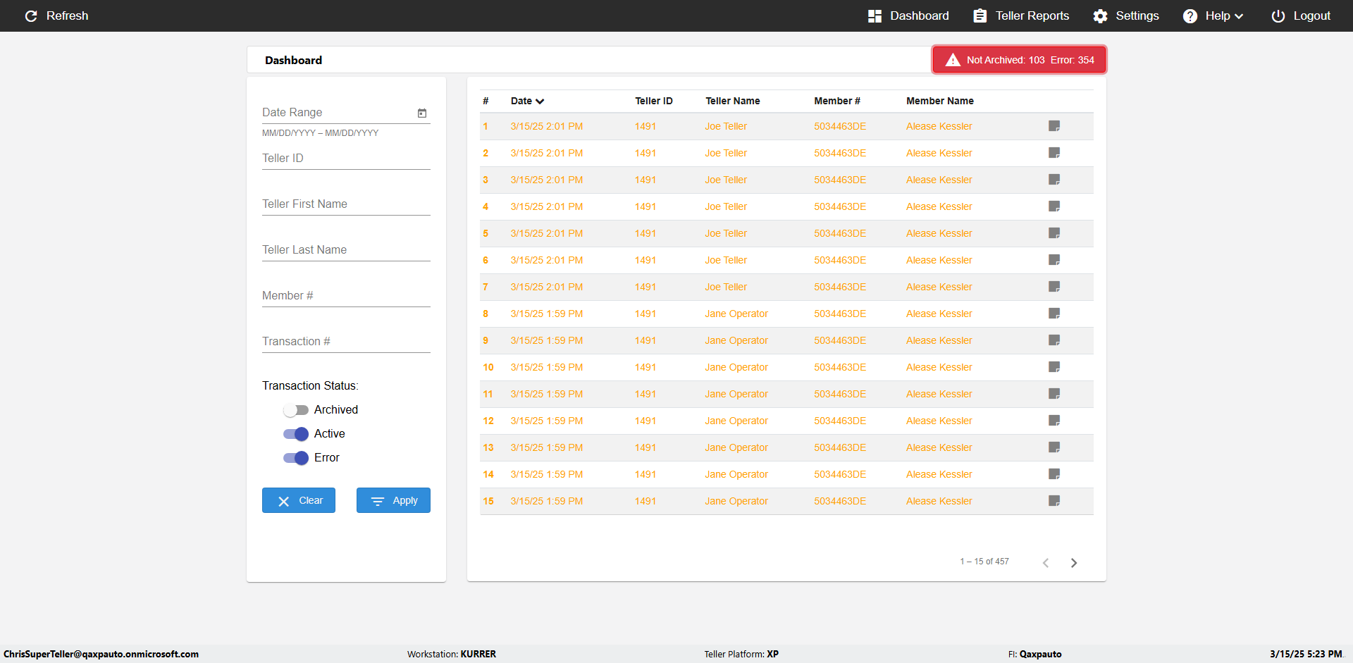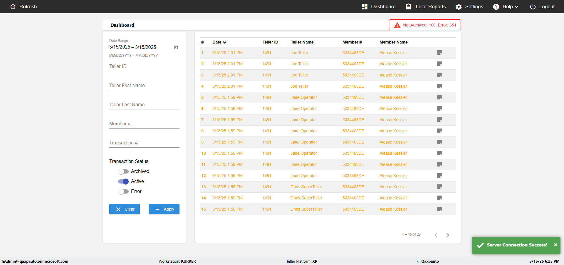 | {UserPwd=iMM2022!, Description=verify Error Messages in Report Page for Teller ID, Teller ID=%&^heg, errorMessage=Special characters not allowed., Teller Email=, View=, Date=, Clear=, Workstation=, errorint=1, TestID=verifyErrorMessagesInReports, Transaction=, Header=, Username=ChrisSuperTeller@Qaxpauto.onmicrosoft.com, Export=, Member #=, Search Text=, Level=} |