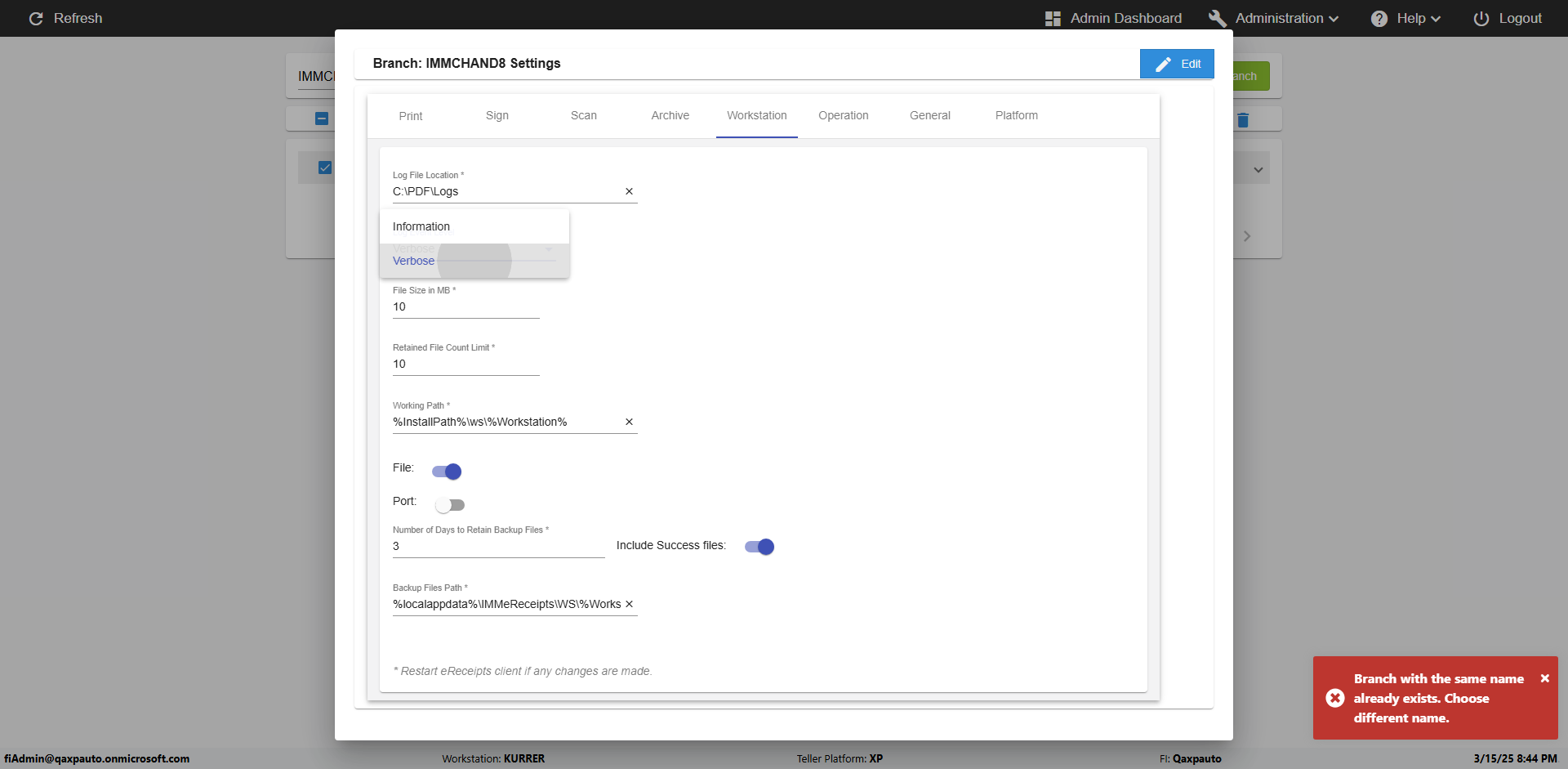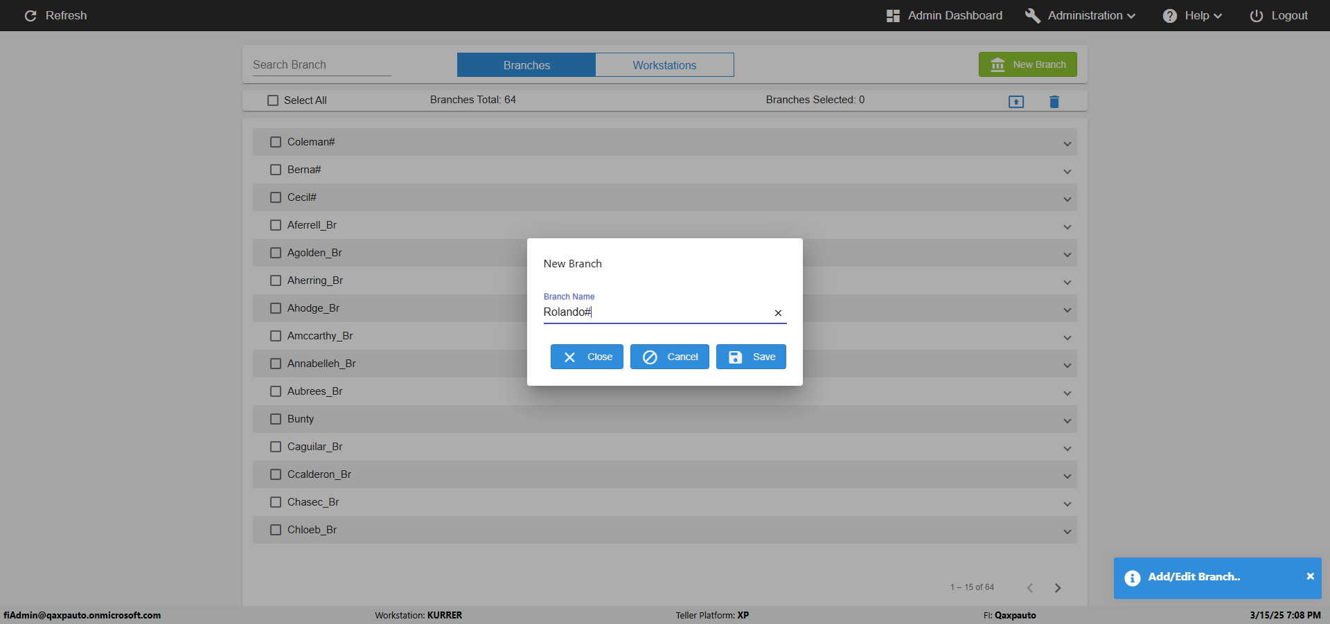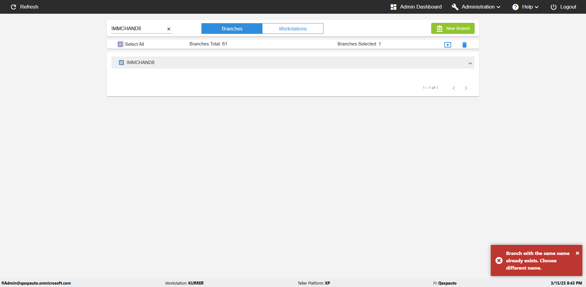 | {Archived Transactions=, Archive=, print signatur=, Name=, MultipleWorkstation=5, WorkstationDeleteOption=, BranchName=Ratnabranch, Agent=, UserPwd=iMM2022!, BranchDeleteOption=TRUE, Receipt=, Role=, Brand=, Print signature line=, TimeZone=, Header=, MappedOption=, Scan=, PortNumber=, FromWks=Arya, FromBranch=Chunty, Description=verify add workstations to branch, weeks=, Operation=, Clear=, TestID=verifyAddWorkstationsUnderBranch, Phone=, WorkstationName=, ToBranch=Bunty, ToWks=Syra, Subscription Names=, FilePath=, Transtatus=Archived-false;Active-true;Error-false, Report=, Index_Field_Name=, Agents=, Text=, Hold Notice=, Suppress=, SchedualType=, Date=, Platfrom=, GroupId=, print Disburstments=, SMTP=, Imaging System=, MultipleBranches=, Username=fiAdmin@Qaxpauto.onmicrosoft.com, Sign=} |