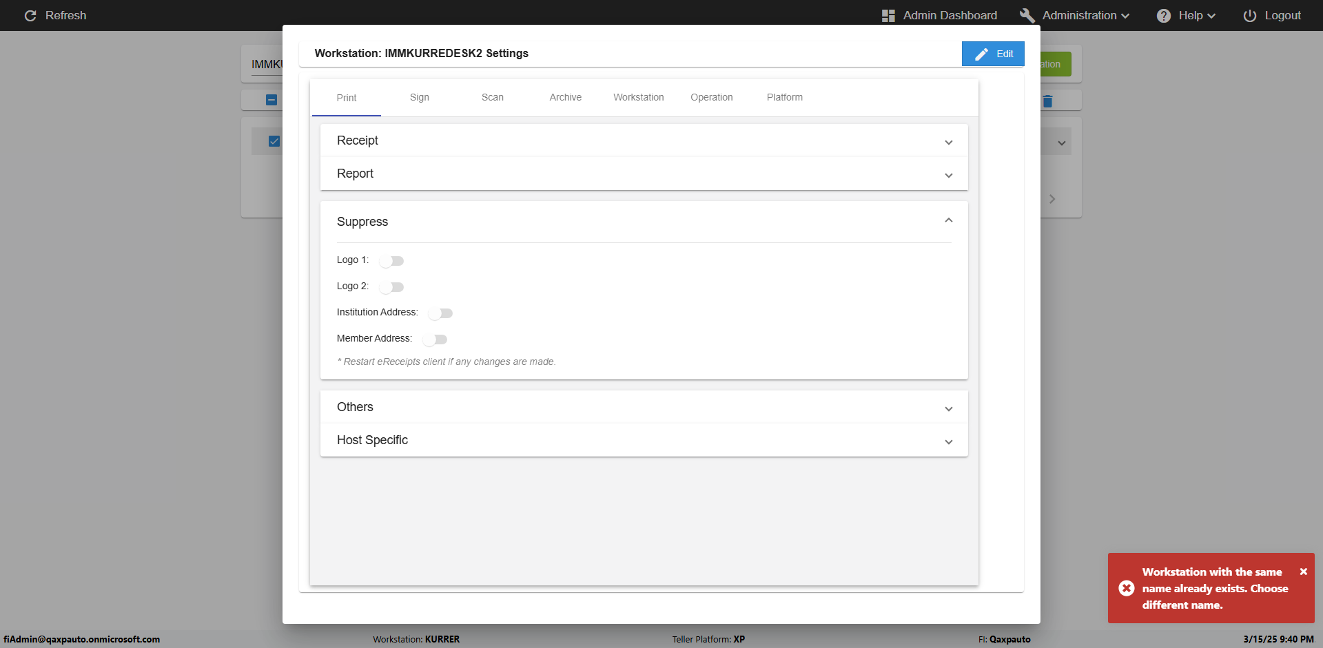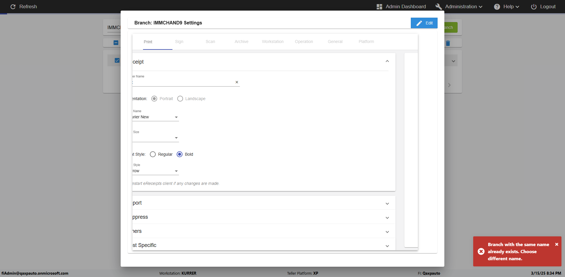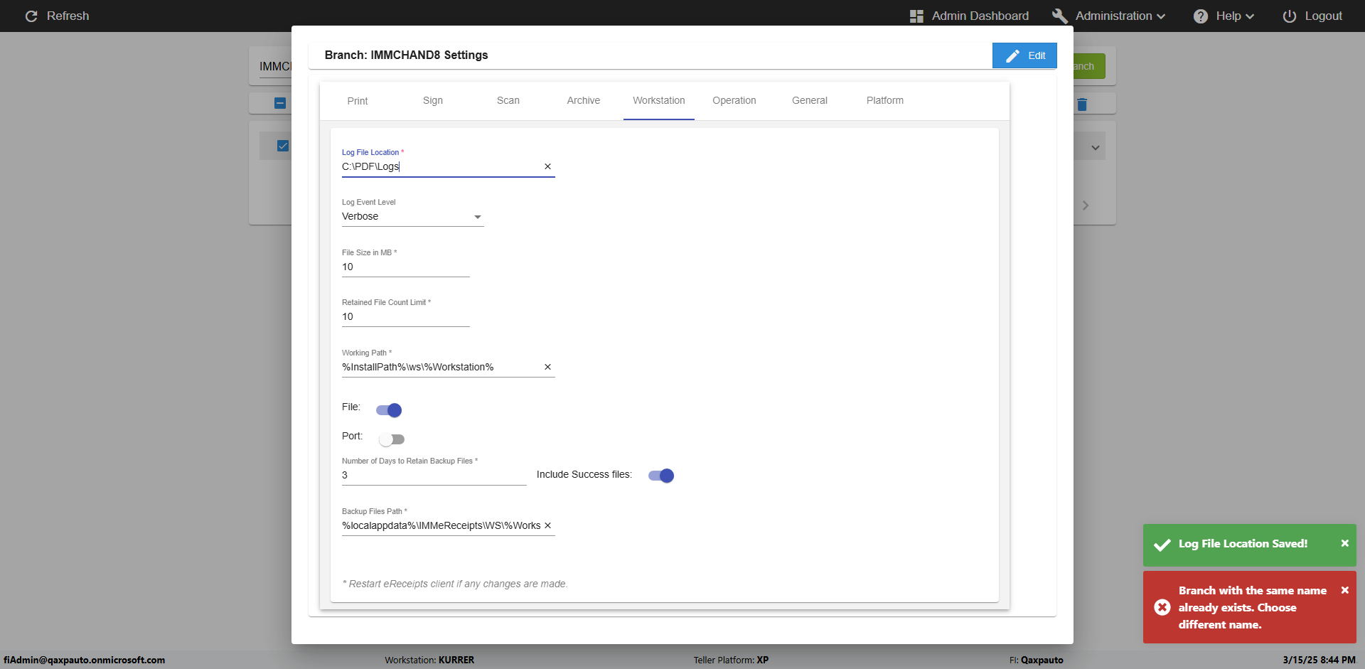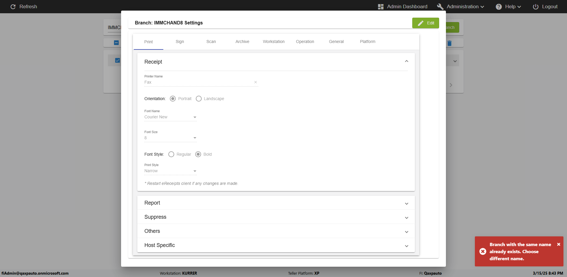 | {Archived Transactions=, Archive=, print signatur=, Name=, MultipleWorkstation=5, WorkstationDeleteOption=, BranchName=Ratnabranch, Agent=, UserPwd=iMM2022!, BranchDeleteOption=TRUE, Receipt=, Role=, Brand=, Print signature line=, TimeZone=, Header=, MappedOption=, Scan=, PortNumber=, FromWks=Arya, FromBranch=Chunty, Description=verify add workstations to branch, weeks=, Operation=, Clear=, TestID=verifyAddWorkstationsUnderBranch, Phone=, WorkstationName=, ToBranch=Bunty, ToWks=Syra, Subscription Names=, FilePath=, Transtatus=Archived-false;Active-true;Error-false, Report=, Index_Field_Name=, Agents=, Text=, Hold Notice=, Suppress=, SchedualType=, Date=, Platfrom=, GroupId=, print Disburstments=, SMTP=, Imaging System=, MultipleBranches=, Username=fiAdmin@Qaxpauto.onmicrosoft.com, Sign=} |
