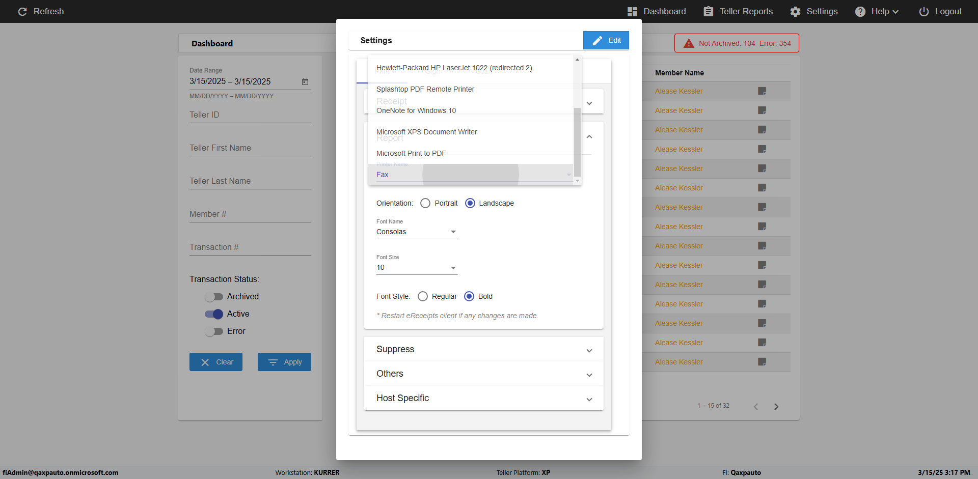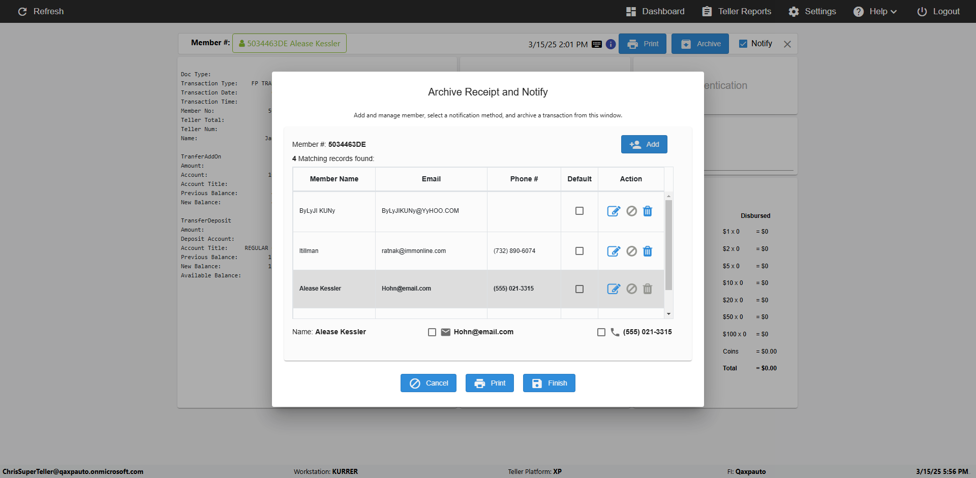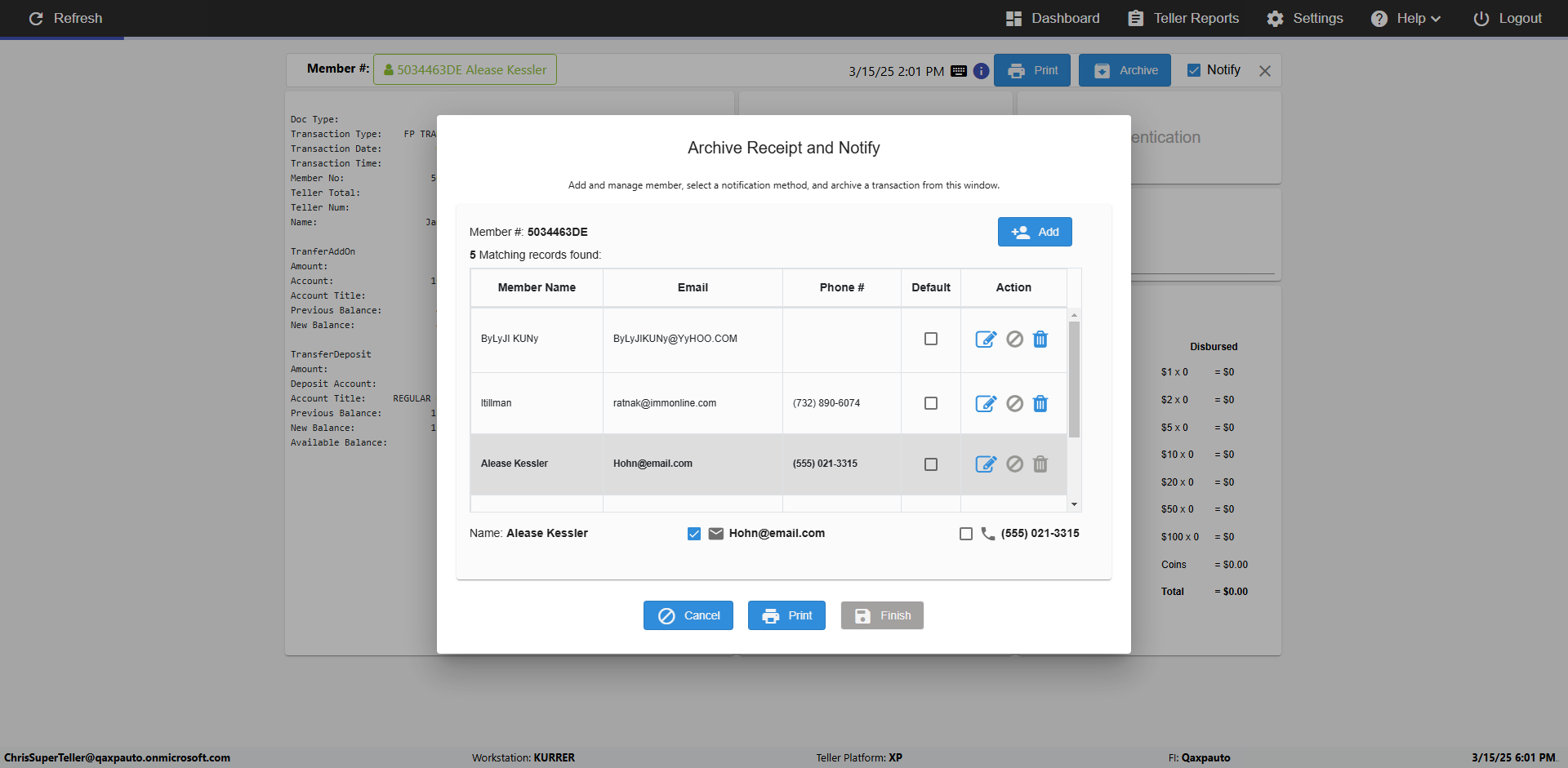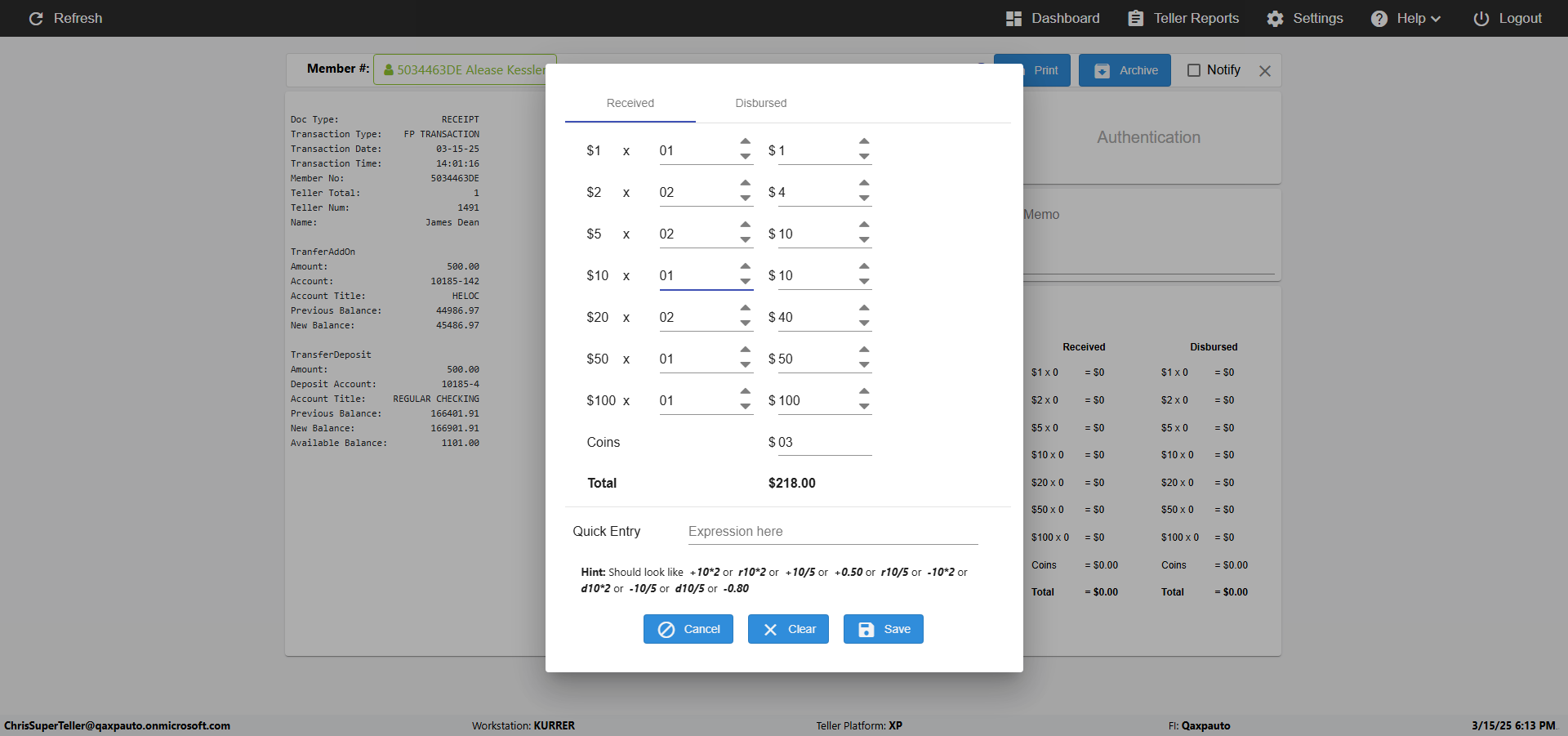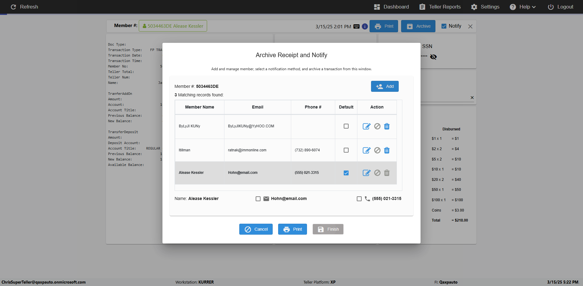 | {Toggel=, Archived Transactions=yes, Description=verify End TO End Test OF Normal Teller In Ereceipt Page, Email=FALSE, Archive=TRUE, Document Type=SSN, Notify=TRUE, SignatureTab=Touch,, DisbursedExpression=|-10*5, Operation=, Teller LastName=, Disbursed cash=1-1|2-2|5-2|10-1|20-2|50-1|100-1|Coins-3, errorint=, TestID=verifyEndTOEndTestOFNormalTellerInEreceipt, Print=FALSE, DisbursedExpressionValue=FALSE, Phone=(555) 021-3315, ReceivedCashValue=FALSE, Member=, UserPwd=iMM2022!, Transtatus=Archived-false;Active-true;Error-false, Docment ID=216554, Teller=, Teller FirstName=, errorMessage=, ReceivedExpressionValue=TRUE, Date=, Platfrom=, Received cash=1-1|2-2|5-2|10-1|20-2|50-1|100-1|Coins-3, Transaction=, Header=, Expression=, Username=ChrisSuperTeller@Qaxpauto.onmicrosoft.com, DisbursedCashValue=TRUE, FullName=, ReceivedExpression=|+100*2, SMS=FALSE, Memo=eReceipts Demo} |