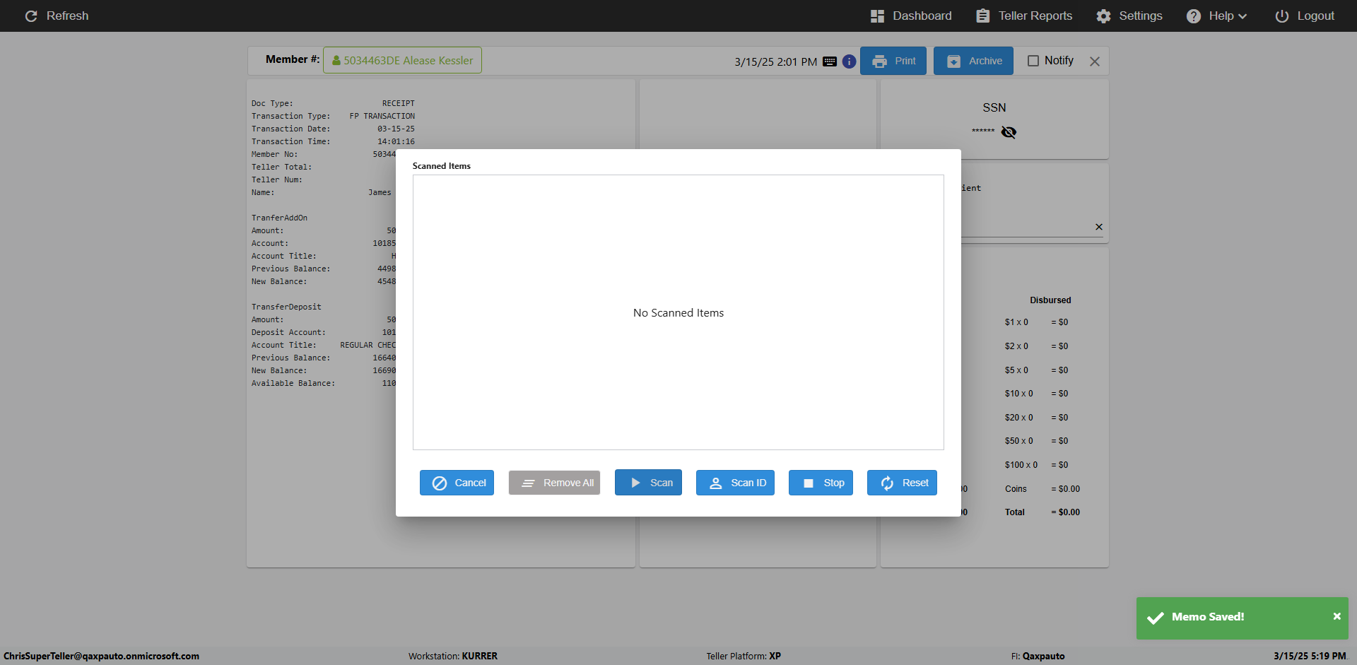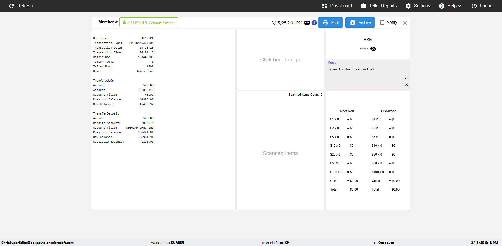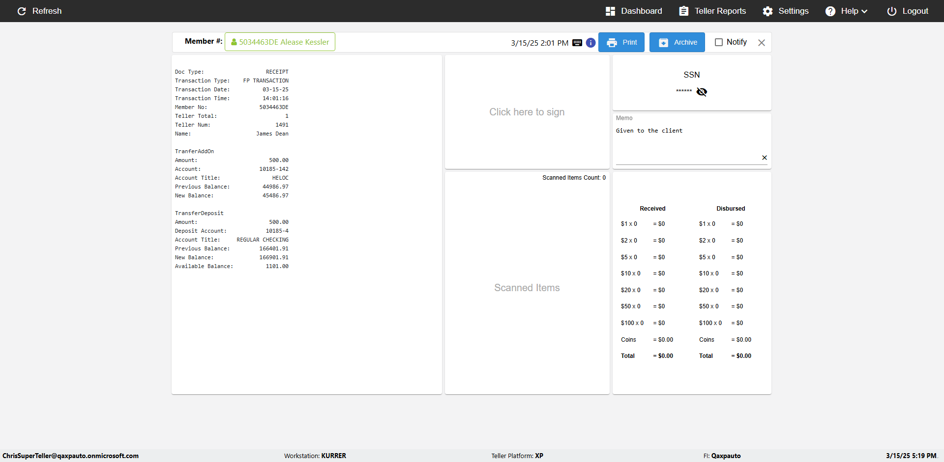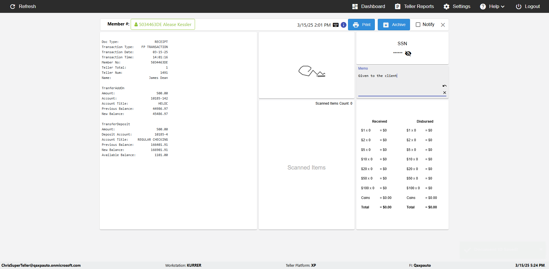 | {Toggel=, Archived Transactions=no, Description=, Email=, Archive=, Document Type=SSN, Notify=, SignatureTab=, DisbursedExpression=, Operation=, Teller LastName=, Disbursed cash=, errorint=, TestID=verifyAuthenticationMemoAndScannedItemscardInReceiptPage, Print=, DisbursedExpressionValue=, Phone=, ReceivedCashValue=, Member=, UserPwd=iMM2022!, Transtatus=Archived-false;Active-true;Error-false, Docment ID=216554, Teller=, Teller FirstName=, errorMessage=, ReceivedExpressionValue=, Date=, Platfrom=, Received cash=, Transaction=, Header=, Expression=, Username=ChrisSuperTeller@Qaxpauto.onmicrosoft.com, DisbursedCashValue=, FullName=, ReceivedExpression=, SMS=, Memo=Given to the client} |