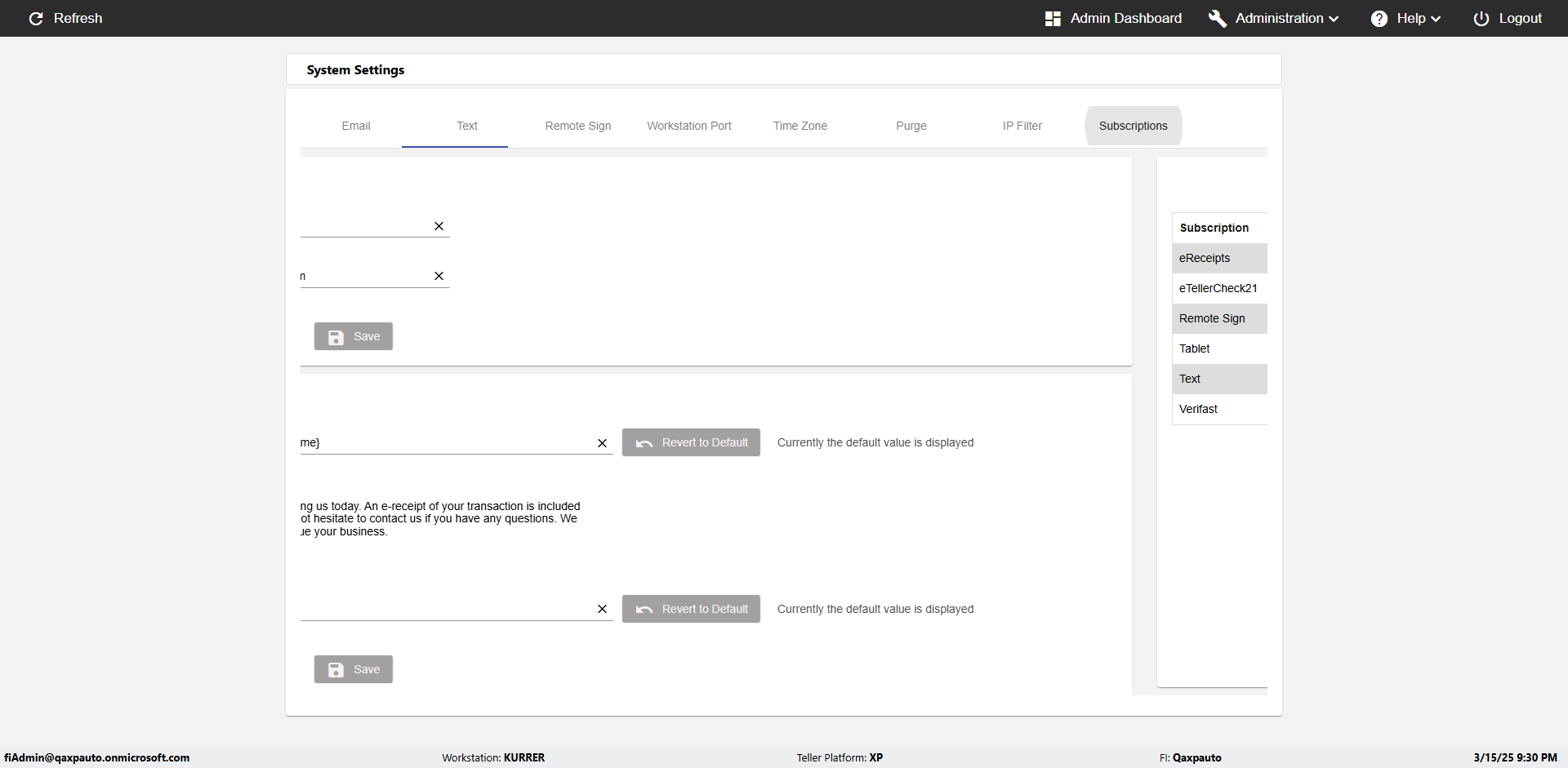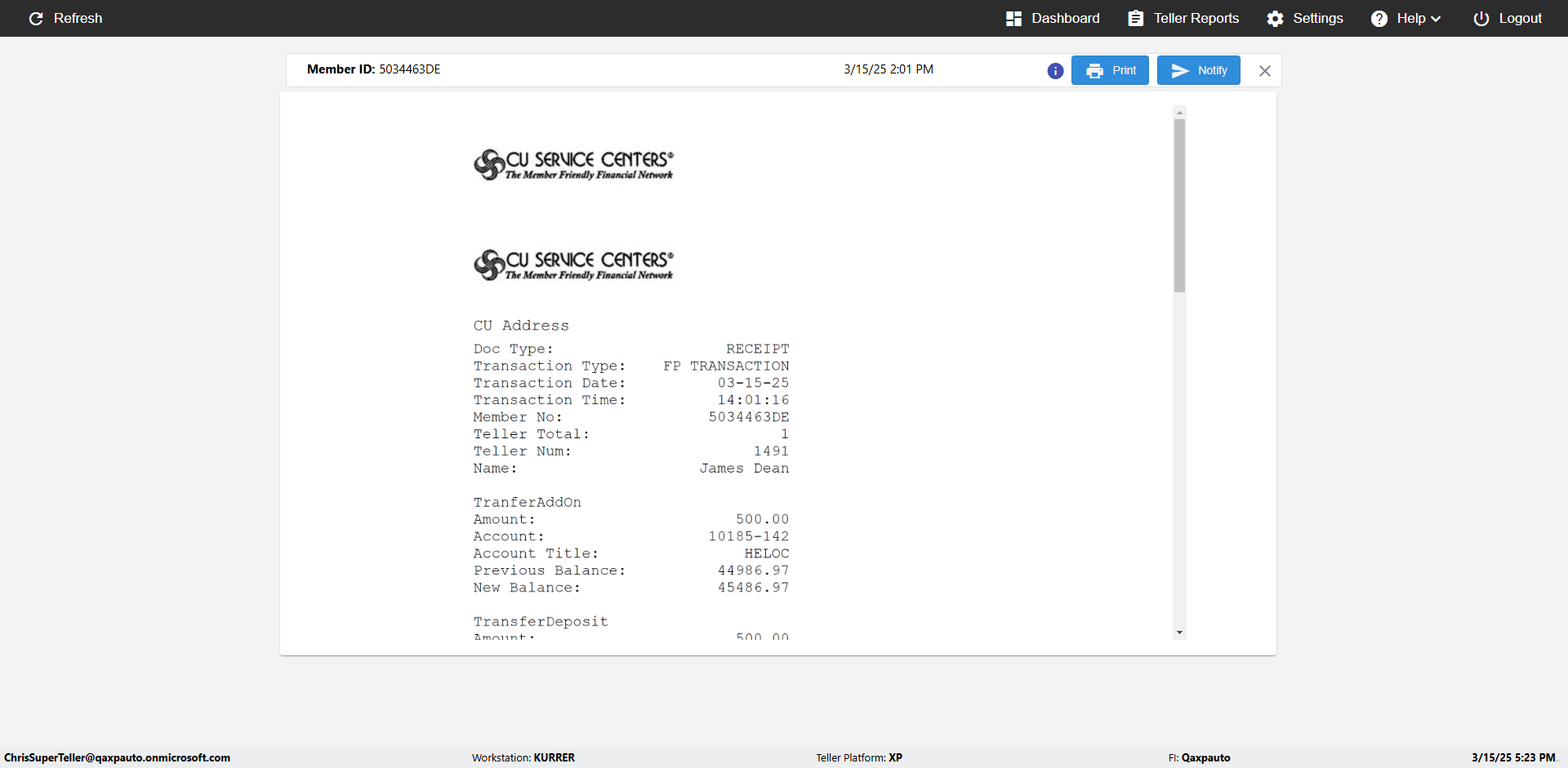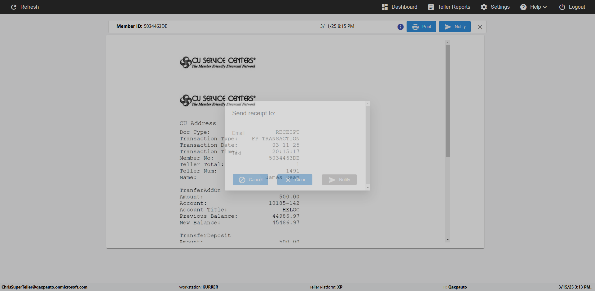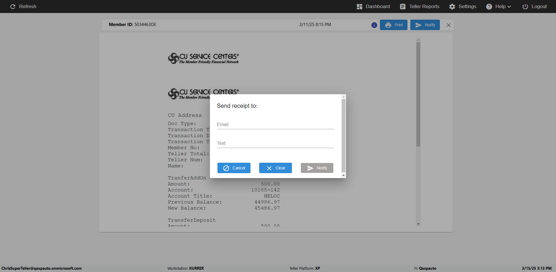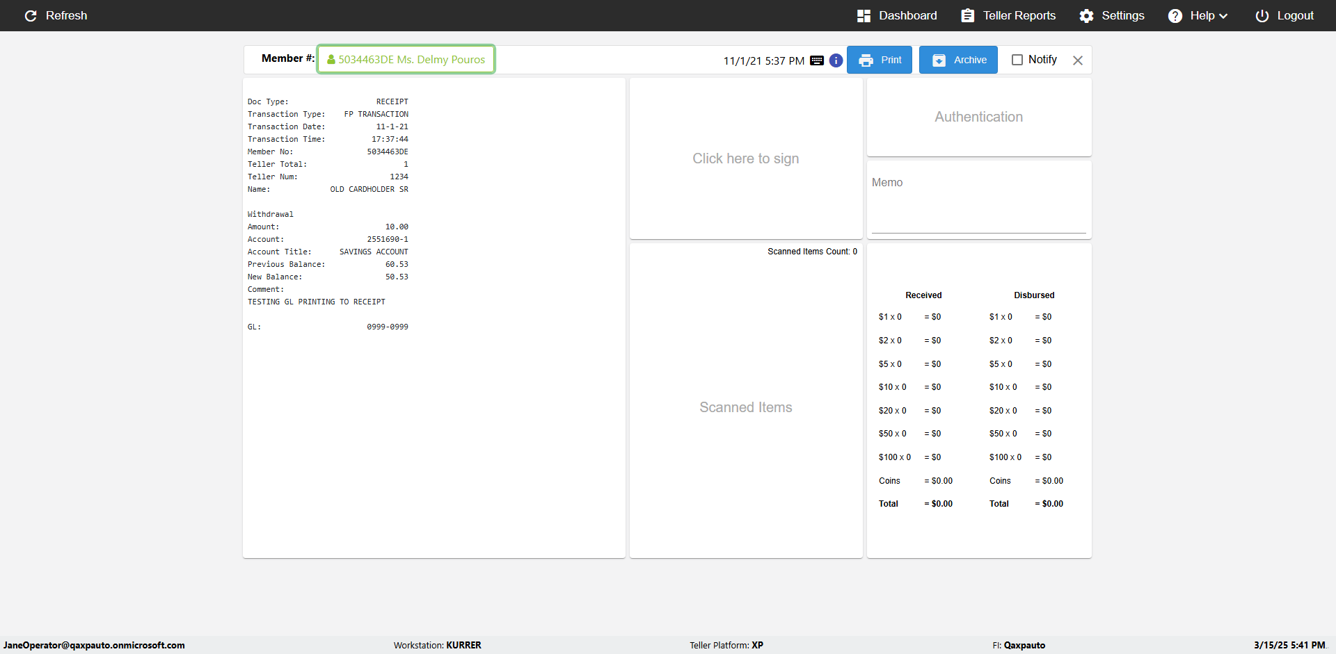 | {Toggel=, Archived Transactions=no, Description=verify touch signature in Receipt Page, Email=FALSE, Archive=FALSE, Document Type=, Notify=TRUE, SignatureTab=Touch,, DisbursedExpression=|-10*5, Operation=, Teller LastName=, Disbursed cash=, errorint=, TestID=verifyTouchSignatureEreceipt, Print=FALSE, DisbursedExpressionValue=TRUE, Phone=, ReceivedCashValue=FALSE, Member=, UserPwd=iMM2022!, Transtatus=Archived-false;Active-true;Error-false, Docment ID=, Teller=, Teller FirstName=Joe, errorMessage=, ReceivedExpressionValue=TRUE, Date=, Platfrom=, Received cash=, Transaction=, Header=, Expression=, Username=ChrisSuperTeller@Qaxpauto.onmicrosoft.com, DisbursedCashValue=FALSE, FullName=, ReceivedExpression=|+100*2, SMS=FALSE, Memo=} |