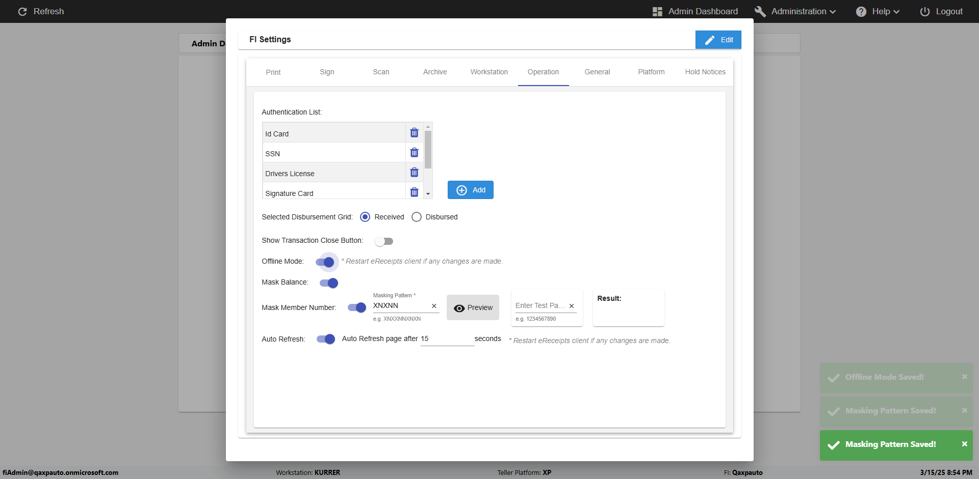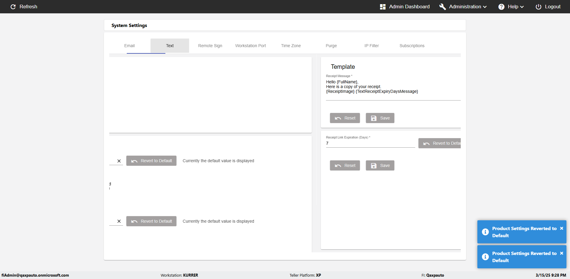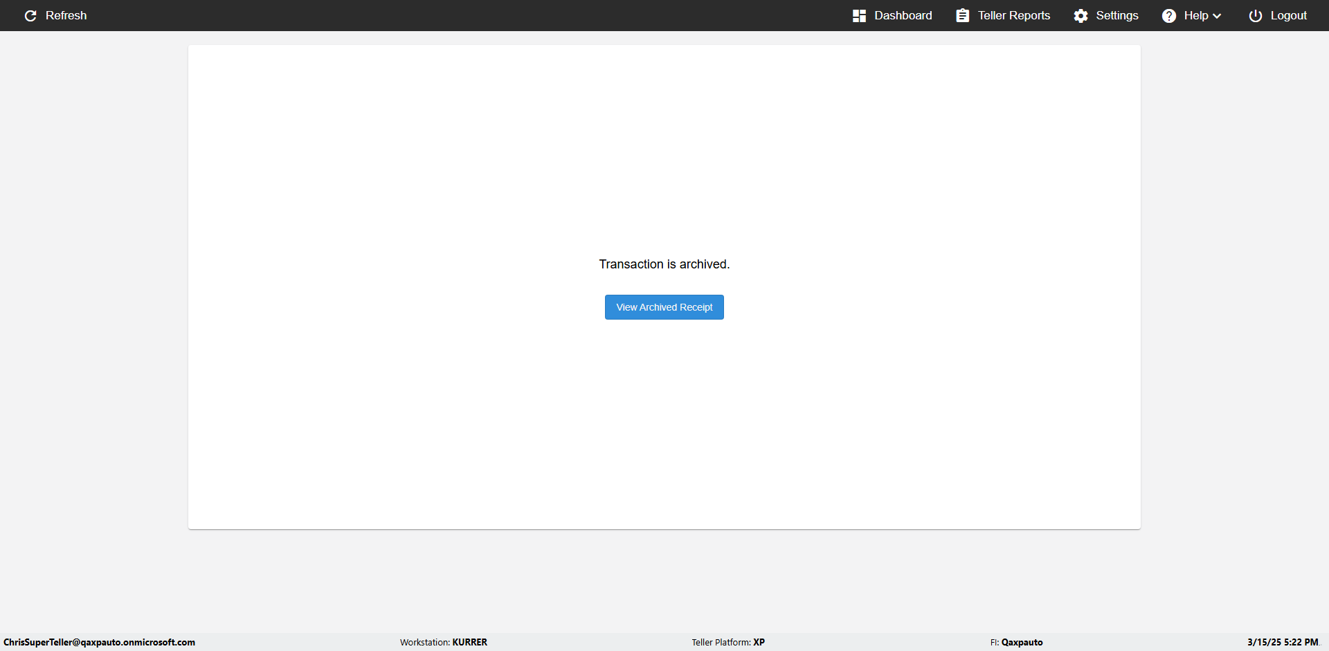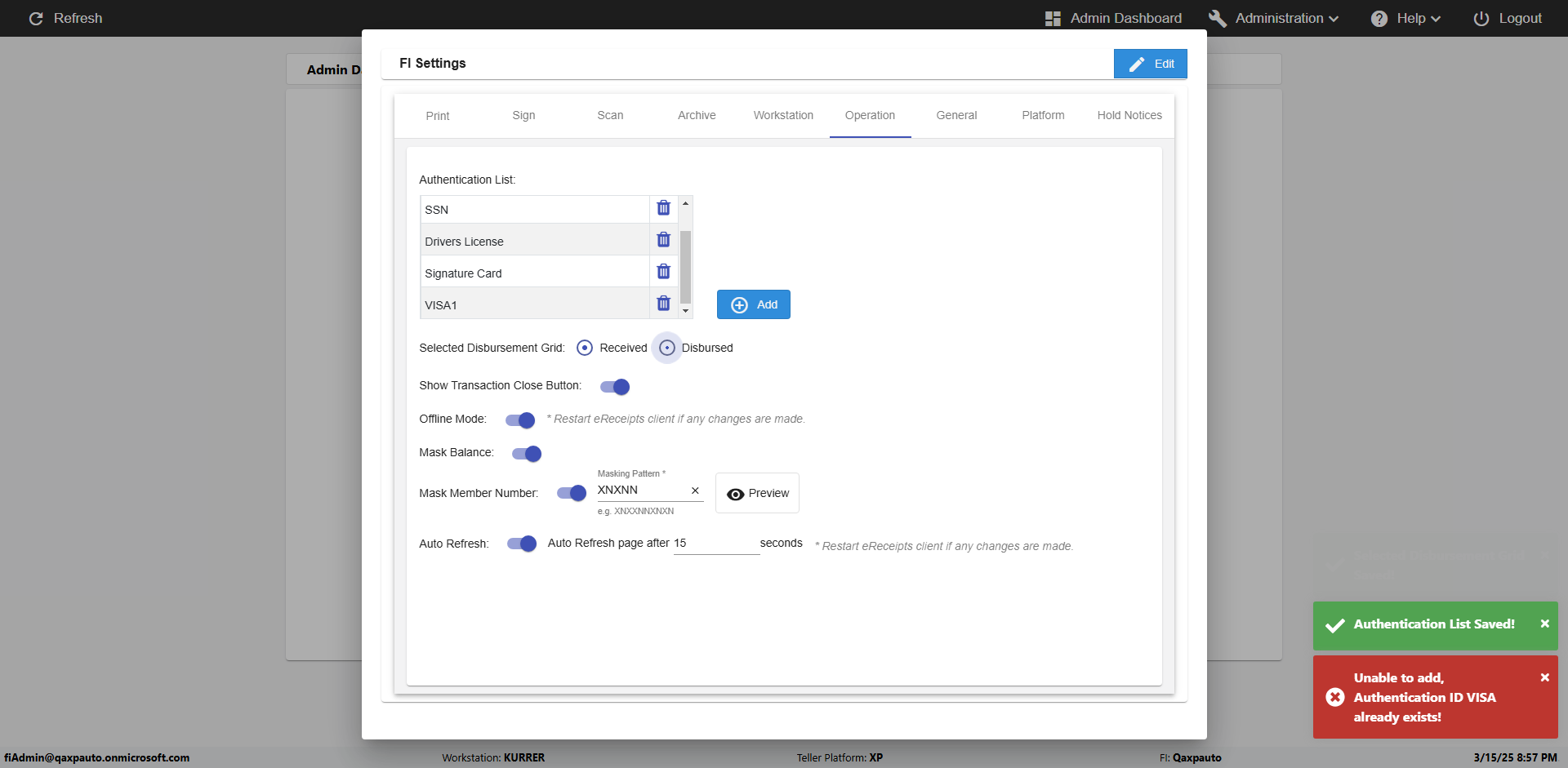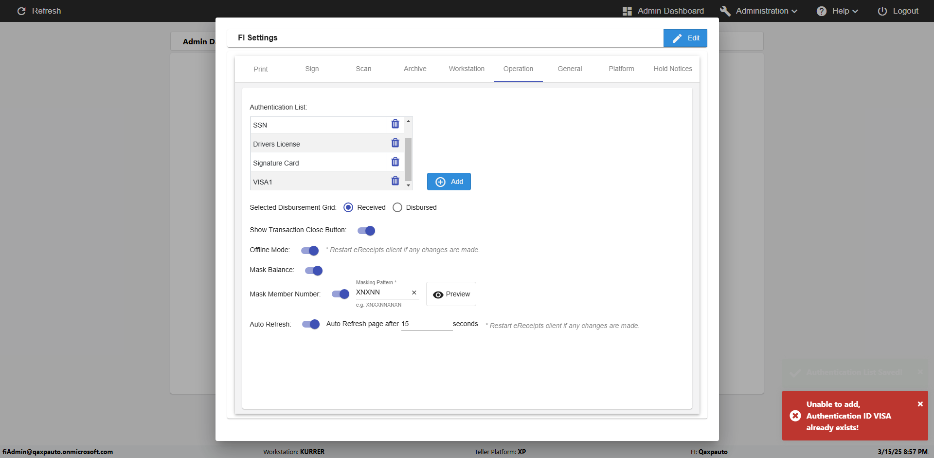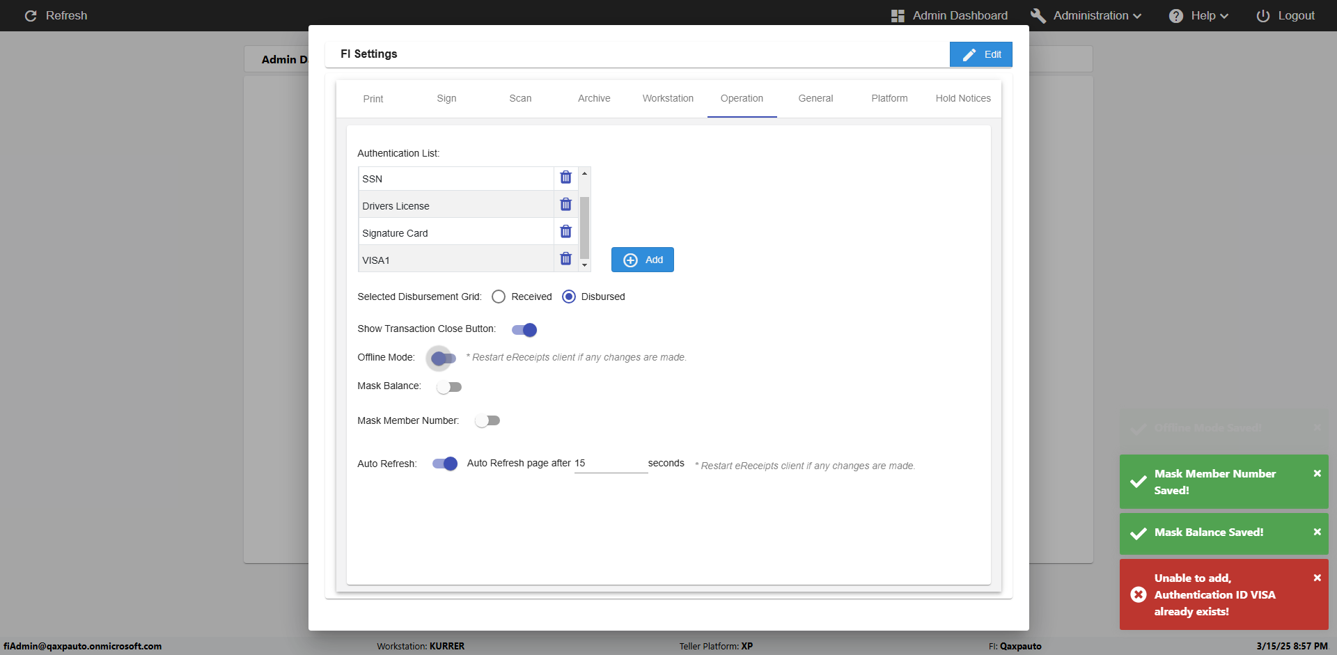| {Toggel=, Archived Transactions=no, Description=verify touch signature in Receipt Page, Email=FALSE, Archive=FALSE, Document Type=, Notify=TRUE, SignatureTab=Touch,, DisbursedExpression=|-10*5, Operation=, Teller LastName=, Disbursed cash=, errorint=, TestID=verifyTouchSignatureEreceipt, Print=FALSE, DisbursedExpressionValue=TRUE, Phone=, ReceivedCashValue=FALSE, Member=, UserPwd=iMM2022!, Transtatus=Archived-false;Active-true;Error-false, Docment ID=, Teller=, Teller FirstName=Joe, errorMessage=, ReceivedExpressionValue=TRUE, Date=, Platfrom=, Received cash=, Transaction=, Header=, Expression=, Username=ChrisSuperTeller@Qaxpauto.onmicrosoft.com, DisbursedCashValue=FALSE, FullName=, ReceivedExpression=|+100*2, SMS=FALSE, Memo=} |