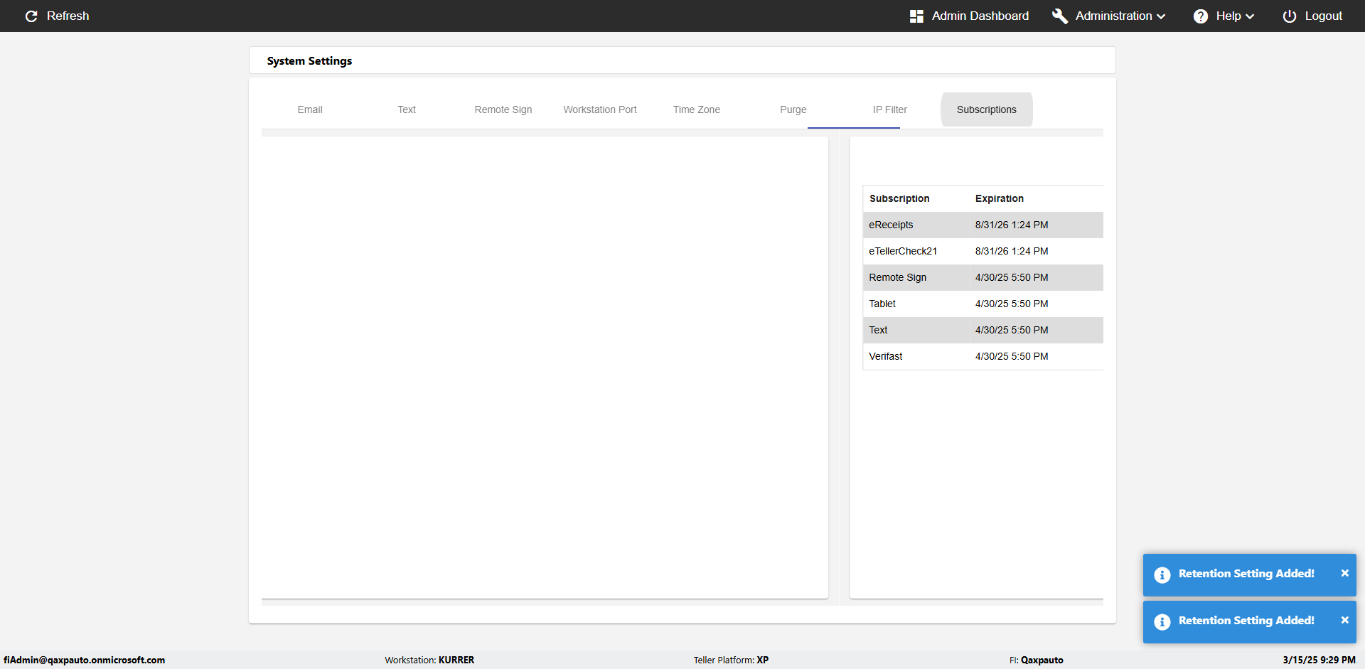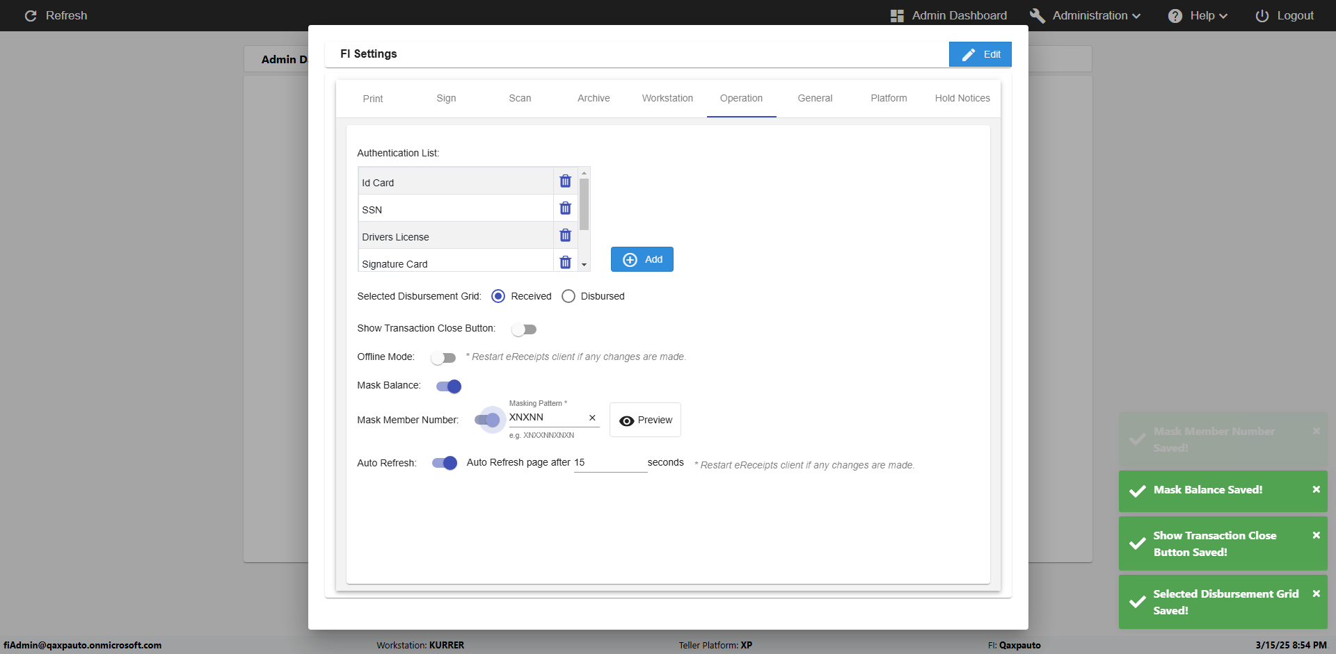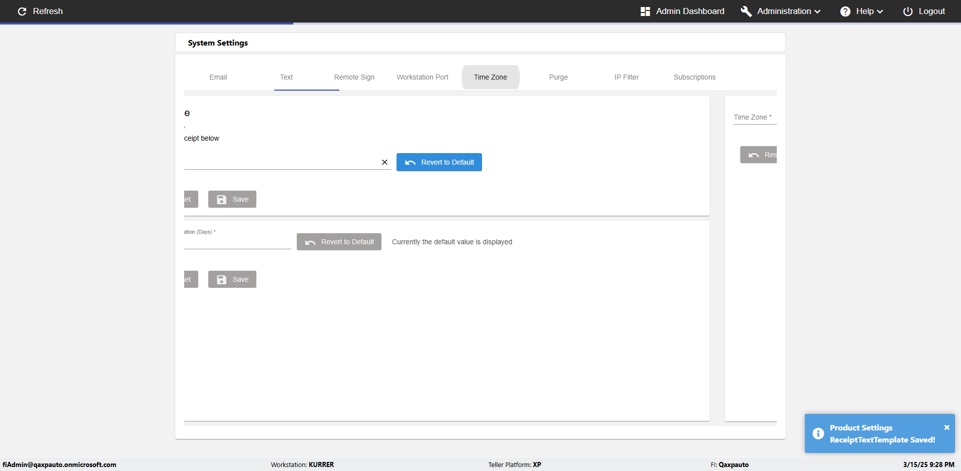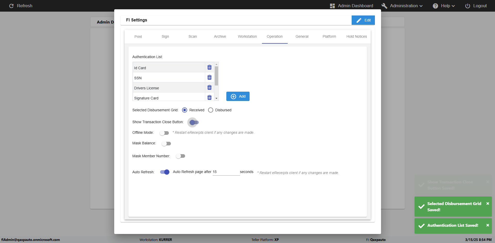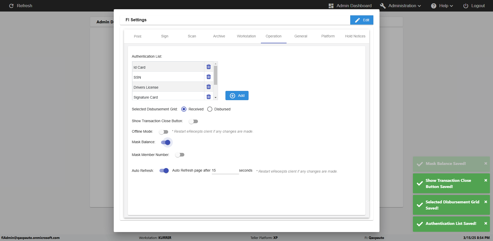 | {Toggel=, Archived Transactions=no, Description=verify touch signature in Receipt Page, Email=FALSE, Archive=FALSE, Document Type=, Notify=TRUE, SignatureTab=Touch,, DisbursedExpression=|-10*5, Operation=, Teller LastName=, Disbursed cash=, errorint=, TestID=verifyTouchSignatureEreceipt, Print=FALSE, DisbursedExpressionValue=TRUE, Phone=, ReceivedCashValue=FALSE, Member=, UserPwd=iMM2022!, Transtatus=Archived-false;Active-true;Error-false, Docment ID=, Teller=, Teller FirstName=Joe, errorMessage=, ReceivedExpressionValue=TRUE, Date=, Platfrom=, Received cash=, Transaction=, Header=, Expression=, Username=ChrisSuperTeller@Qaxpauto.onmicrosoft.com, DisbursedCashValue=FALSE, FullName=, ReceivedExpression=|+100*2, SMS=FALSE, Memo=} |