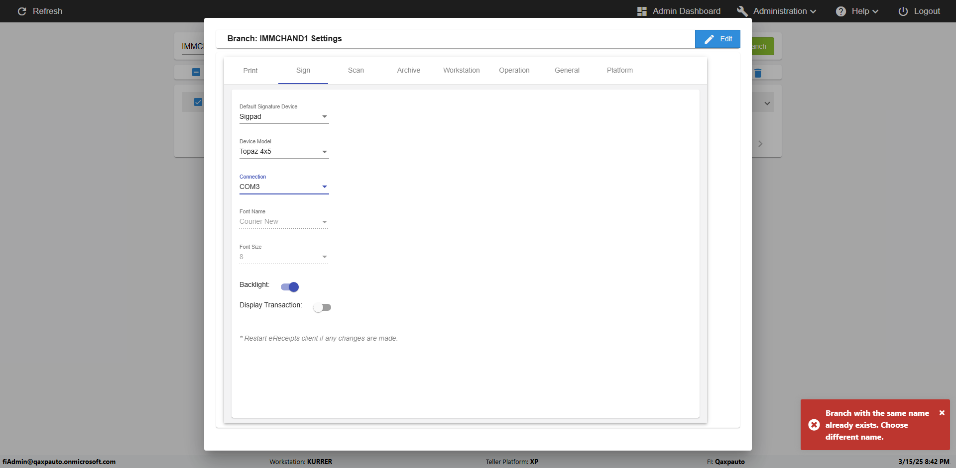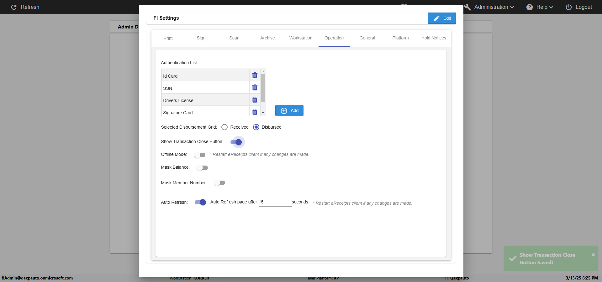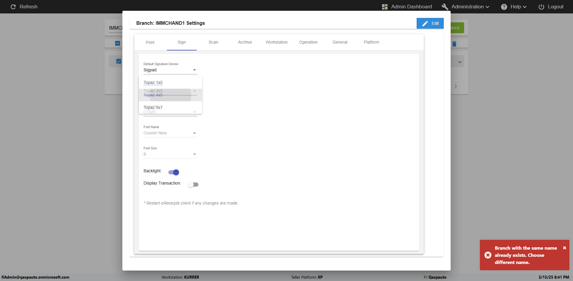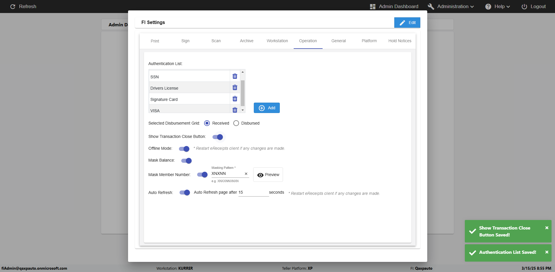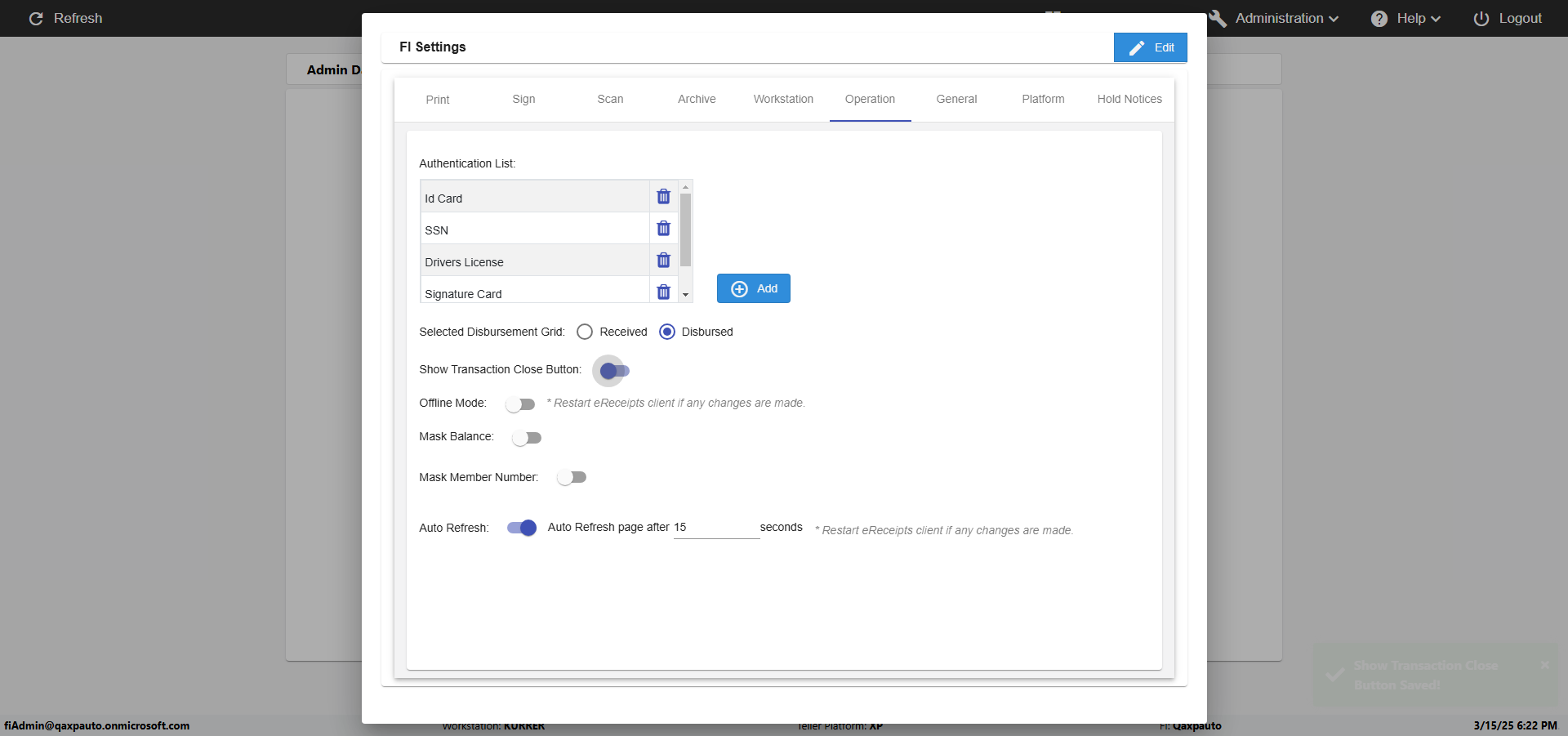 | {Toggel=, Archived Transactions=no, Description=verify touch signature in Receipt Page, Email=FALSE, Archive=FALSE, Document Type=, Notify=TRUE, SignatureTab=Touch,, DisbursedExpression=|-10*5, Operation=, Teller LastName=, Disbursed cash=, errorint=, TestID=verifyTouchSignatureEreceipt, Print=FALSE, DisbursedExpressionValue=TRUE, Phone=, ReceivedCashValue=FALSE, Member=, UserPwd=iMM2022!, Transtatus=Archived-false;Active-true;Error-false, Docment ID=, Teller=, Teller FirstName=Joe, errorMessage=, ReceivedExpressionValue=TRUE, Date=, Platfrom=, Received cash=, Transaction=, Header=, Expression=, Username=ChrisSuperTeller@Qaxpauto.onmicrosoft.com, DisbursedCashValue=FALSE, FullName=, ReceivedExpression=|+100*2, SMS=FALSE, Memo=} |