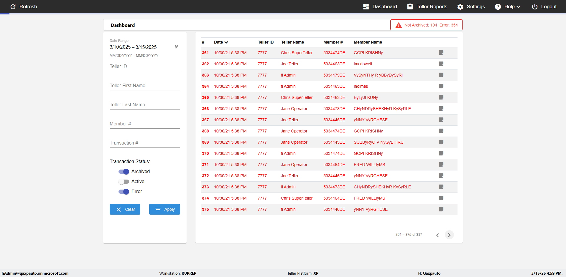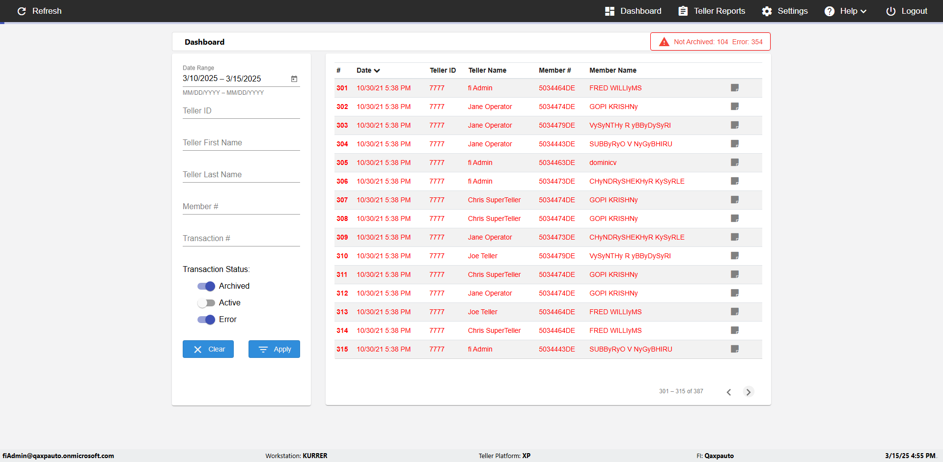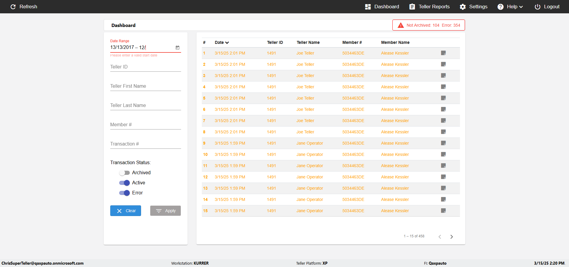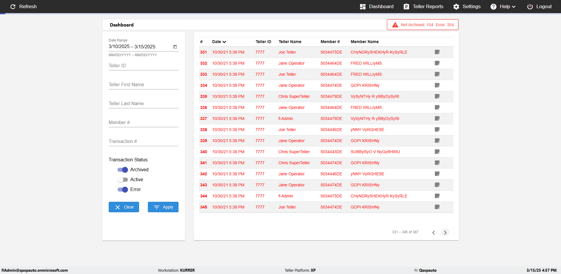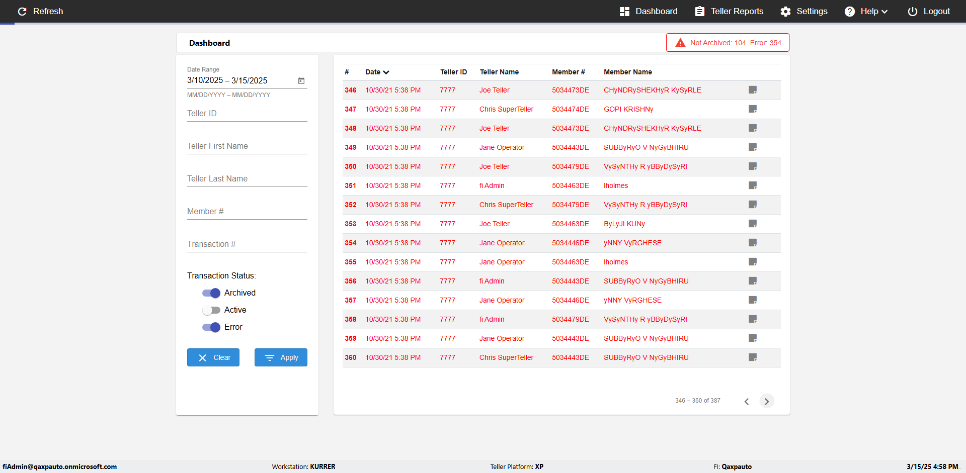 | {UserPwd=iMM2022!, Description=verify Error Messages in Report Page for Date, Teller ID=, errorMessage=Date cannot exceed 7 days after today.;Date cannot exceed 7 days after today., Teller Email=, View=, Date=12/28/2025 - 2/28/2026, Clear=, Workstation=, errorint=2, TestID=verifyErrorMessagesInReports, Transaction=, Header=, Username=ChrisSuperTeller@Qaxpauto.onmicrosoft.com, Export=, Member #=, Search Text=, Level=} |