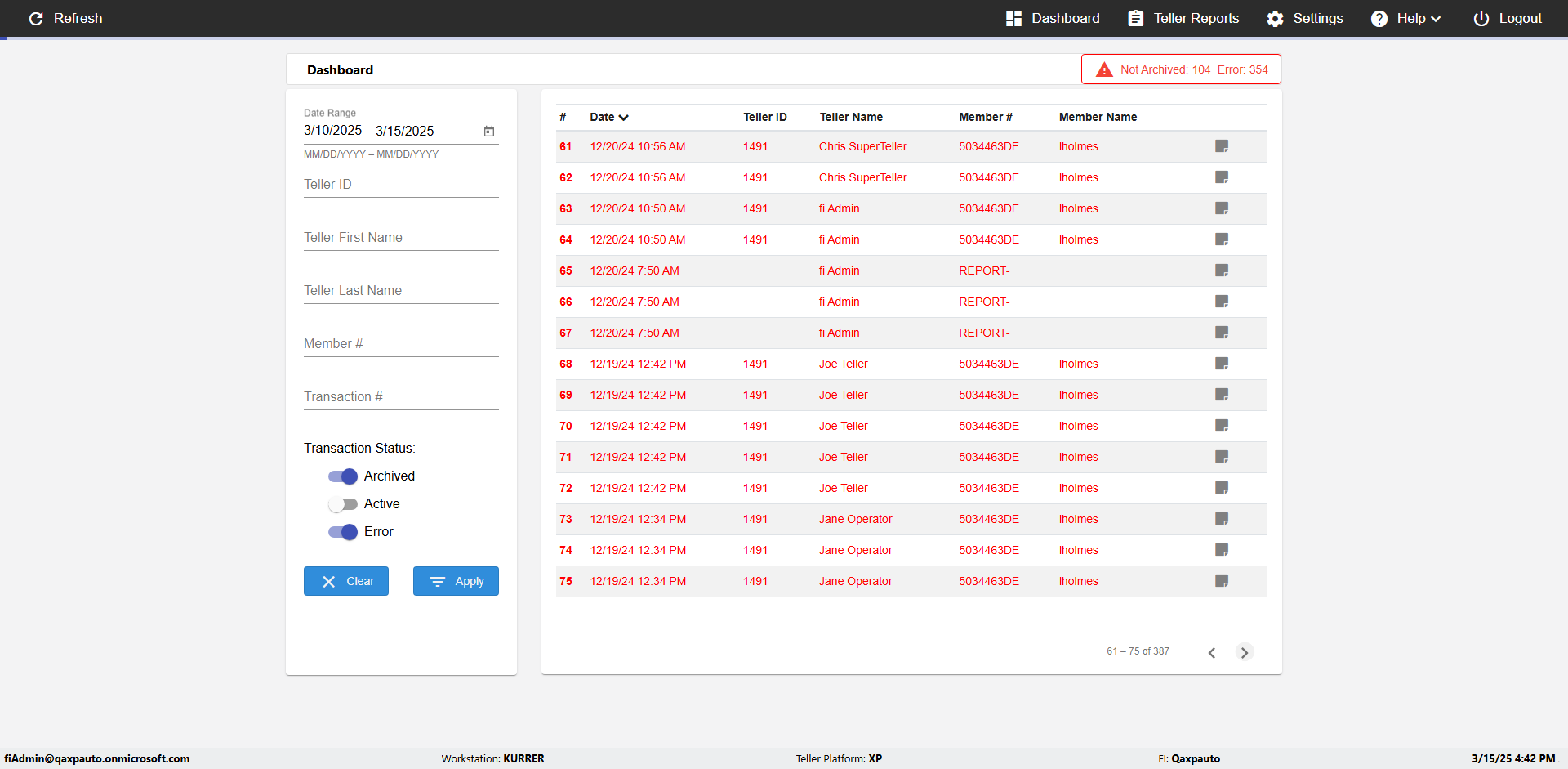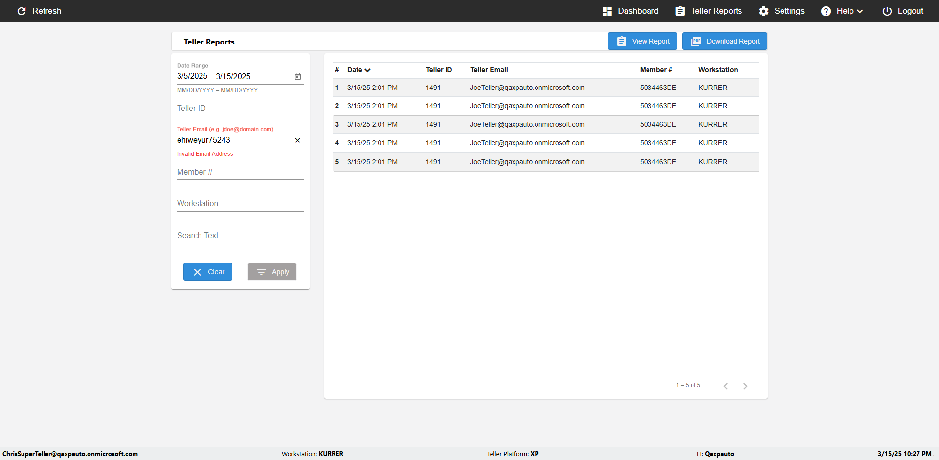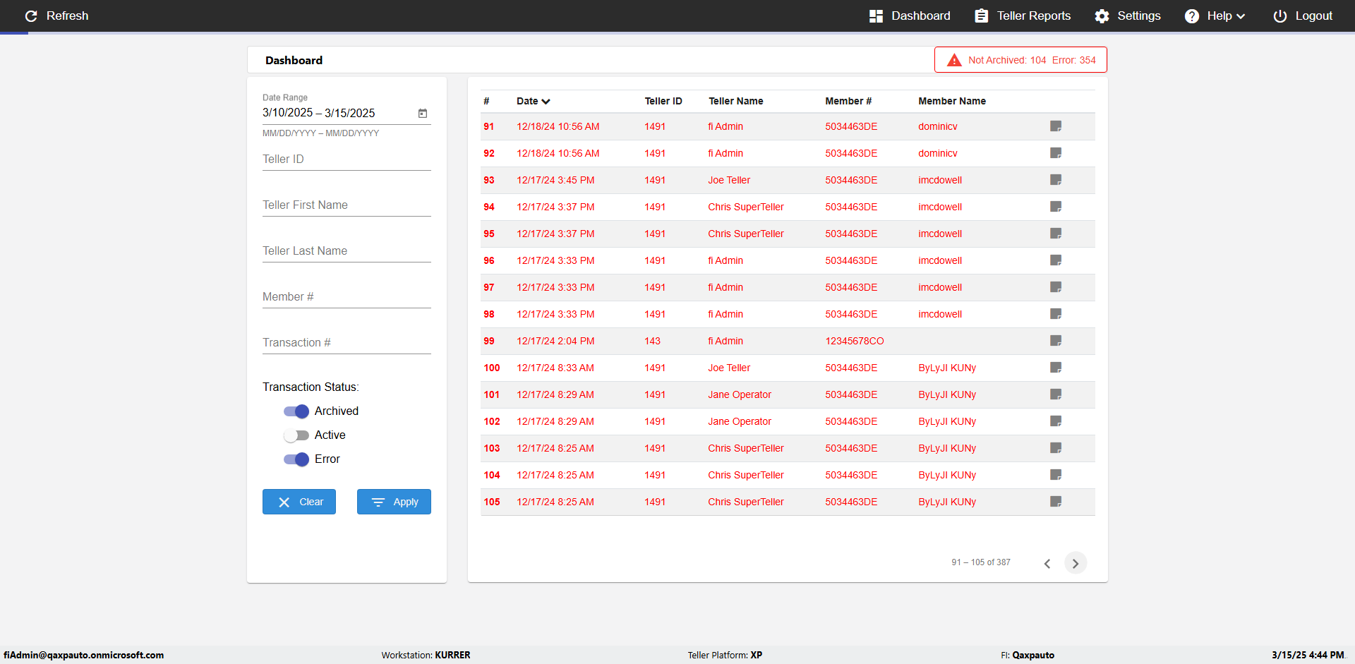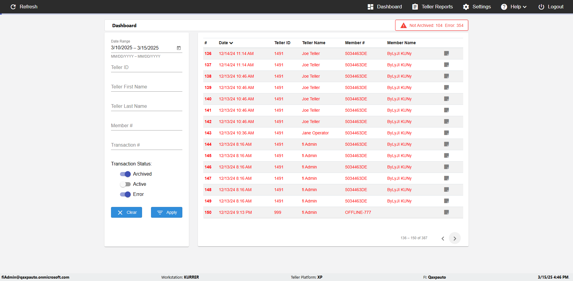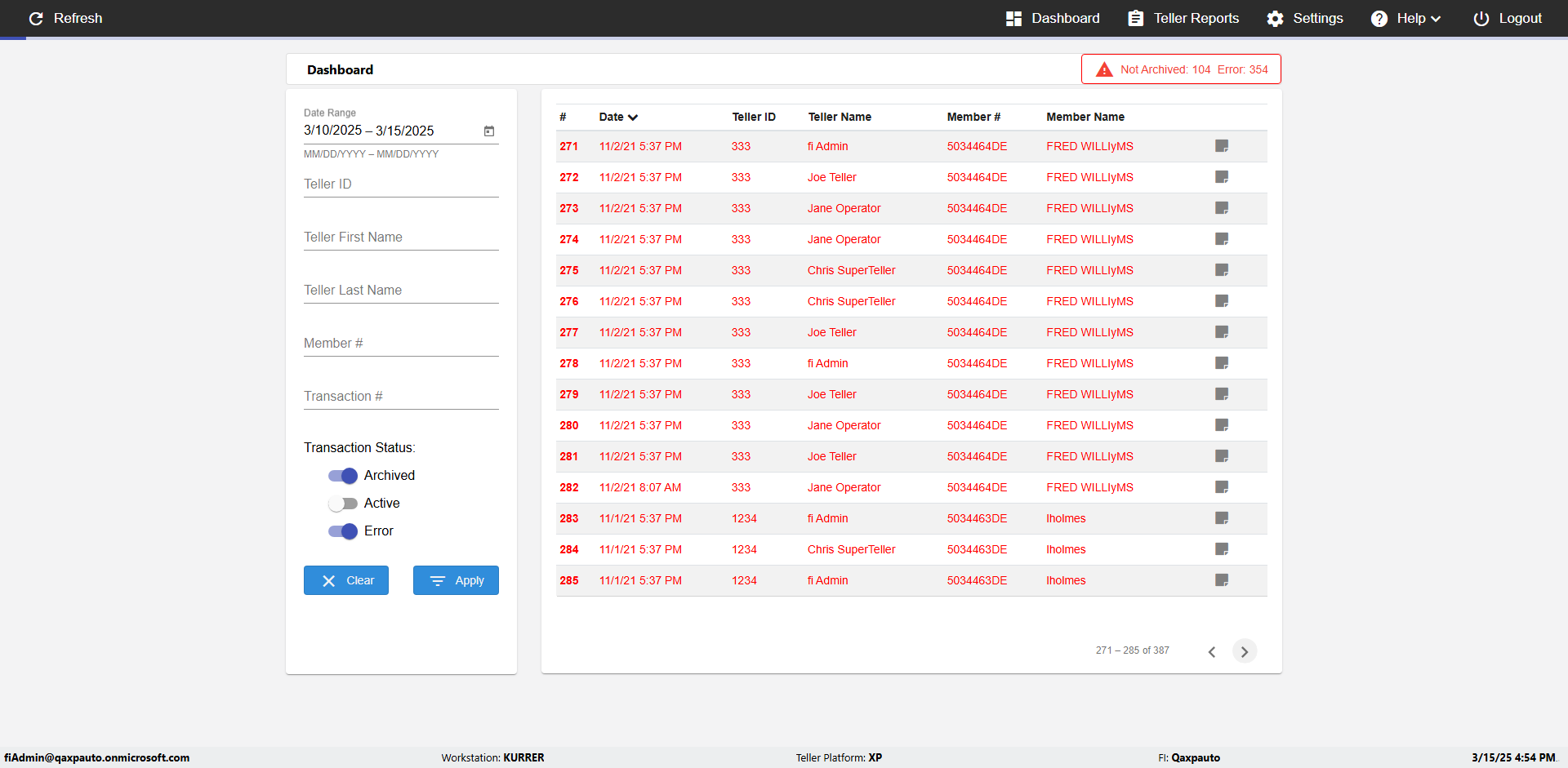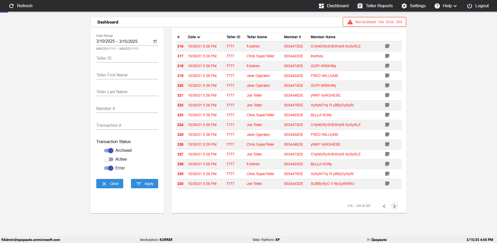 | {UserPwd=iMM2022!, Description=verify Error Messages in Report Page for Date, Teller ID=, errorMessage=Date cannot exceed 7 days after today.;Date cannot exceed 7 days after today., Teller Email=, View=, Date=12/28/2025 - 2/28/2026, Clear=, Workstation=, errorint=2, TestID=verifyErrorMessagesInReports, Transaction=, Header=, Username=ChrisSuperTeller@Qaxpauto.onmicrosoft.com, Export=, Member #=, Search Text=, Level=} |