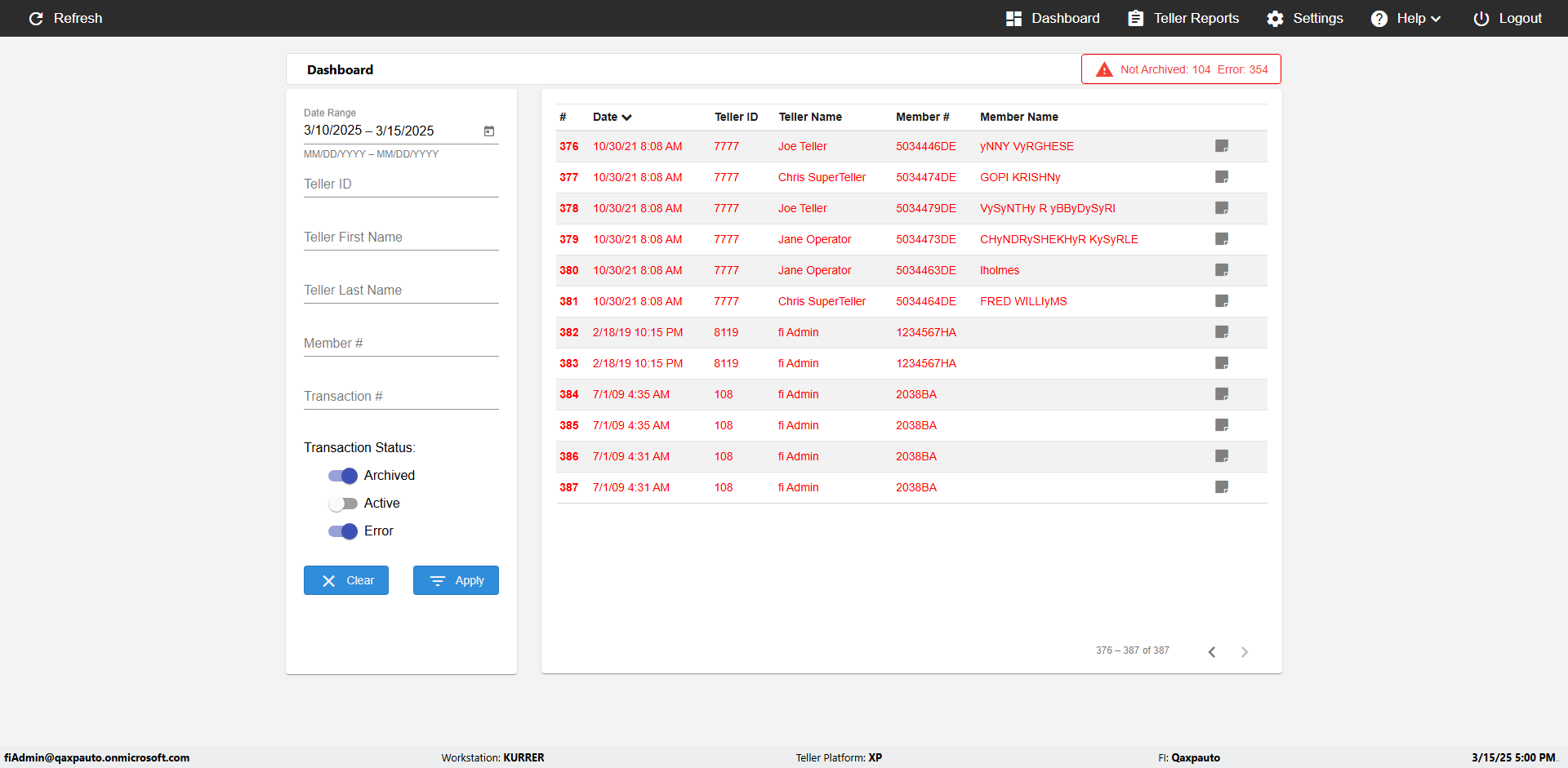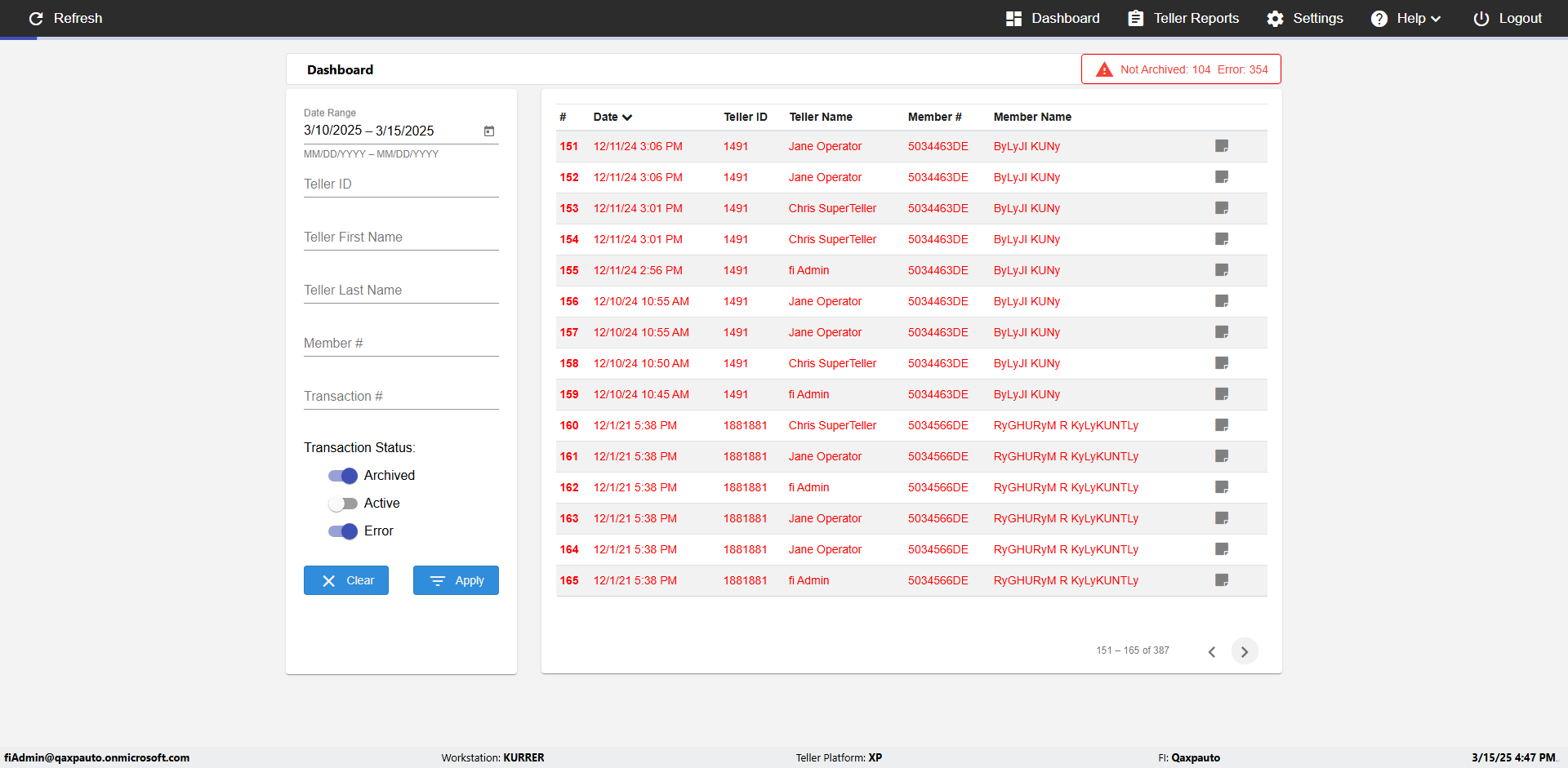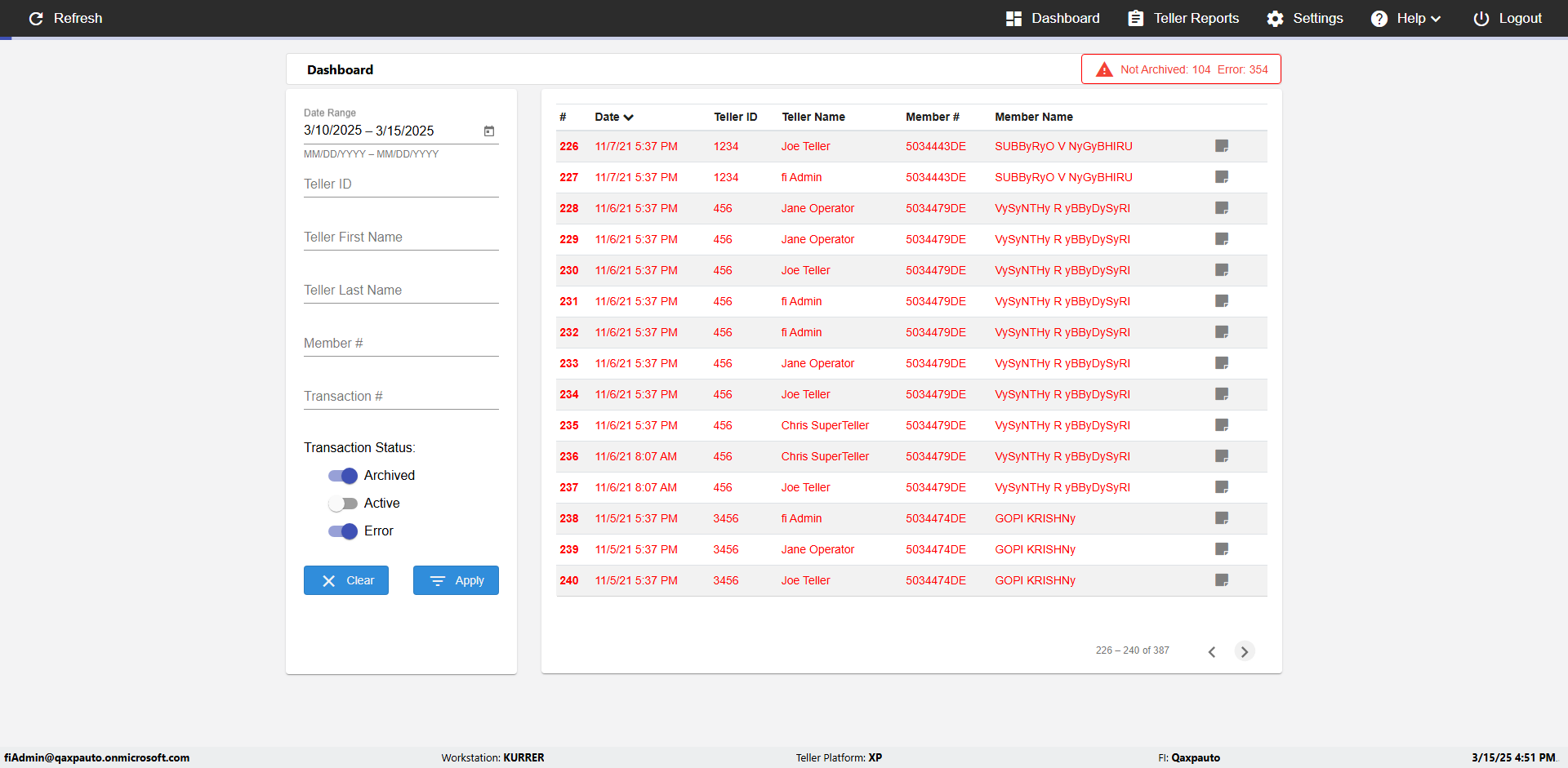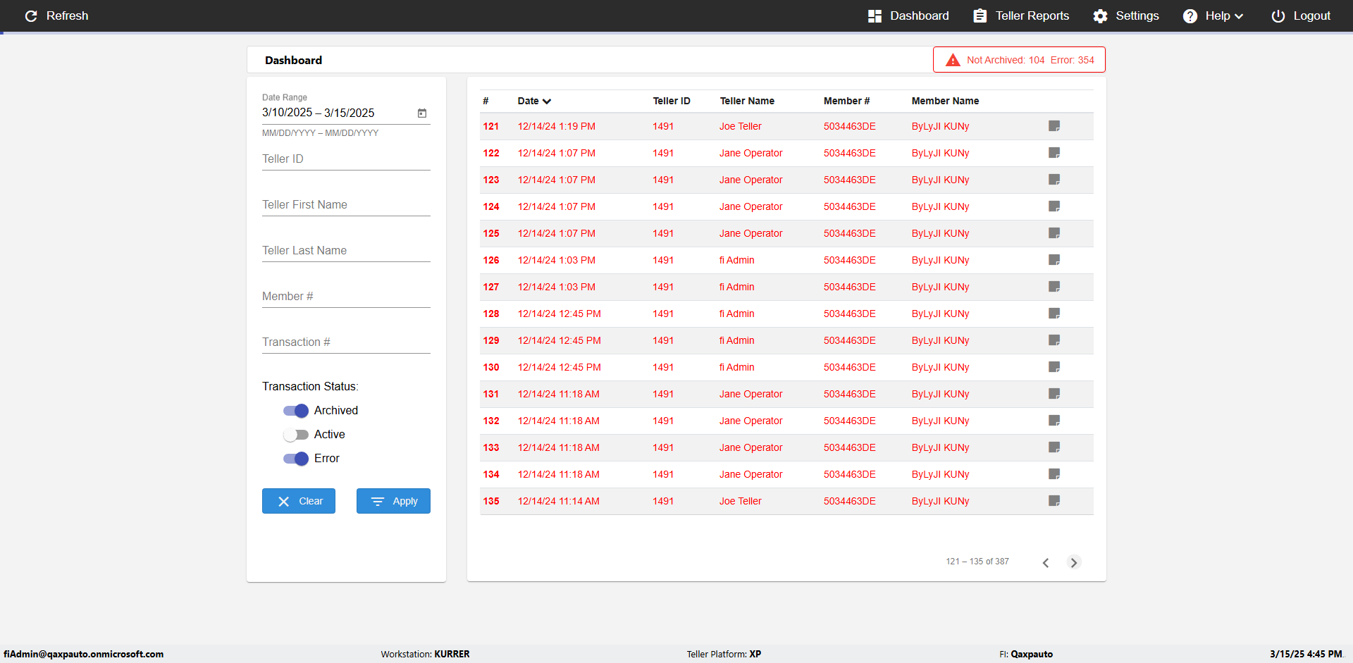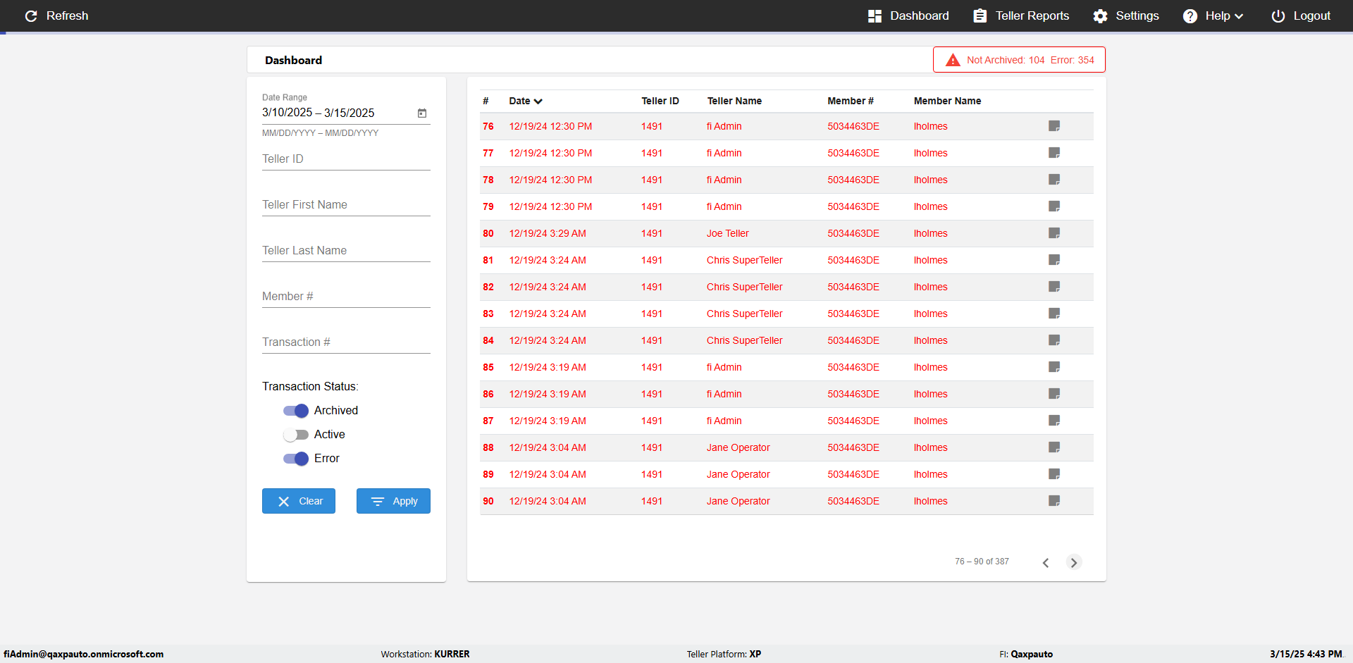 | {UserPwd=iMM2022!, Description=verify Error Messages in Report Page for Date, Teller ID=, errorMessage=Date cannot exceed 7 days after today.;Date cannot exceed 7 days after today., Teller Email=, View=, Date=12/28/2025 - 2/28/2026, Clear=, Workstation=, errorint=2, TestID=verifyErrorMessagesInReports, Transaction=, Header=, Username=ChrisSuperTeller@Qaxpauto.onmicrosoft.com, Export=, Member #=, Search Text=, Level=} |