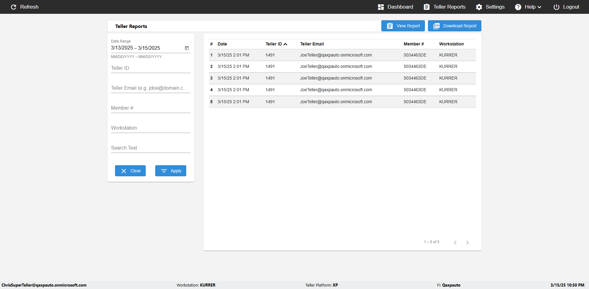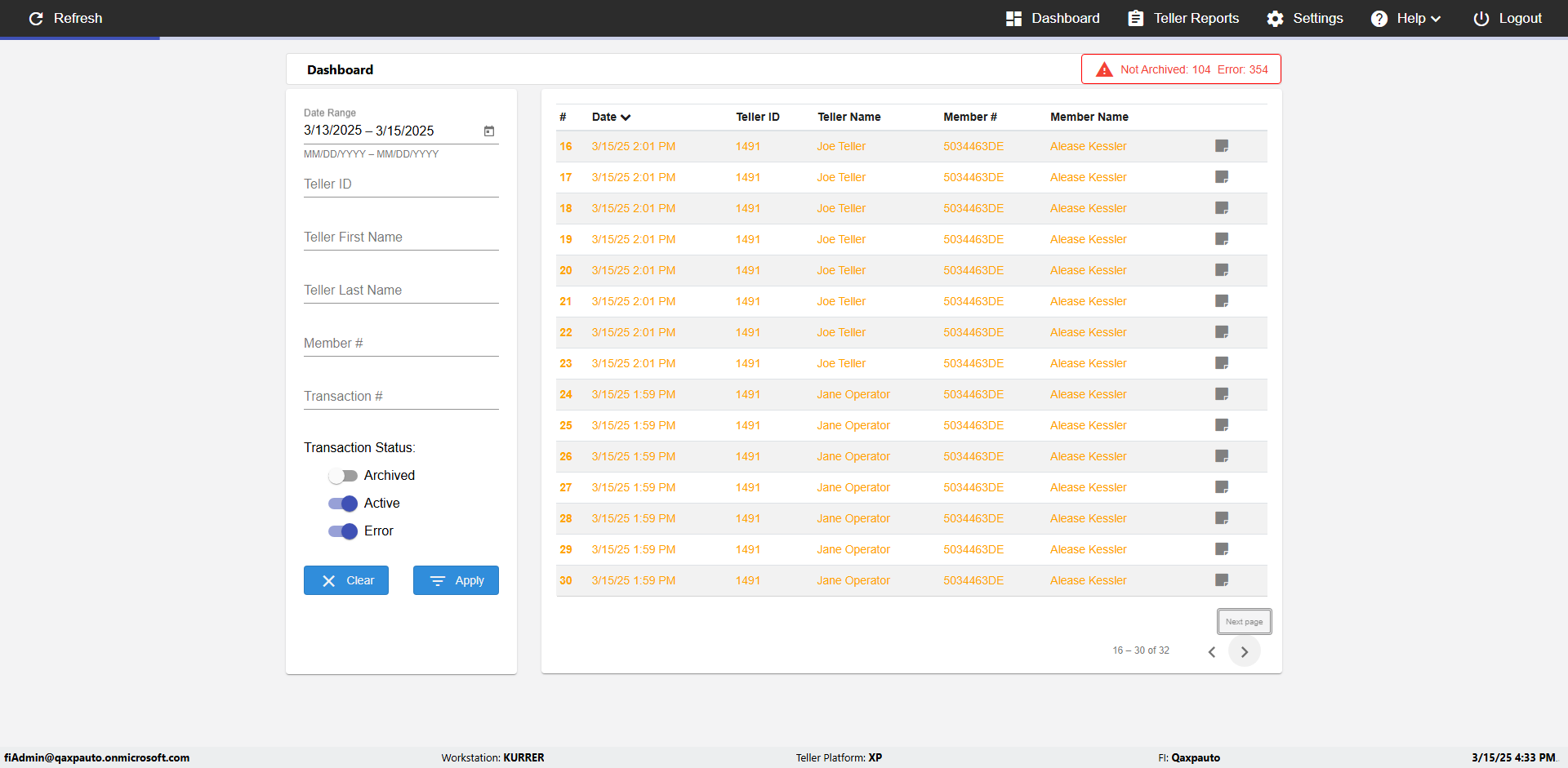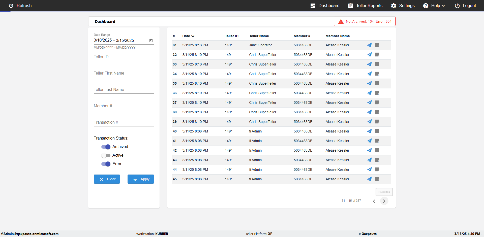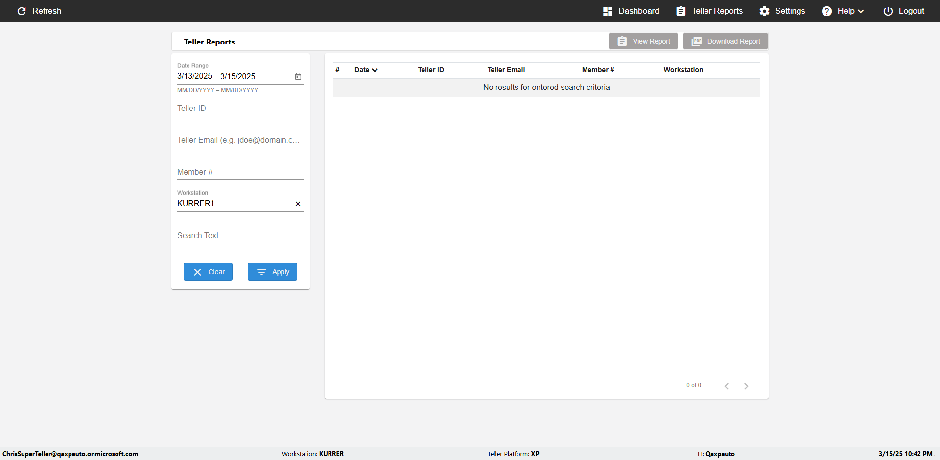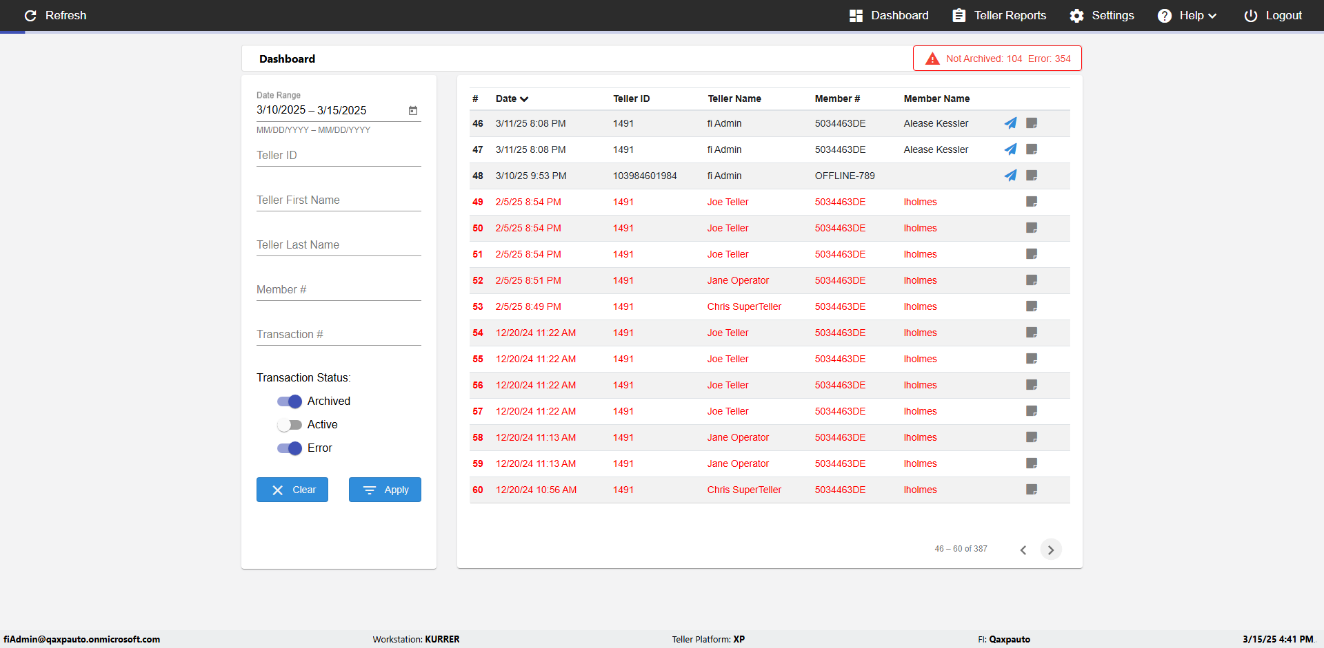 | {UserPwd=iMM2022!, Description=verify Error Messages in Report Page for Date, Teller ID=, errorMessage=Date cannot exceed 7 days after today.;Date cannot exceed 7 days after today., Teller Email=, View=, Date=12/28/2025 - 2/28/2026, Clear=, Workstation=, errorint=2, TestID=verifyErrorMessagesInReports, Transaction=, Header=, Username=ChrisSuperTeller@Qaxpauto.onmicrosoft.com, Export=, Member #=, Search Text=, Level=} |