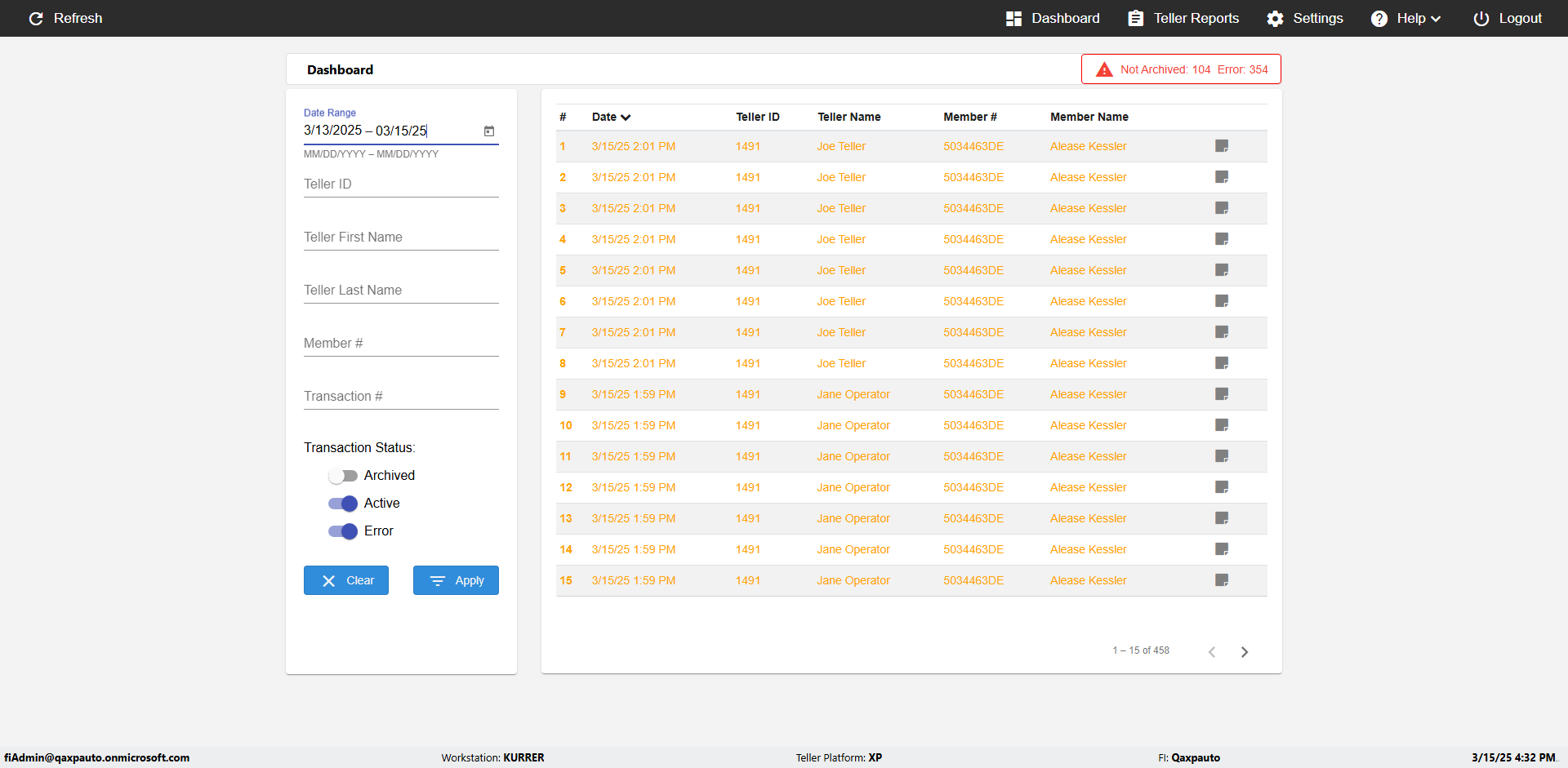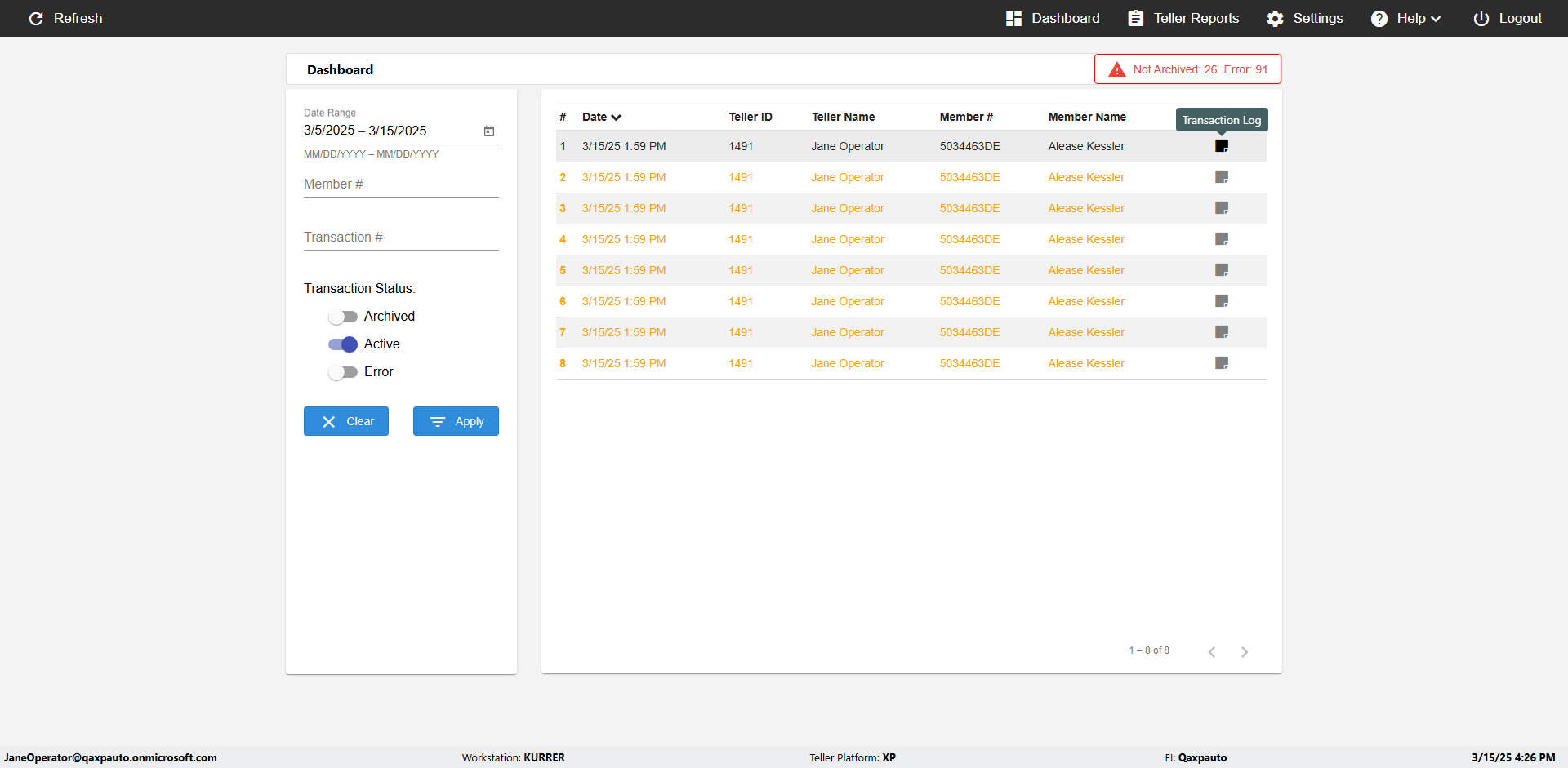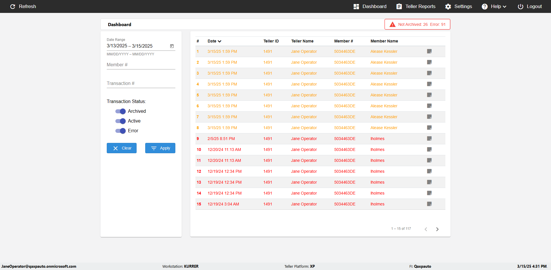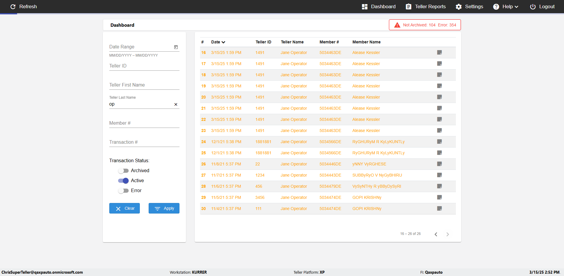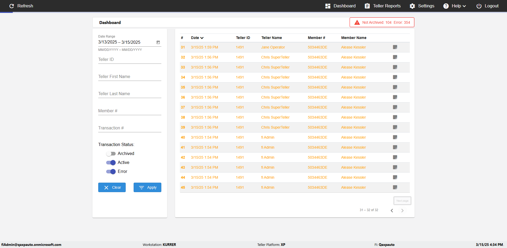 | {UserPwd=iMM2022!, Description=verify Error Messages in Report Page for Date, Teller ID=, errorMessage=Date cannot exceed 7 days after today.;Date cannot exceed 7 days after today., Teller Email=, View=, Date=12/28/2025 - 2/28/2026, Clear=, Workstation=, errorint=2, TestID=verifyErrorMessagesInReports, Transaction=, Header=, Username=ChrisSuperTeller@Qaxpauto.onmicrosoft.com, Export=, Member #=, Search Text=, Level=} |