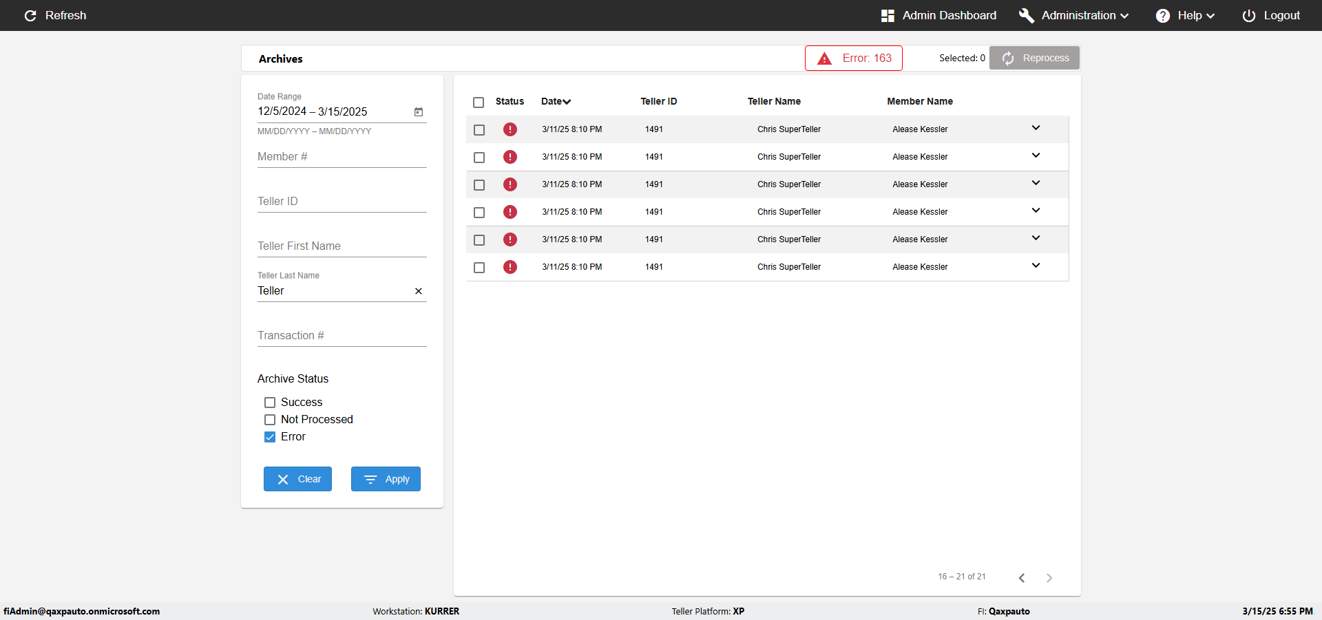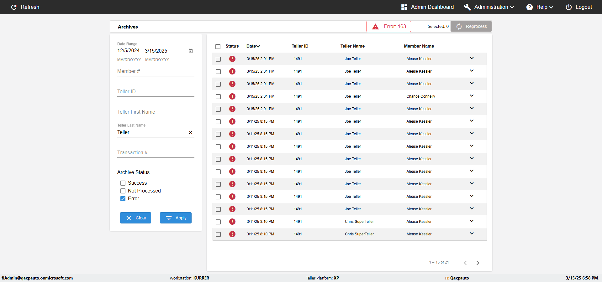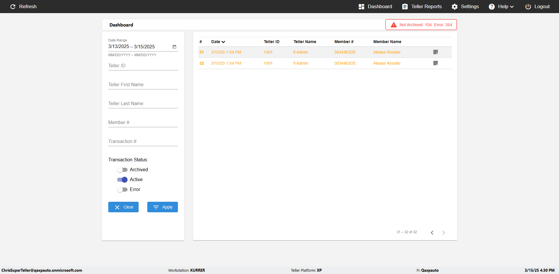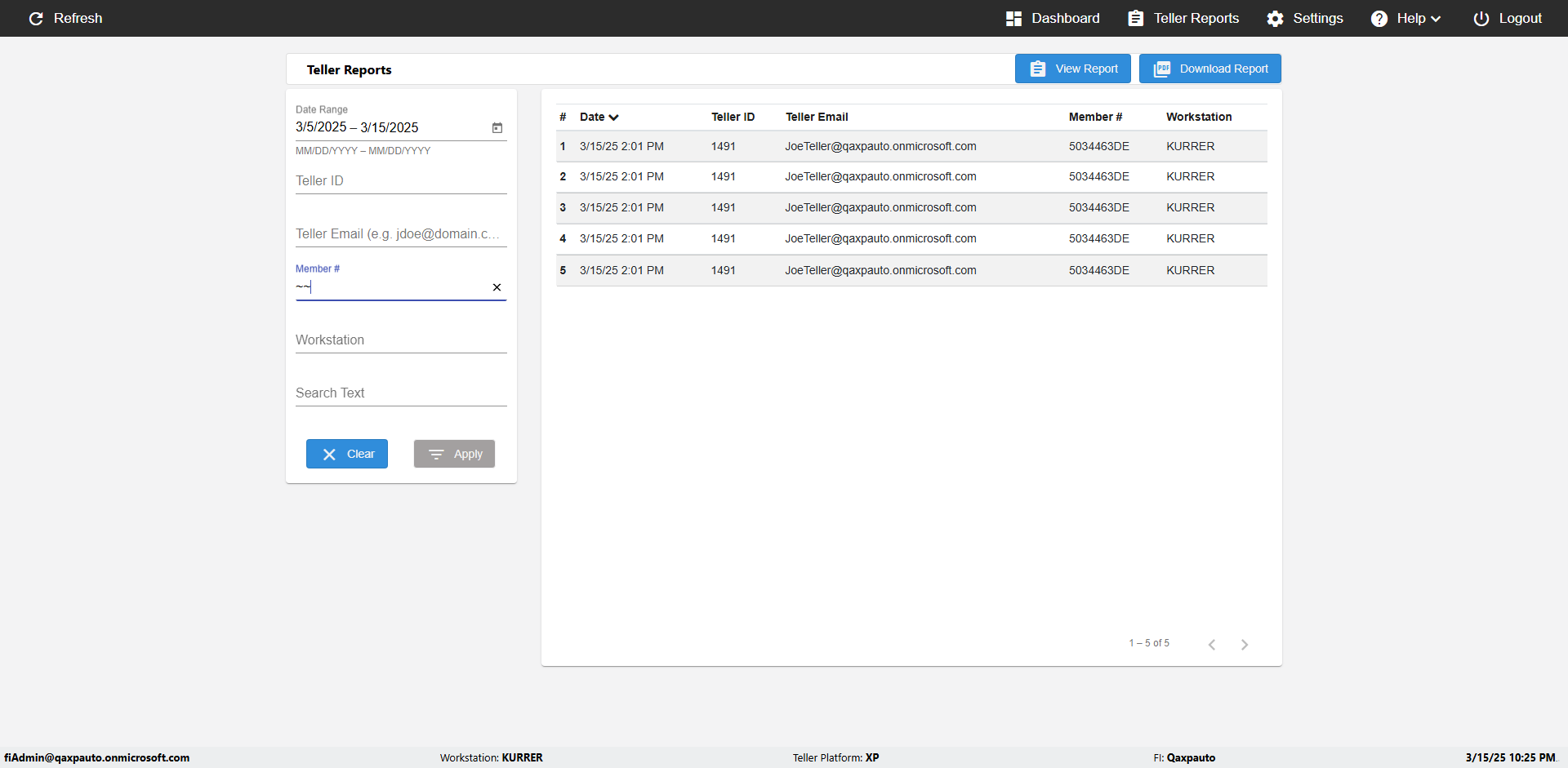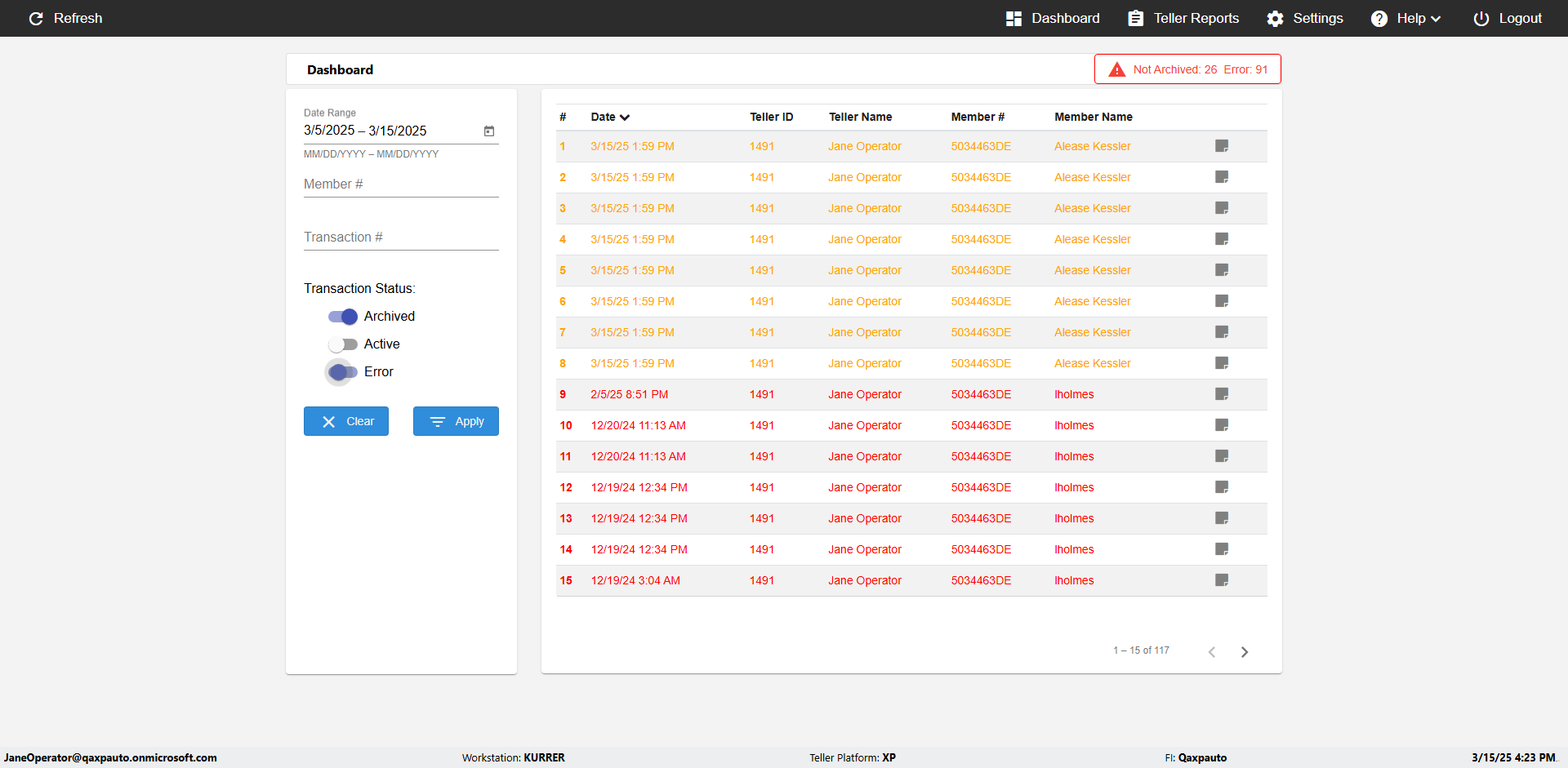 | {UserPwd=iMM2022!, Description=verify Error Messages in Report Page for Date, Teller ID=, errorMessage=Date cannot exceed 7 days after today.;Date cannot exceed 7 days after today., Teller Email=, View=, Date=12/28/2025 - 2/28/2026, Clear=, Workstation=, errorint=2, TestID=verifyErrorMessagesInReports, Transaction=, Header=, Username=ChrisSuperTeller@Qaxpauto.onmicrosoft.com, Export=, Member #=, Search Text=, Level=} |