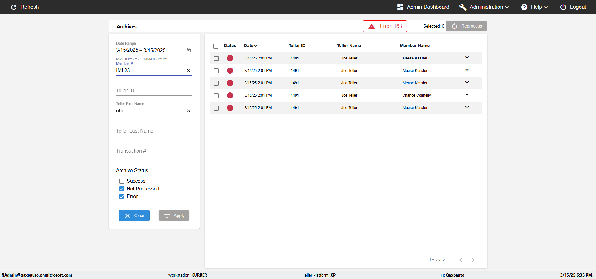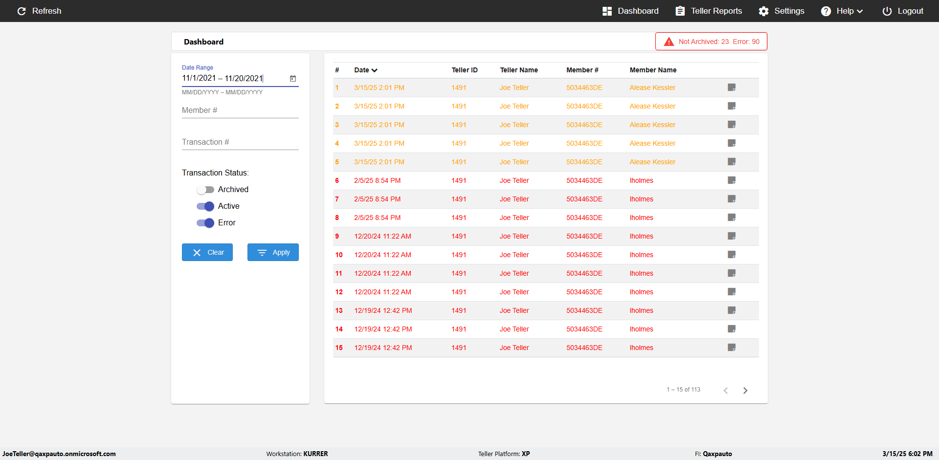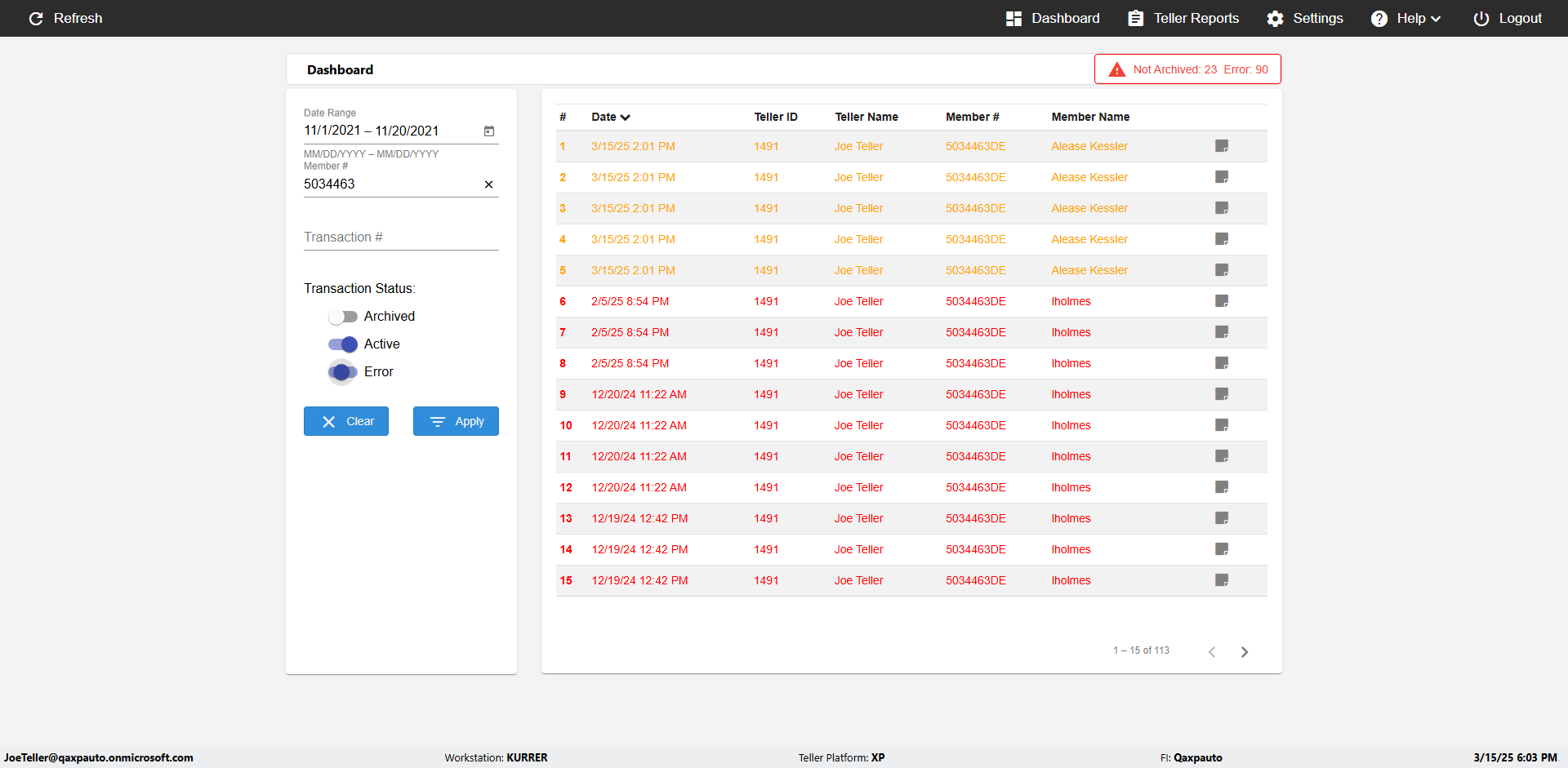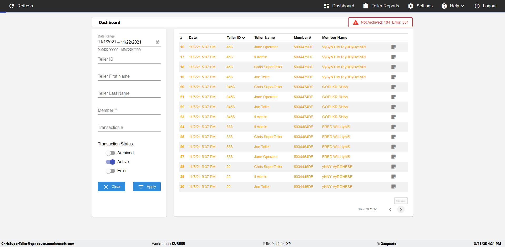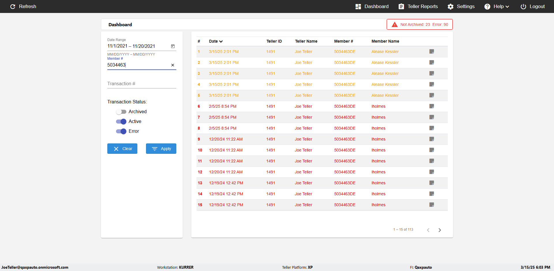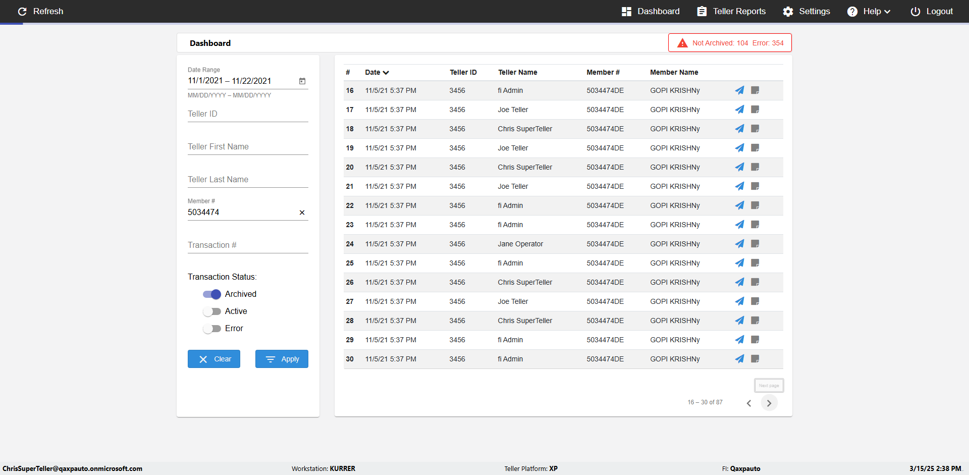 | {UserPwd=iMM2022!, Description=verify Error Messages in Report Page for Date, Teller ID=, errorMessage=Date cannot exceed 7 days after today.;Date cannot exceed 7 days after today., Teller Email=, View=, Date=12/28/2025 - 2/28/2026, Clear=, Workstation=, errorint=2, TestID=verifyErrorMessagesInReports, Transaction=, Header=, Username=ChrisSuperTeller@Qaxpauto.onmicrosoft.com, Export=, Member #=, Search Text=, Level=} |