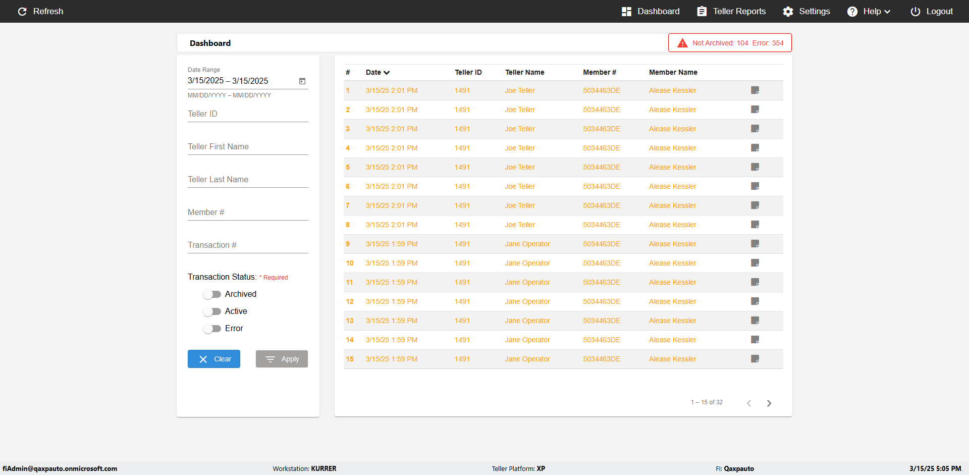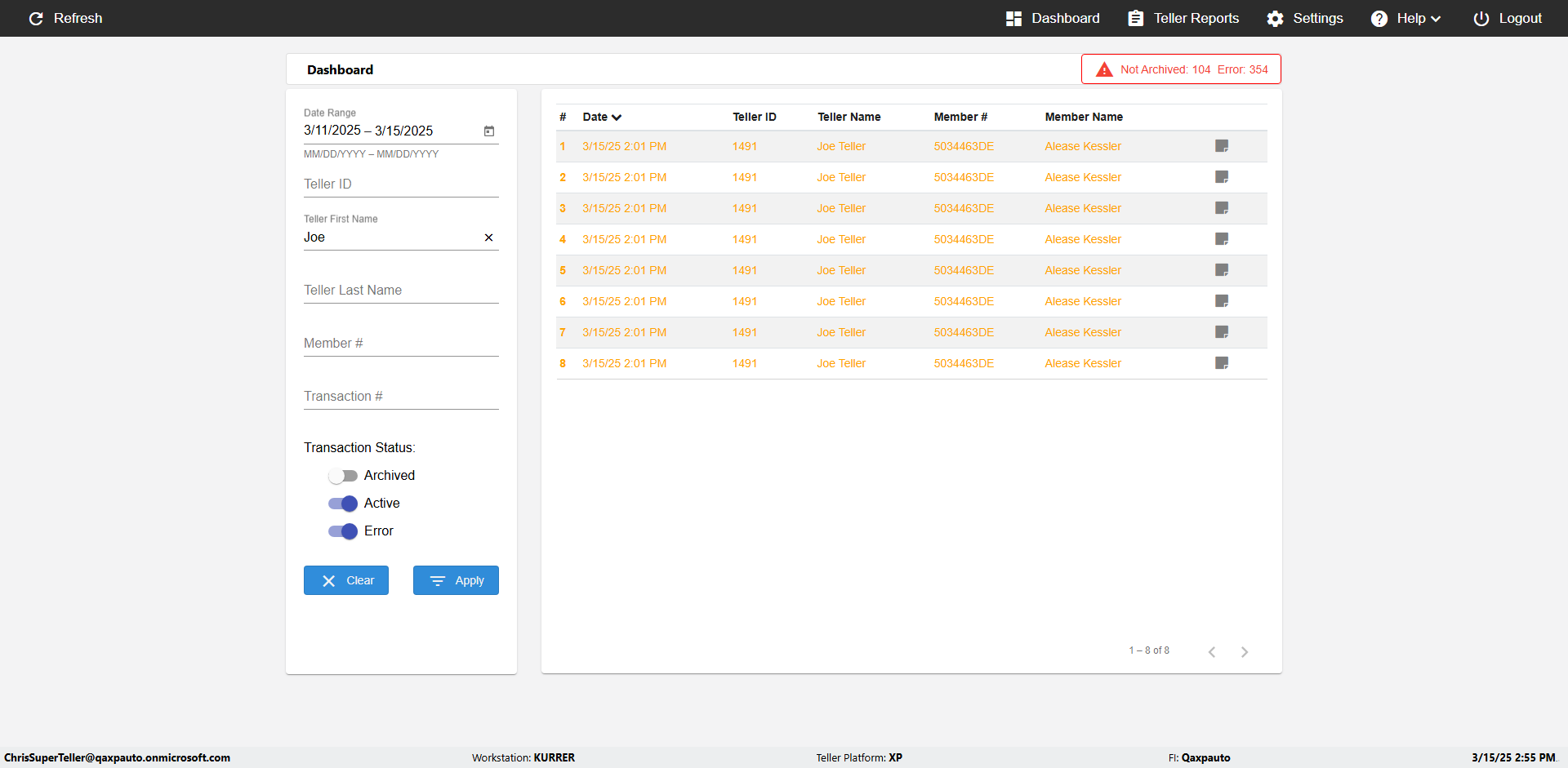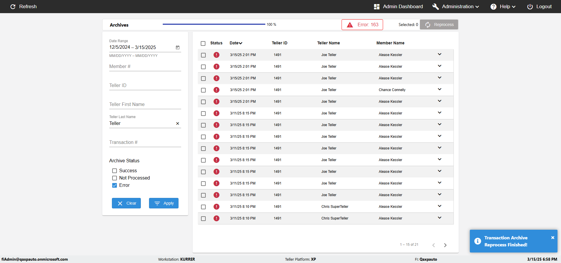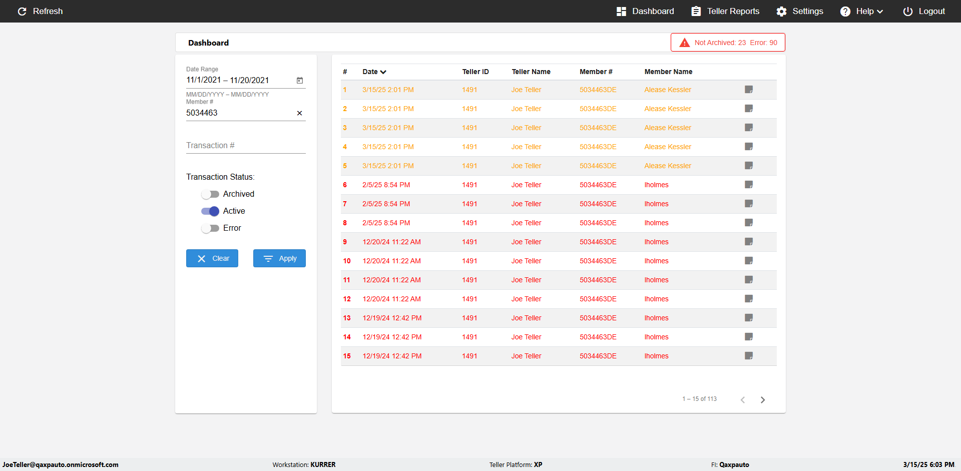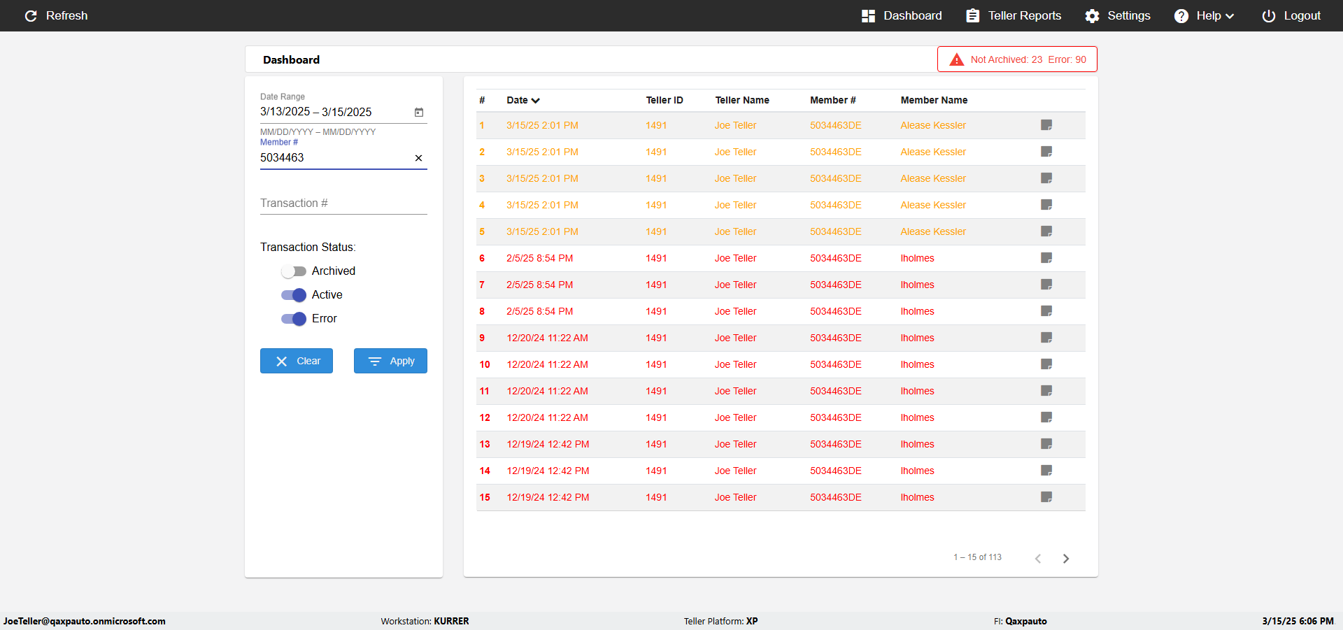 | {UserPwd=iMM2022!, Description=verify Error Messages in Report Page for Date, Teller ID=, errorMessage=Date cannot exceed 7 days after today.;Date cannot exceed 7 days after today., Teller Email=, View=, Date=12/28/2025 - 2/28/2026, Clear=, Workstation=, errorint=2, TestID=verifyErrorMessagesInReports, Transaction=, Header=, Username=ChrisSuperTeller@Qaxpauto.onmicrosoft.com, Export=, Member #=, Search Text=, Level=} |