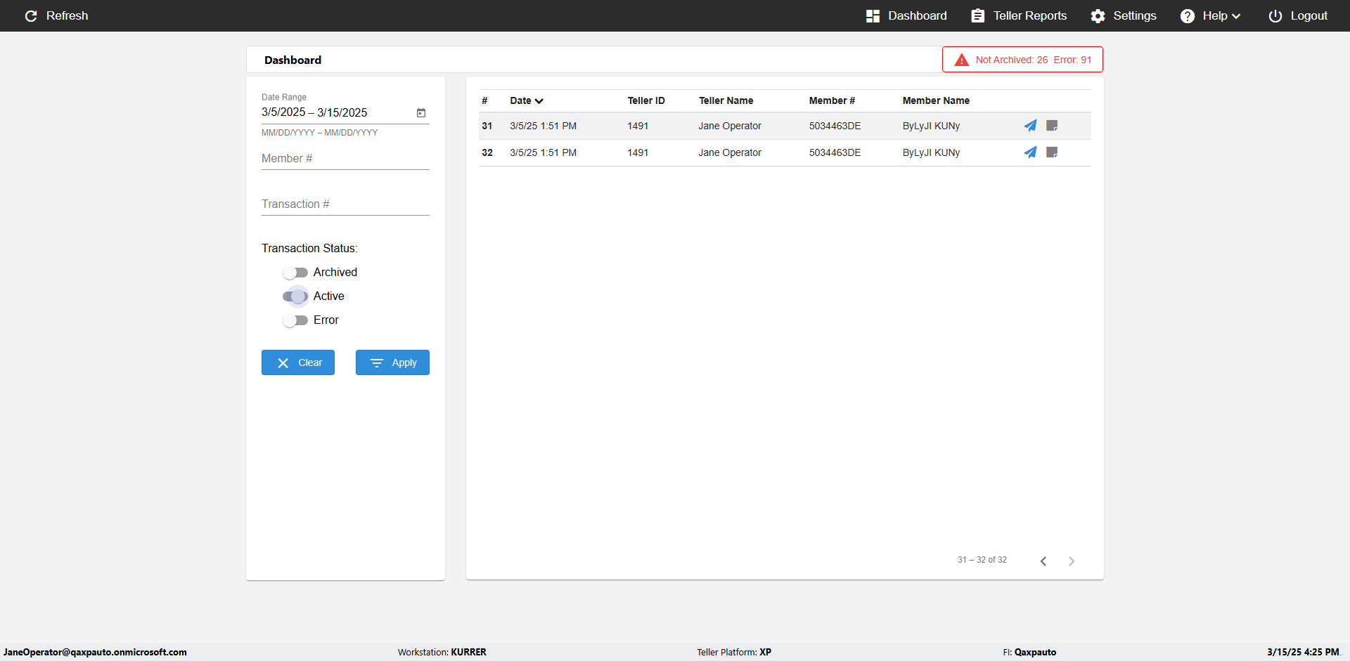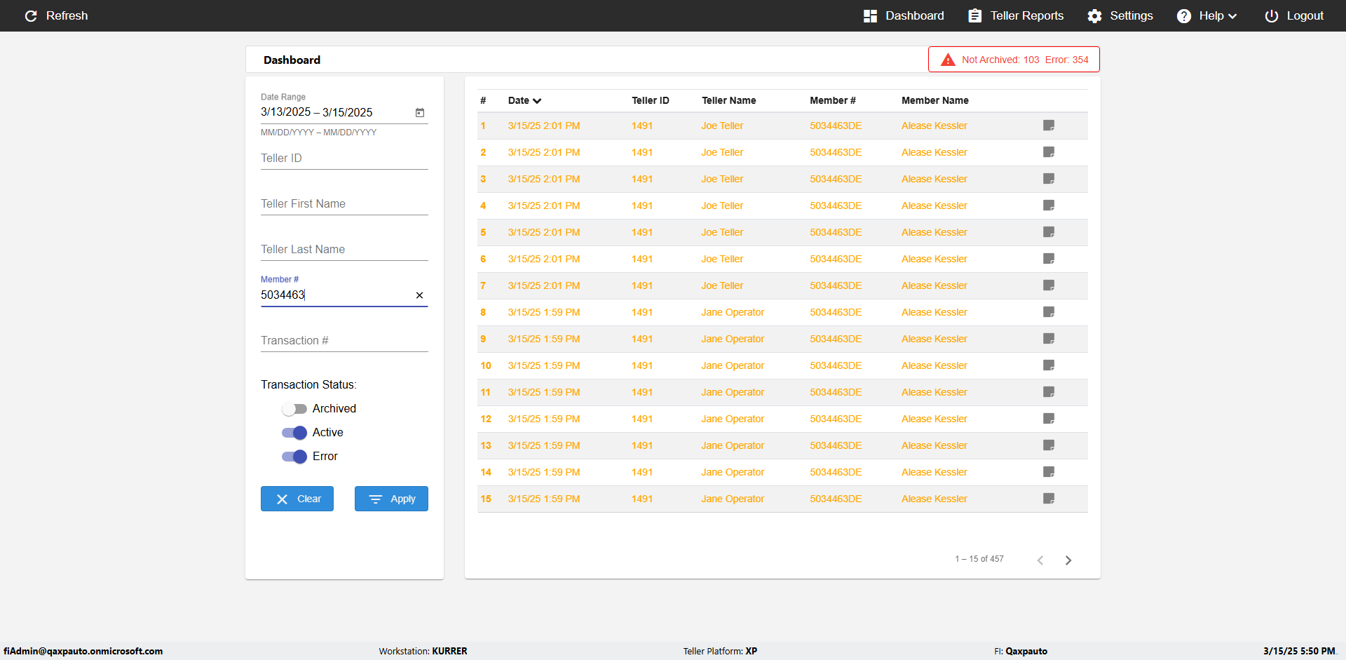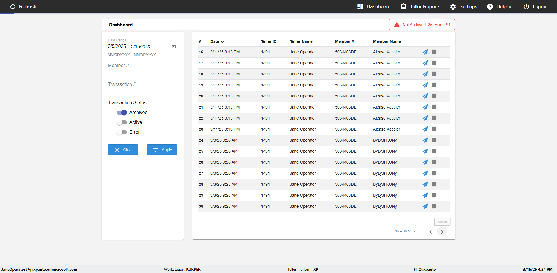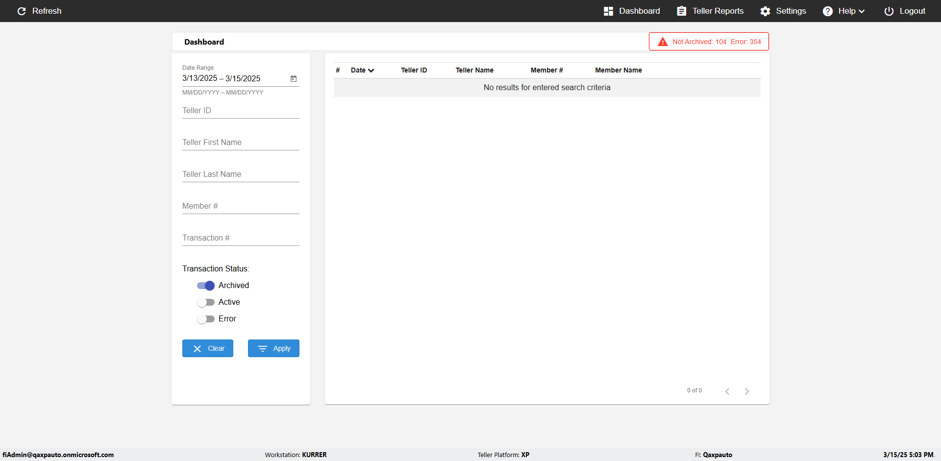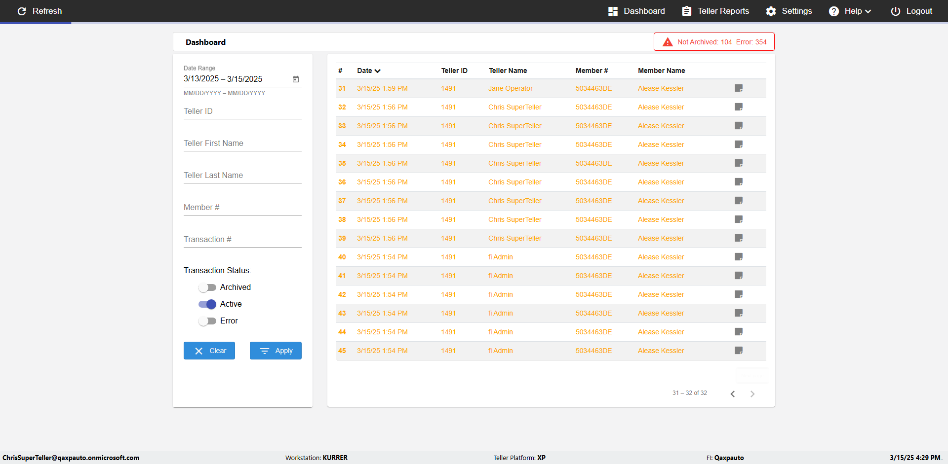 | {UserPwd=iMM2022!, Description=verify Error Messages in Report Page for Date, Teller ID=, errorMessage=Date cannot exceed 7 days after today.;Date cannot exceed 7 days after today., Teller Email=, View=, Date=12/28/2025 - 2/28/2026, Clear=, Workstation=, errorint=2, TestID=verifyErrorMessagesInReports, Transaction=, Header=, Username=ChrisSuperTeller@Qaxpauto.onmicrosoft.com, Export=, Member #=, Search Text=, Level=} |