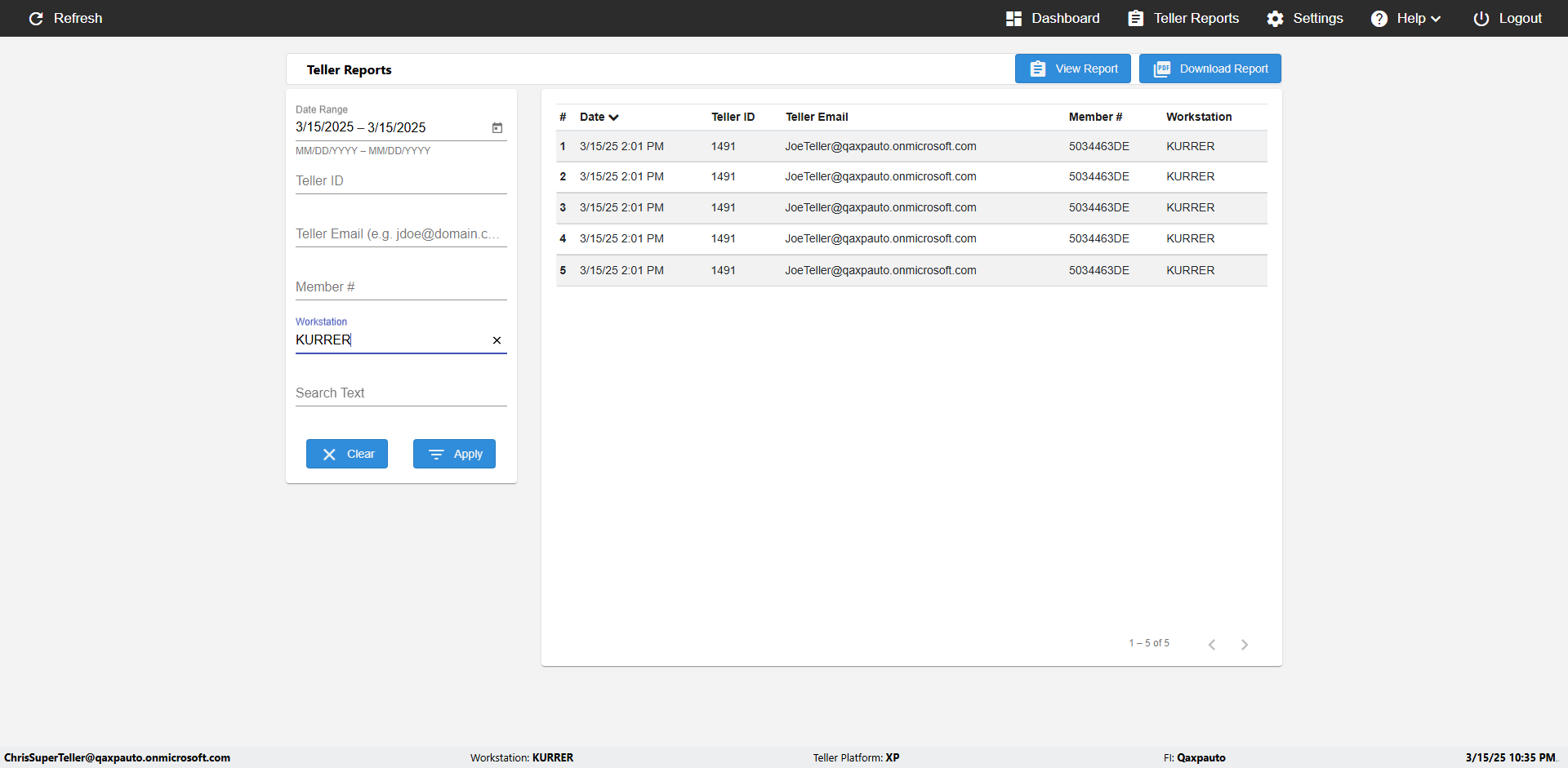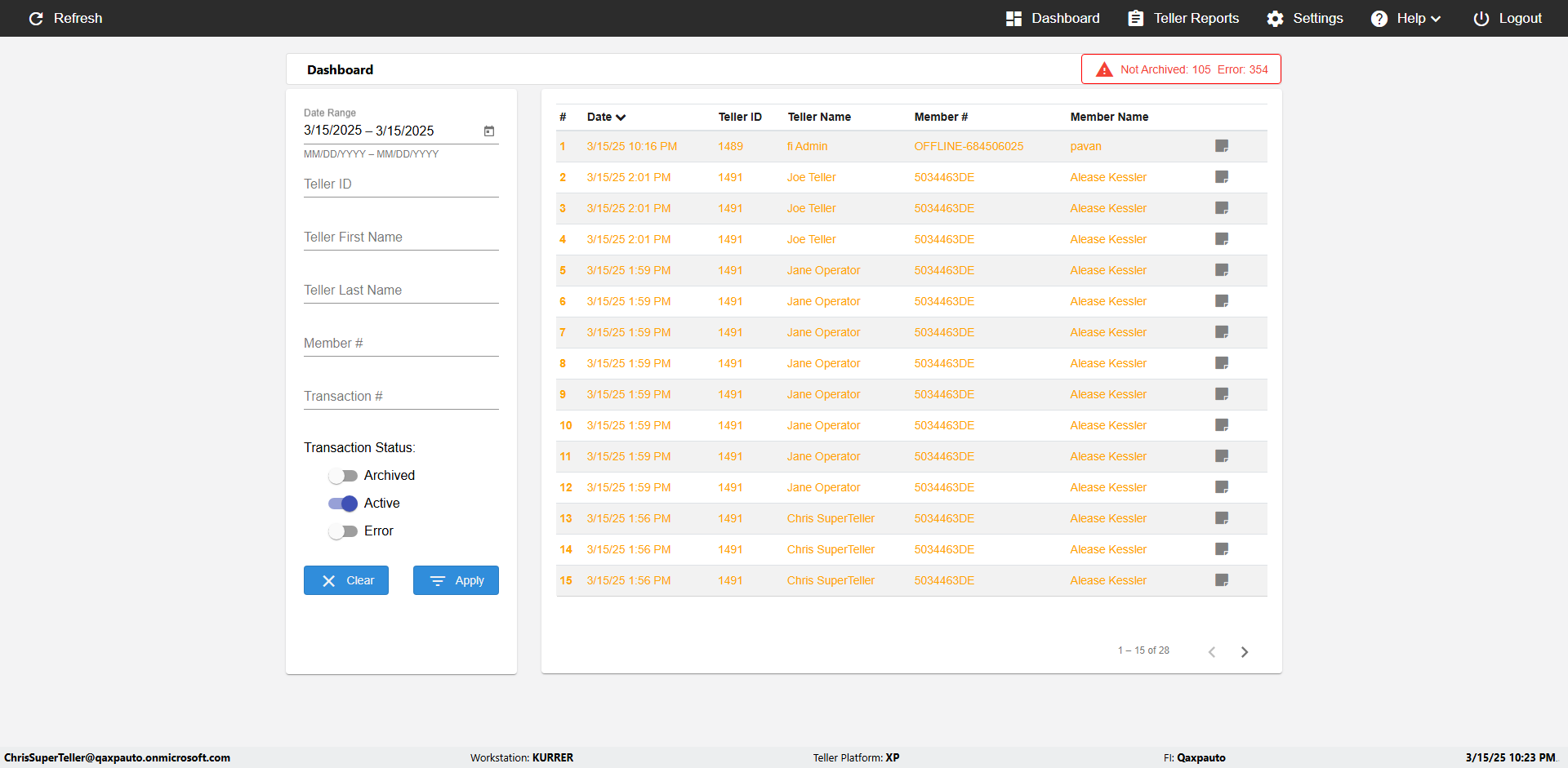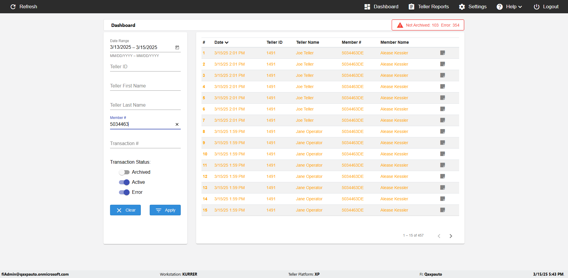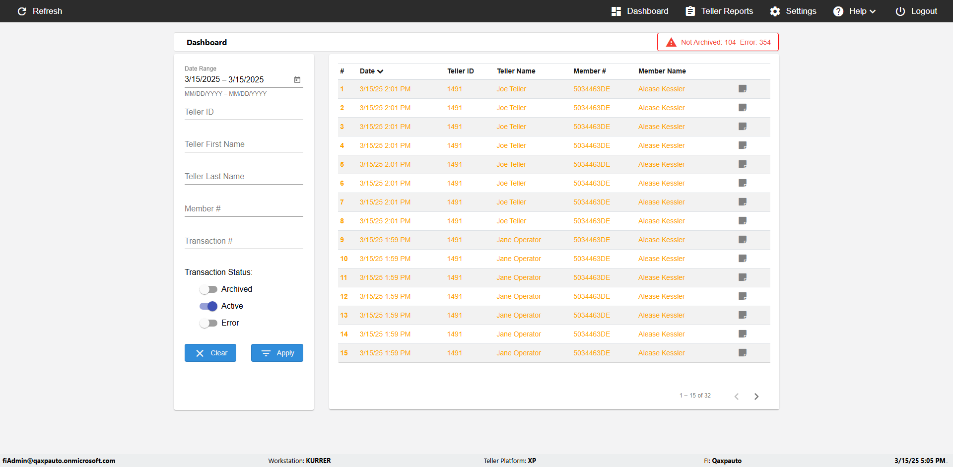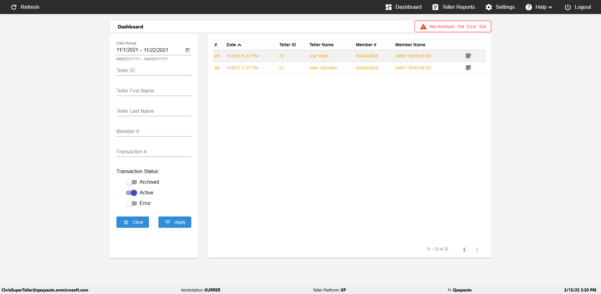 | {UserPwd=iMM2022!, Description=verify Error Messages in Report Page for Date, Teller ID=, errorMessage=Date cannot exceed 7 days after today.;Date cannot exceed 7 days after today., Teller Email=, View=, Date=12/28/2025 - 2/28/2026, Clear=, Workstation=, errorint=2, TestID=verifyErrorMessagesInReports, Transaction=, Header=, Username=ChrisSuperTeller@Qaxpauto.onmicrosoft.com, Export=, Member #=, Search Text=, Level=} |