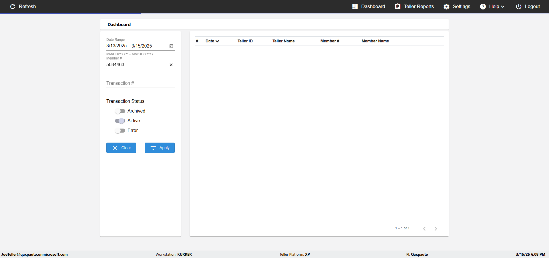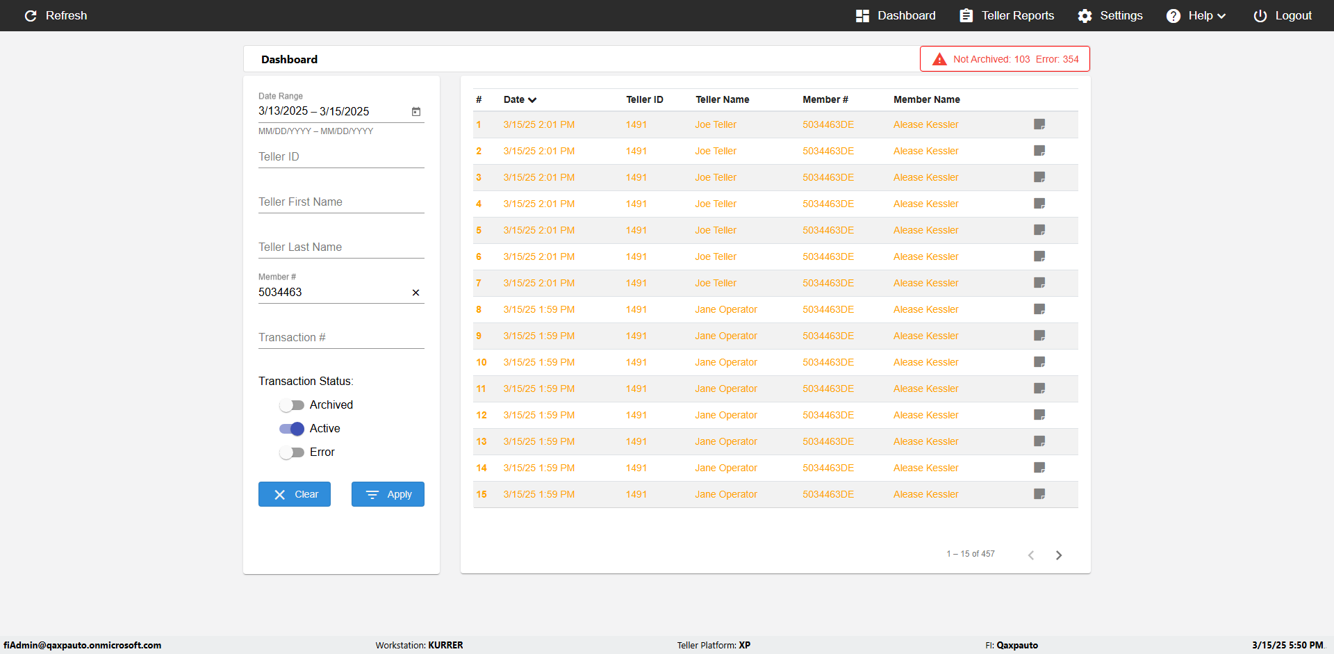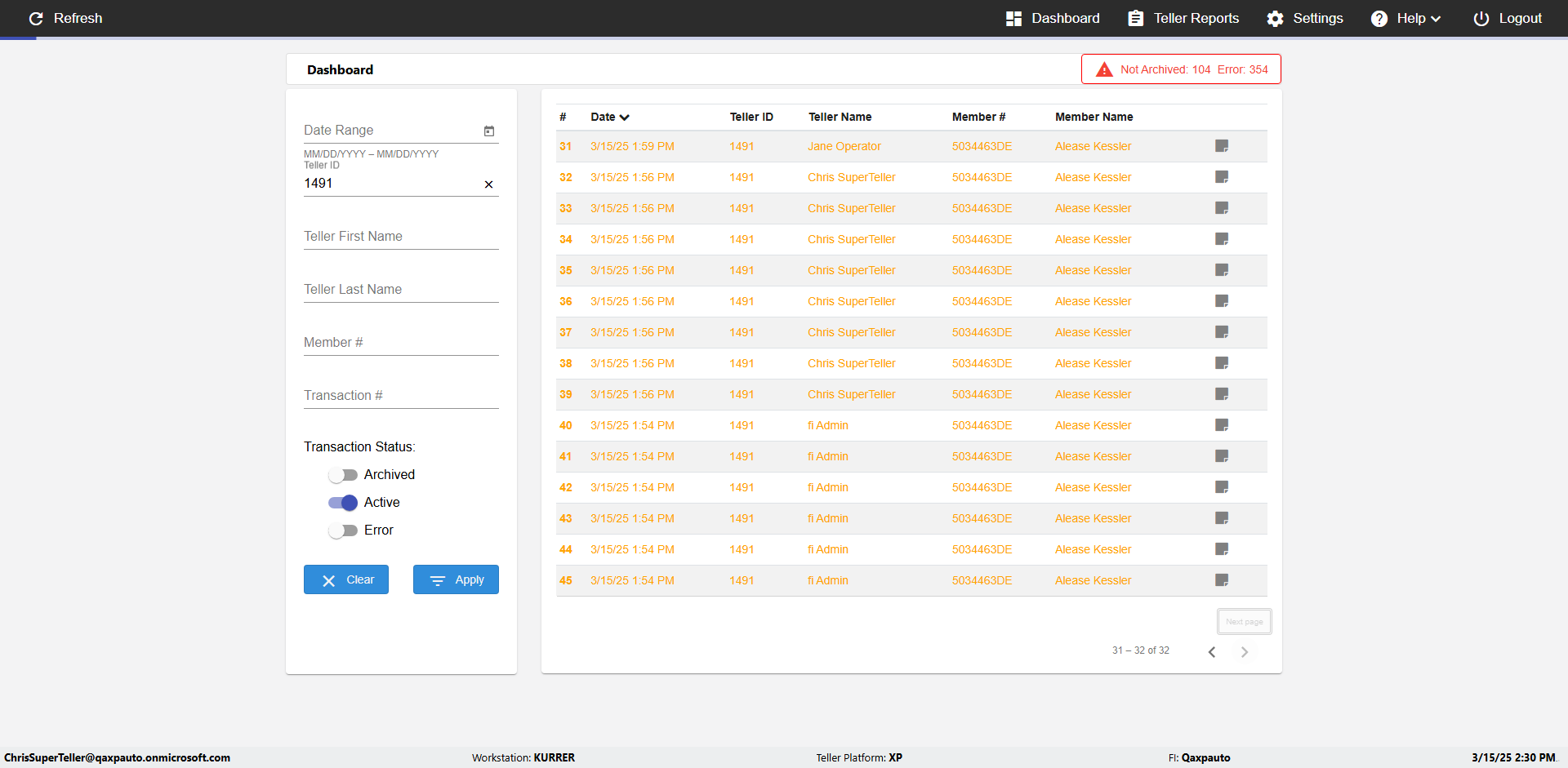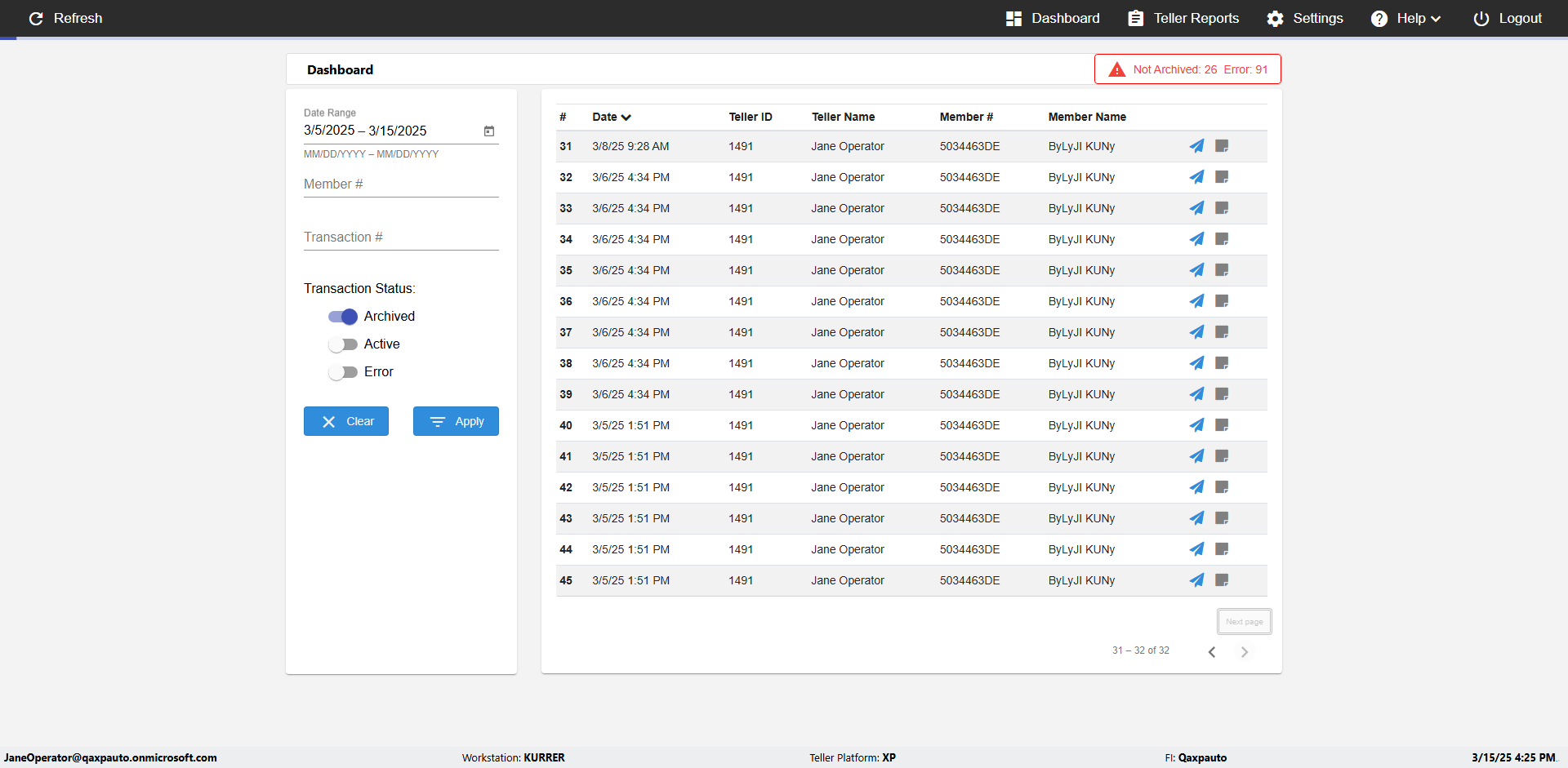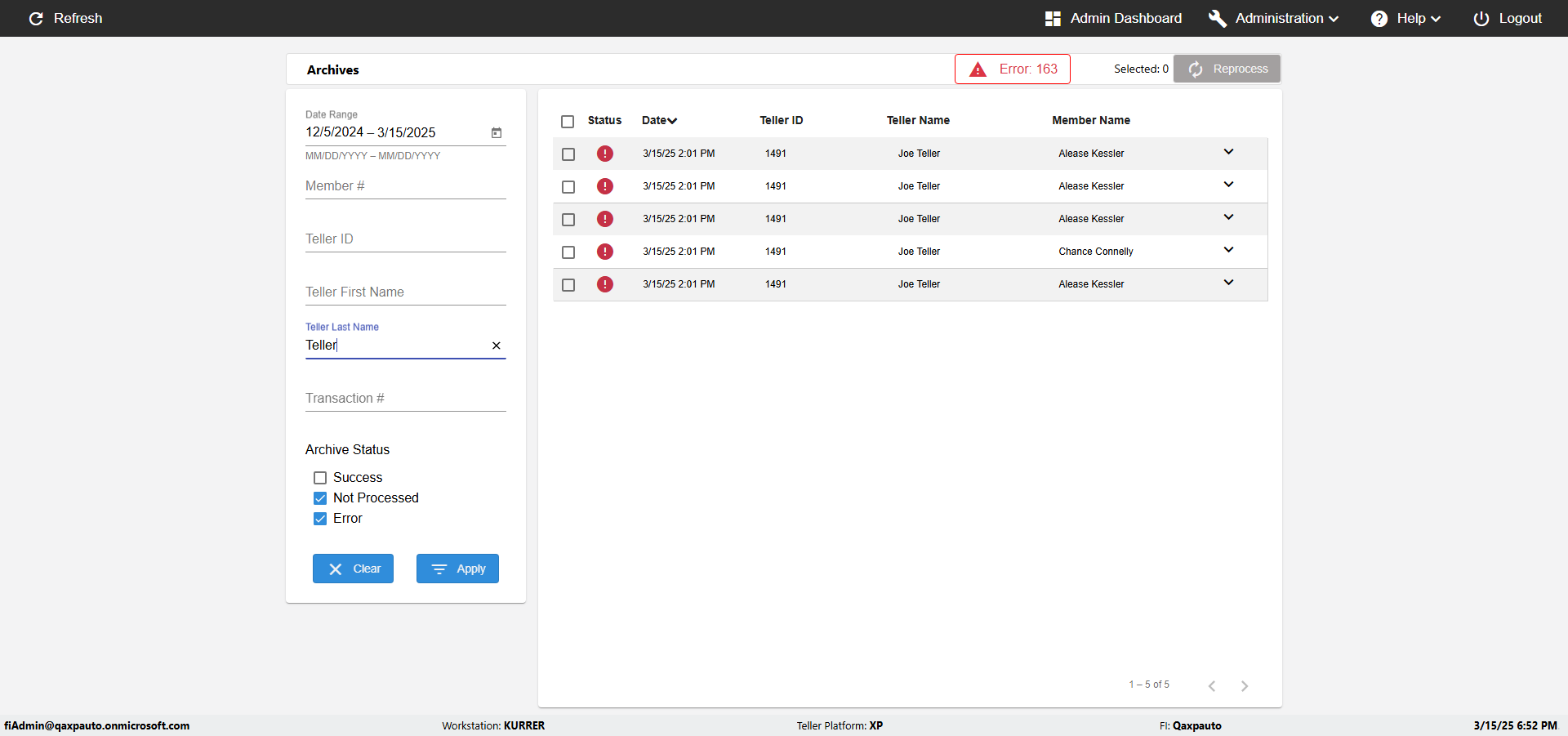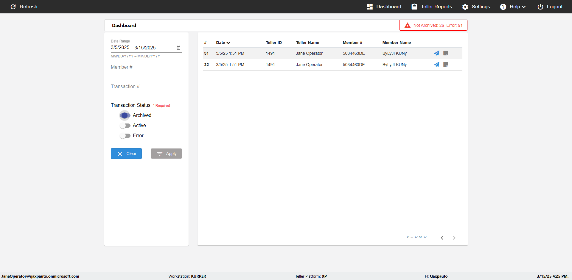 | {UserPwd=iMM2022!, Description=verify Error Messages in Report Page for Date, Teller ID=, errorMessage=Date cannot exceed 7 days after today.;Date cannot exceed 7 days after today., Teller Email=, View=, Date=12/28/2025 - 2/28/2026, Clear=, Workstation=, errorint=2, TestID=verifyErrorMessagesInReports, Transaction=, Header=, Username=ChrisSuperTeller@Qaxpauto.onmicrosoft.com, Export=, Member #=, Search Text=, Level=} |