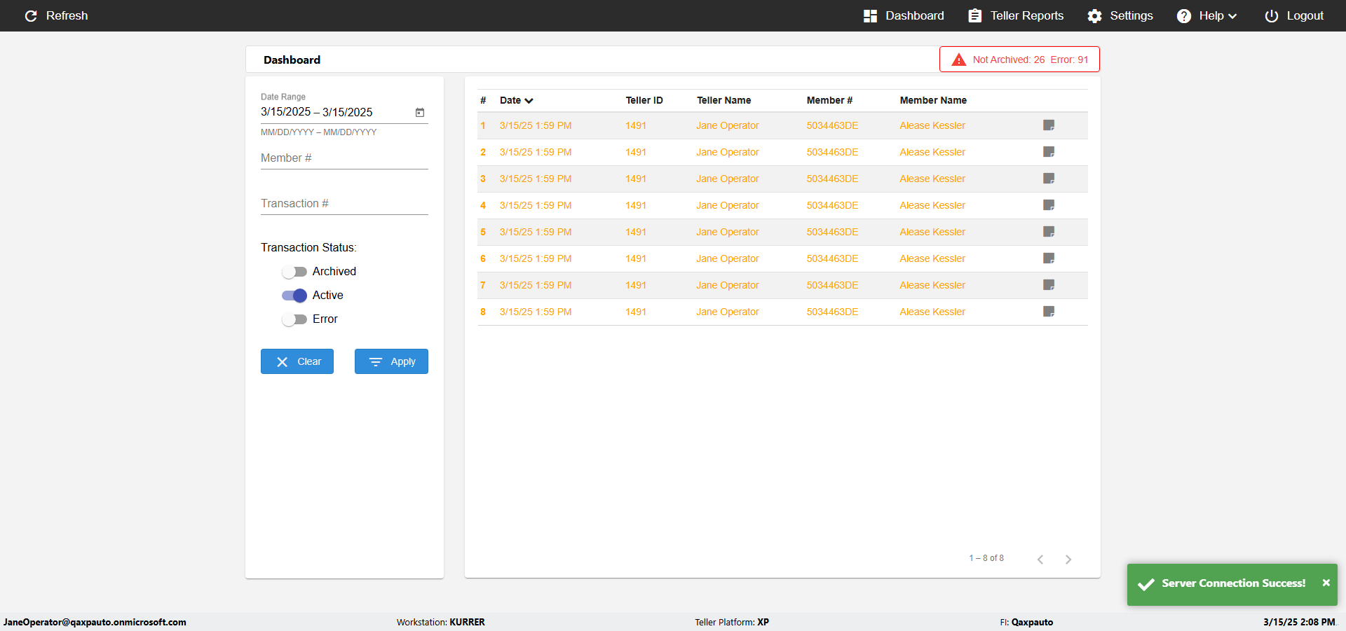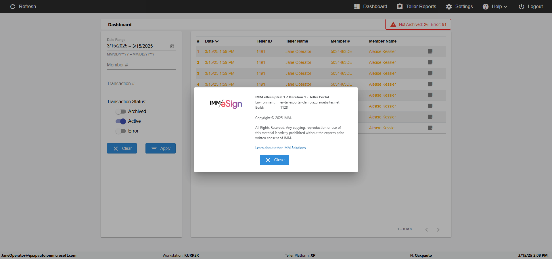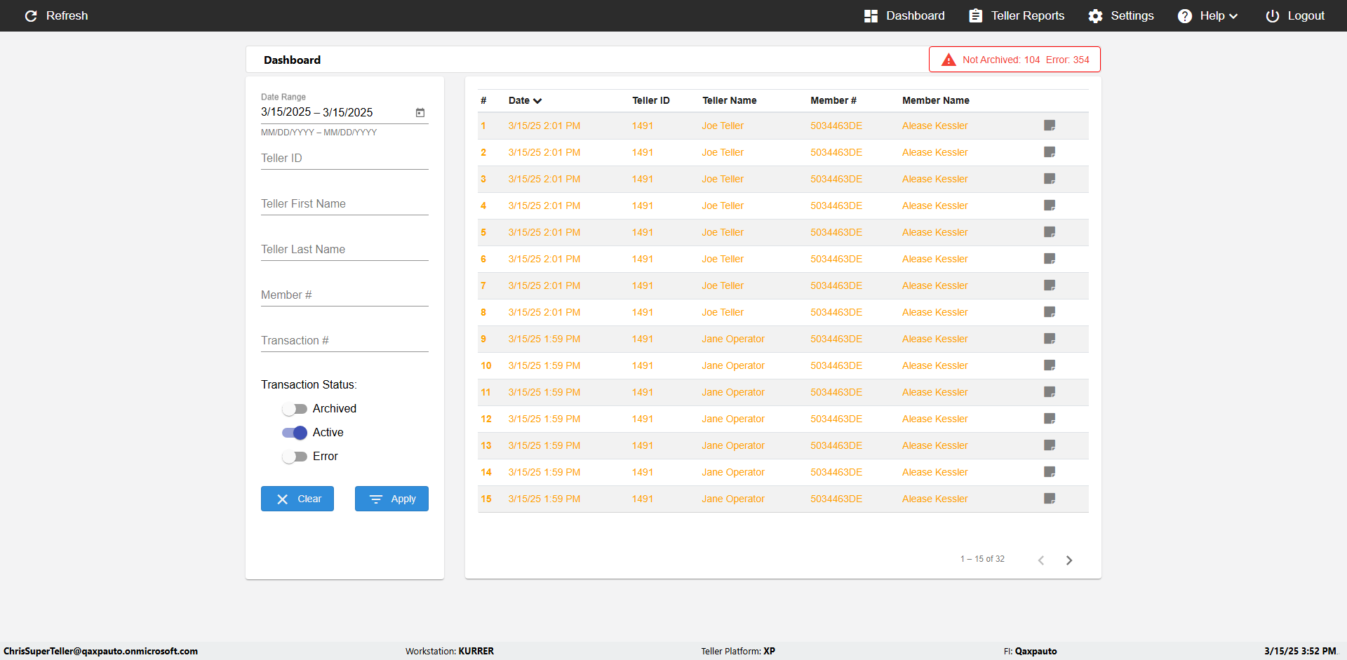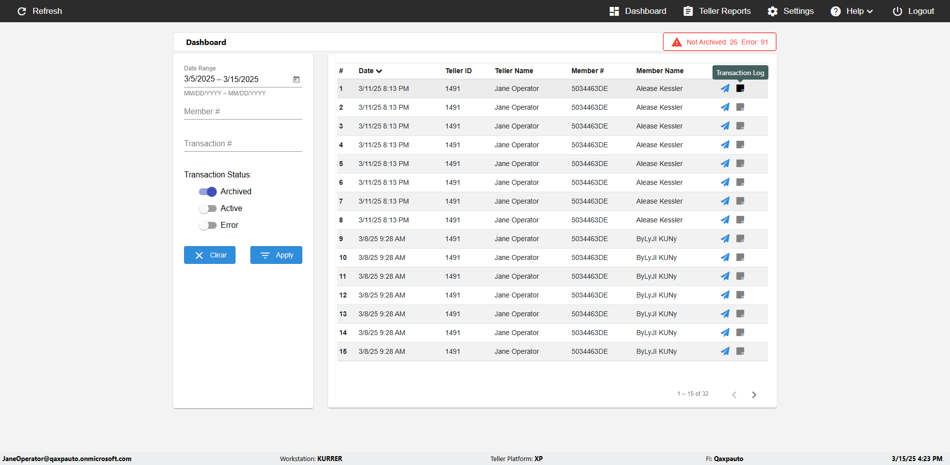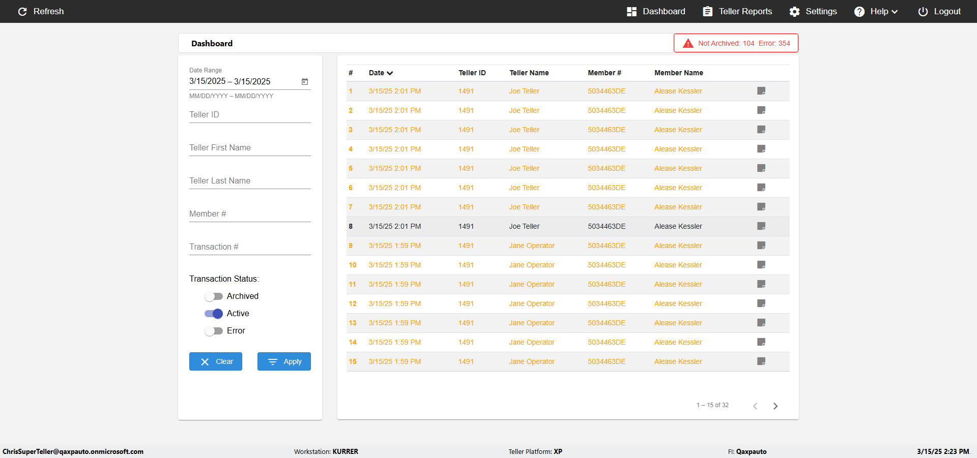 | {UserPwd=iMM2022!, Description=verify Error Messages in Report Page for Date, Teller ID=, errorMessage=Date cannot exceed 7 days after today.;Date cannot exceed 7 days after today., Teller Email=, View=, Date=12/28/2025 - 2/28/2026, Clear=, Workstation=, errorint=2, TestID=verifyErrorMessagesInReports, Transaction=, Header=, Username=ChrisSuperTeller@Qaxpauto.onmicrosoft.com, Export=, Member #=, Search Text=, Level=} |