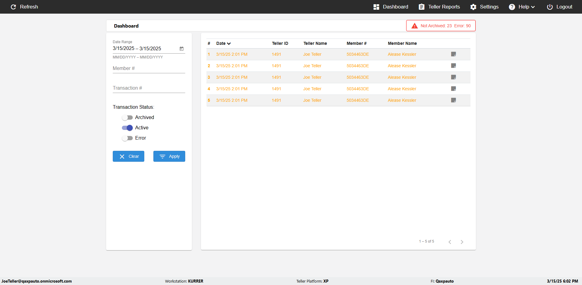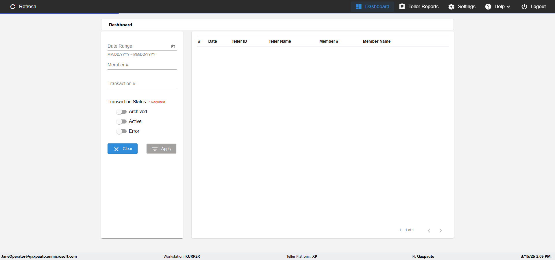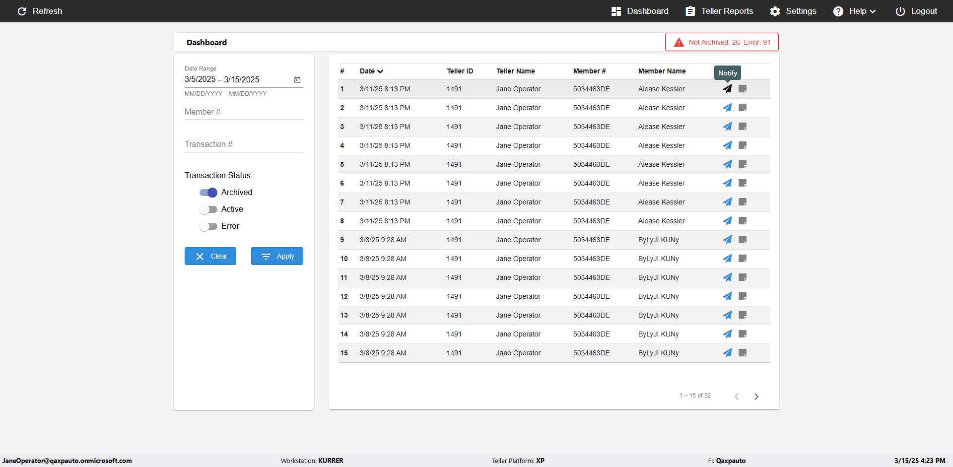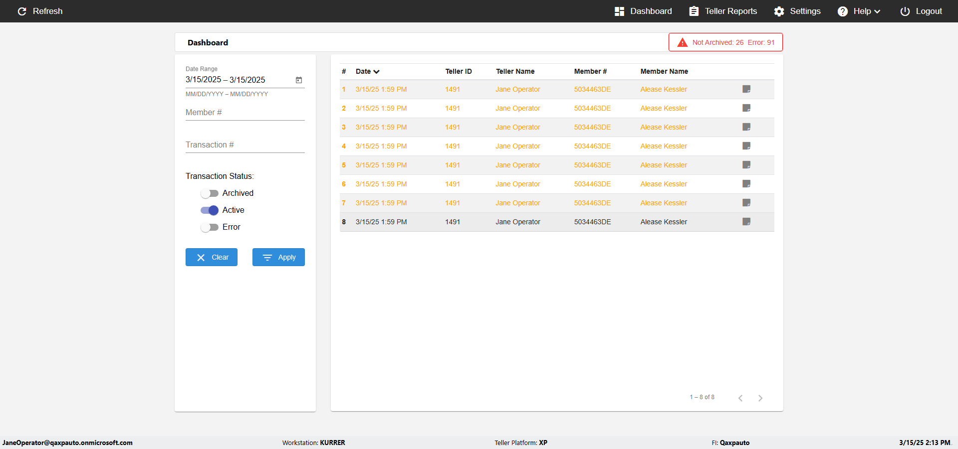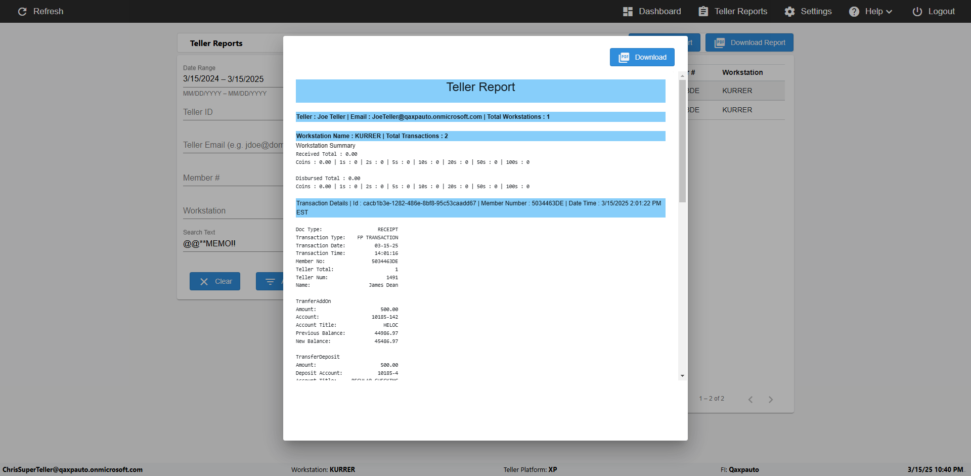 | {UserPwd=iMM2022!, Description=verify Error Messages in Report Page for Date, Teller ID=, errorMessage=Date cannot exceed 7 days after today.;Date cannot exceed 7 days after today., Teller Email=, View=, Date=12/28/2025 - 2/28/2026, Clear=, Workstation=, errorint=2, TestID=verifyErrorMessagesInReports, Transaction=, Header=, Username=ChrisSuperTeller@Qaxpauto.onmicrosoft.com, Export=, Member #=, Search Text=, Level=} |
