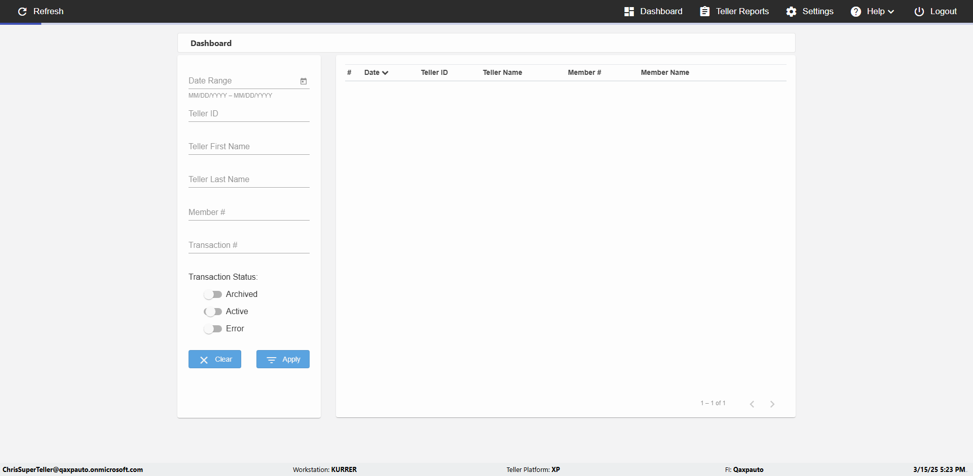 | {UserPwd=iMM2022!, Description=verify Search Elements In Report Page with Date and Member#, Teller ID=, errorMessage=, Teller Email=, View=, Date=2, Clear=, Workstation=, errorint=, TestID=verifySearchInReports, Transaction=, Header=, Username=ChrisSuperTeller@Qaxpauto.onmicrosoft.com, Export=yes, Member #=63, Search Text=, Level=} |