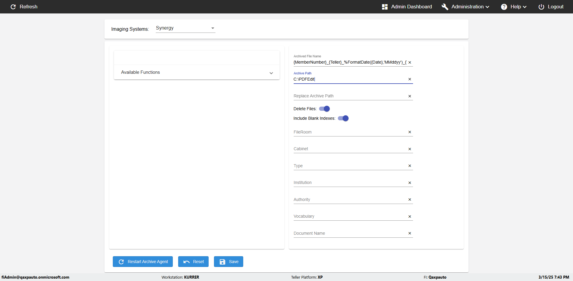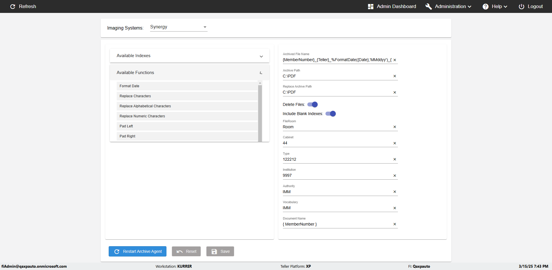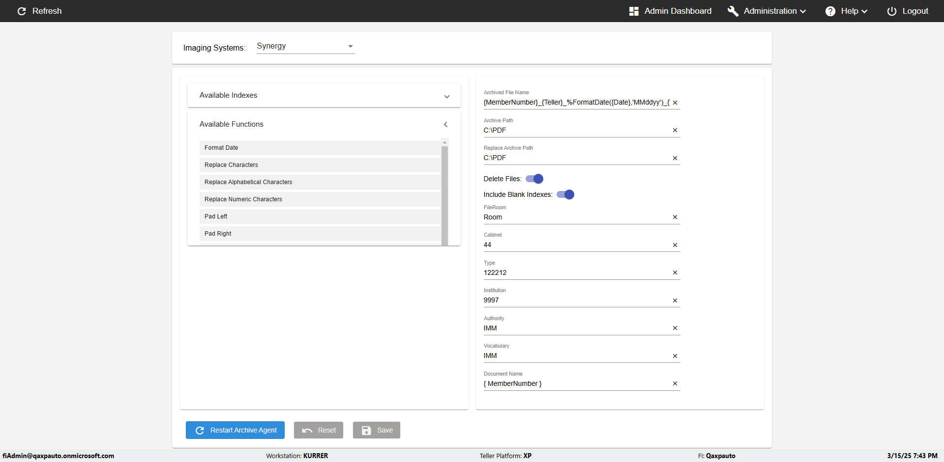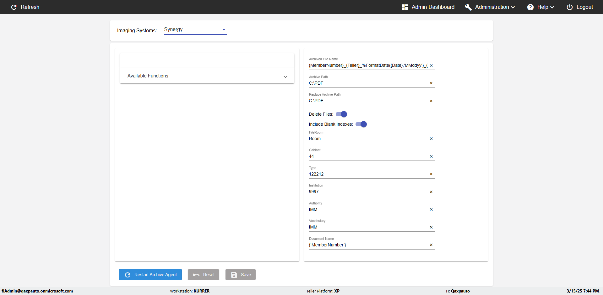 | {Archived Transactions=, Archive=, print signatur=, Name=, MultipleWorkstation=, WorkstationDeleteOption=, BranchName=, Agent=, UserPwd=iMM2022!, BranchDeleteOption=, Receipt=, Role=, Brand=, Print signature line=, TimeZone=, Header=, MappedOption=, Scan=, PortNumber=, FromWks=, FromBranch=, Description=verify the Member import Schedule PAge Defaults, weeks=, Operation=, Clear=, TestID=verifyMemberImportSchedulePageDefaults_ER2257, Phone=, WorkstationName=, ToBranch=, ToWks=, Subscription Names=, FilePath=src/main/resources/testdata/data/DashBoard.csv, Transtatus=Archived-false;Active-true;Error-false, Report=, Index_Field_Name=, Agents=, Text=, Hold Notice=, Suppress=, SchedualType=Daily,, Date=, Platfrom=, GroupId=, print Disburstments=, SMTP=, Imaging System=, MultipleBranches=, Username=fiAdmin@Qaxpauto.onmicrosoft.com, Sign=} |