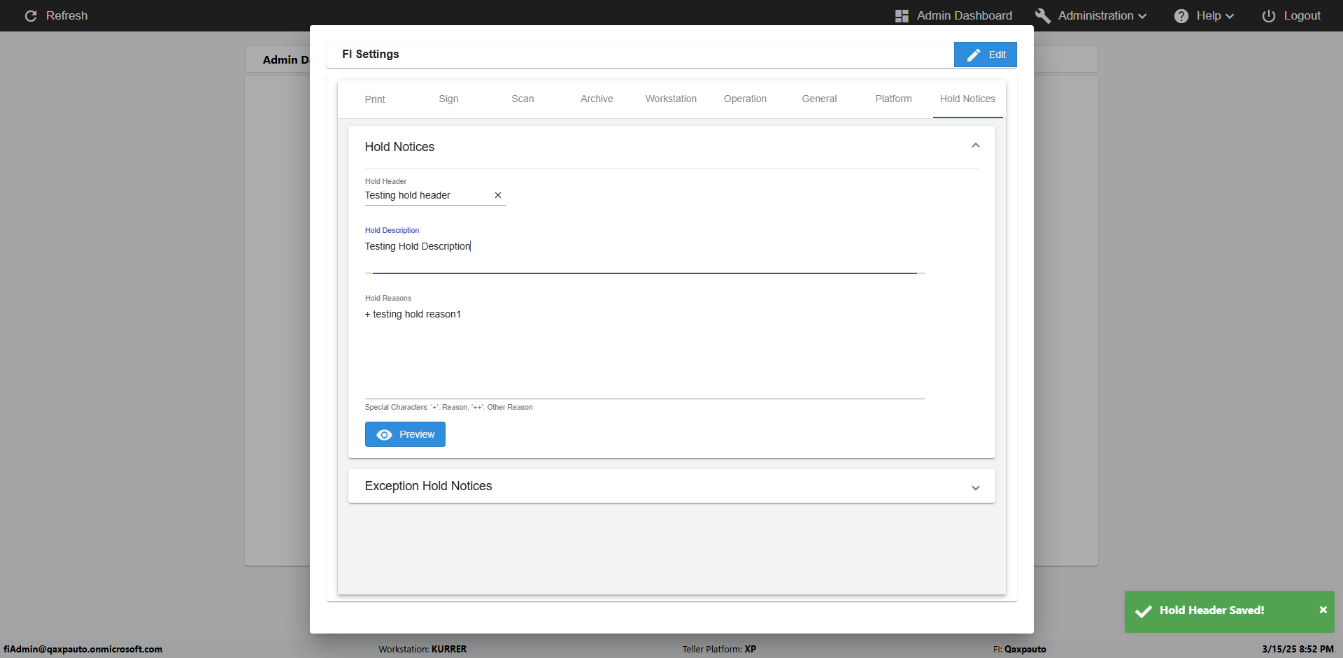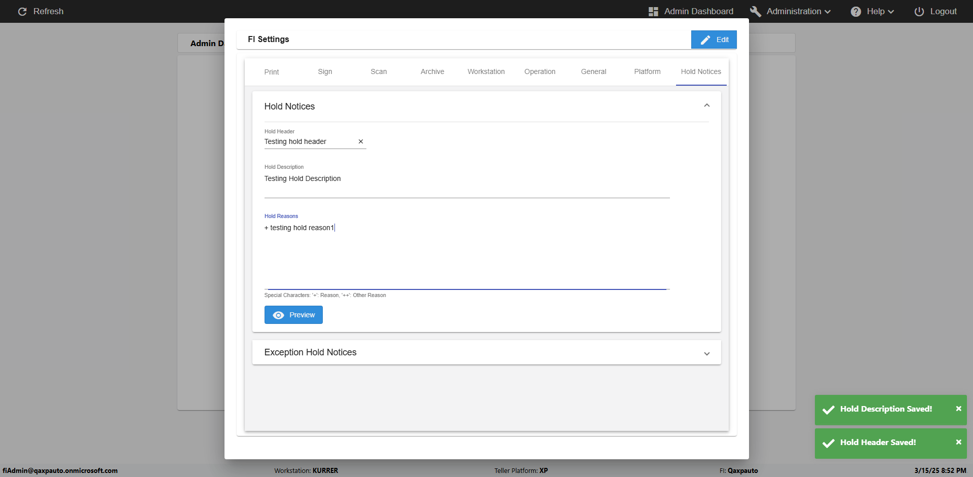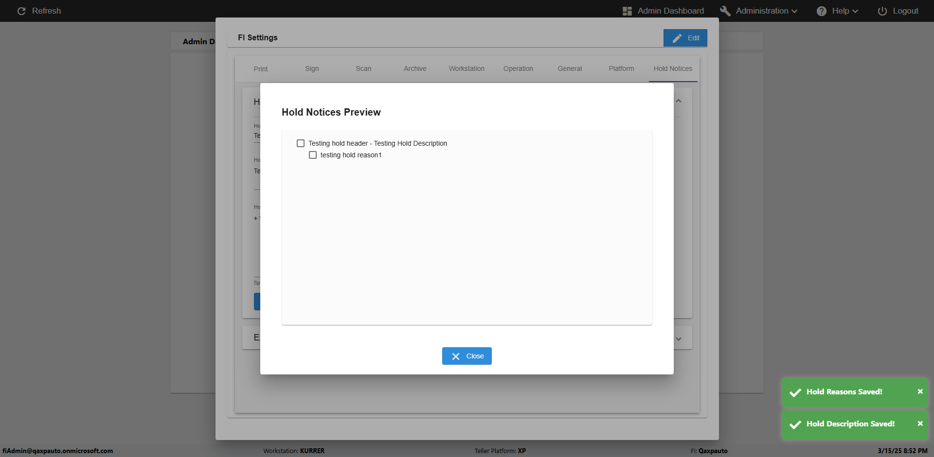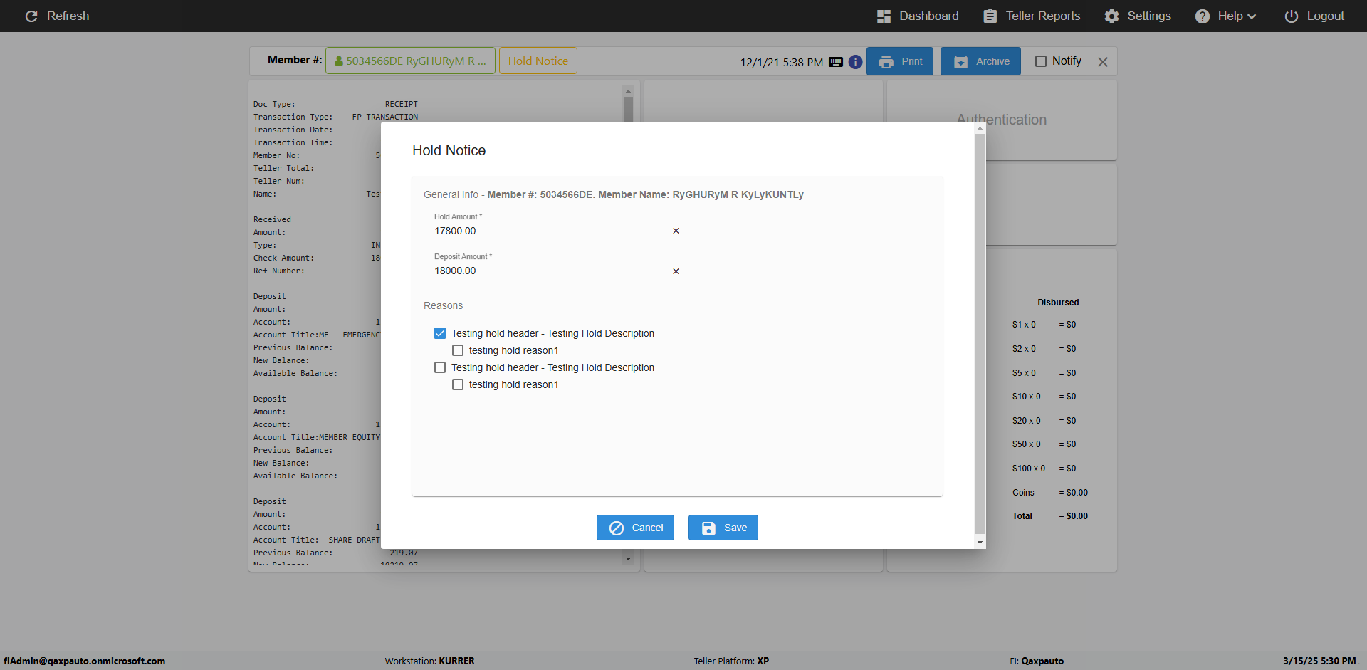 | {Toggel=, Archived Transactions=no, Description=verify Hold Notic Tab In Ereceipt Page, Email=, Archive=, Document Type=, Notify=, SignatureTab=, DisbursedExpression=, Operation=, Teller LastName=, Disbursed cash=, errorint=, TestID=verifyHoldNoticTabInEreceipt, Print=, DisbursedExpressionValue=, Phone=, ReceivedCashValue=, Member=5034566, UserPwd=iMM2022!, Transtatus=Archived-false;Active-true;Error-false, Docment ID=, Teller=1881881, Teller FirstName=, errorMessage=, ReceivedExpressionValue=, Date=, Platfrom=Enable Hold Notice-true;, Received cash=, Transaction=, Header=, Expression=, Username=fiAdmin@Qaxpauto.onmicrosoft.com, DisbursedCashValue=, FullName=, ReceivedExpression=, SMS=, Memo=} |