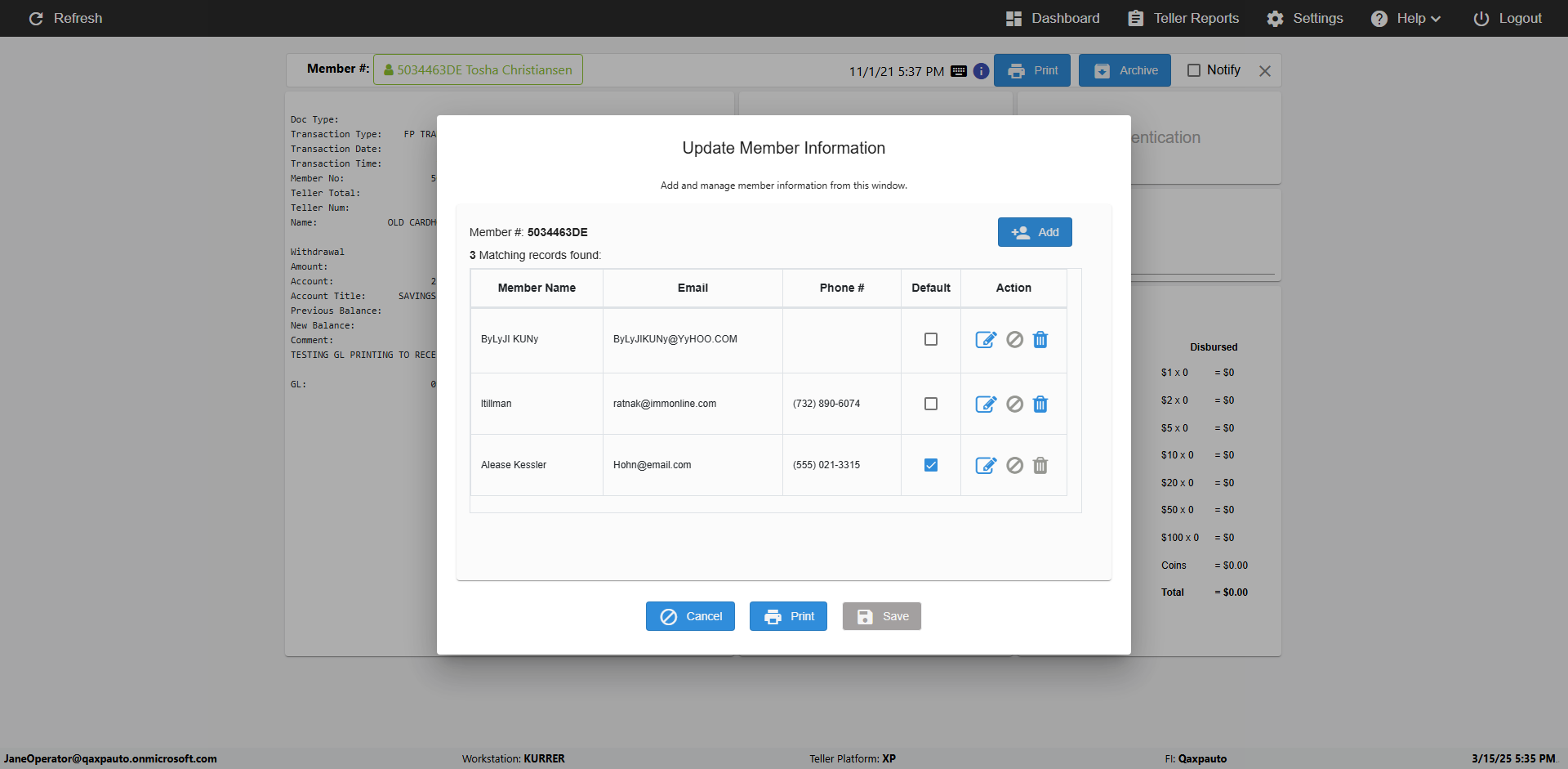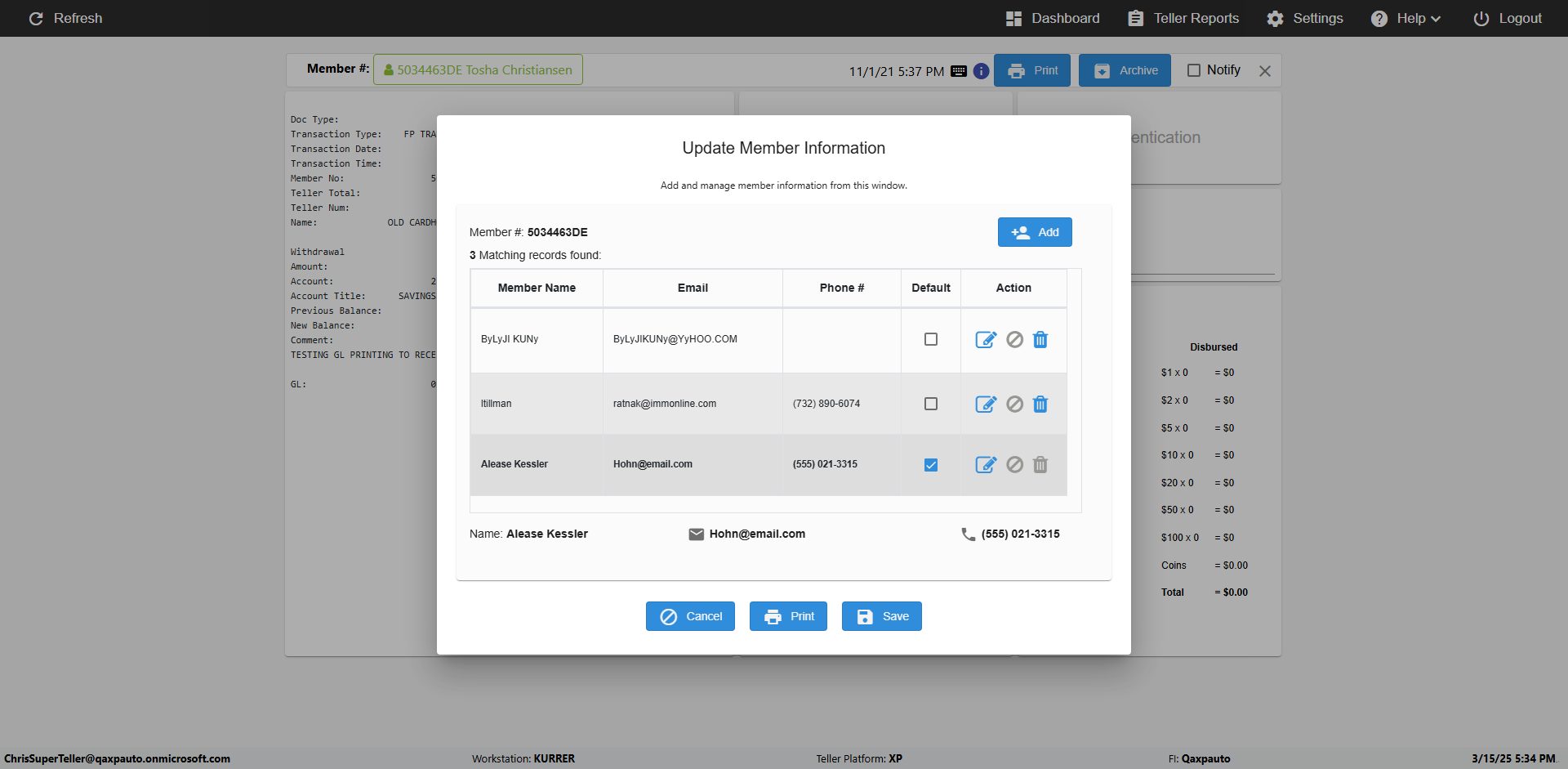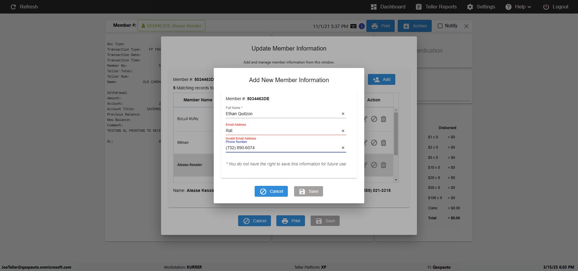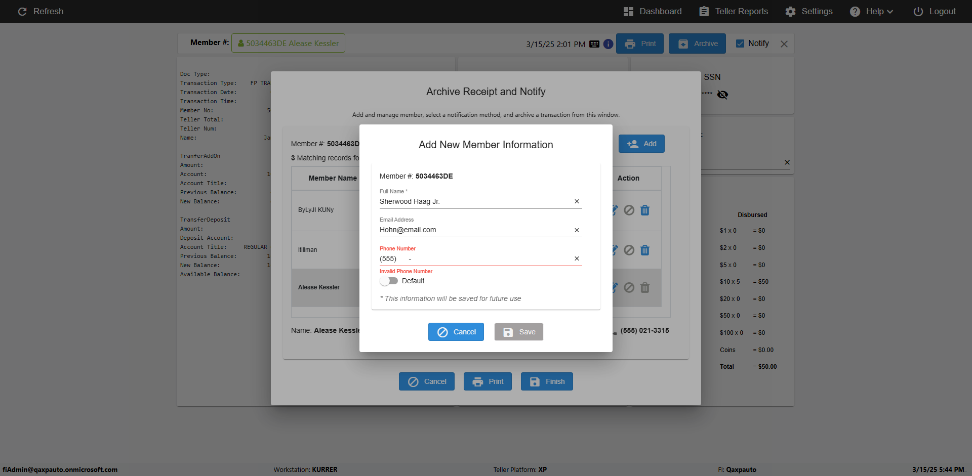 | {Toggel=TRUE, Archived Transactions=no, Description=verify Normal MemberID And Archive Information Update (Use Normal only), Email=Ratnak@immonline.com, Archive=, Document Type=, Notify=, SignatureTab=, DisbursedExpression=, Operation=, Teller LastName=, Disbursed cash=, errorint=, TestID=verifyNormalMemberAddUpdateContactInfo, Print=, DisbursedExpressionValue=, Phone=(732) 890-6074, ReceivedCashValue=, Member=5034463, UserPwd=iMM2022!, Transtatus=Archived-false;Active-true;Error-false, Docment ID=, Teller=, Teller FirstName=, errorMessage=, ReceivedExpressionValue=, Date=11/01/2021 - 11/20/2021, Platfrom=, Received cash=, Transaction=, Header=, Expression=, Username=JoeTeller@Qaxpauto.onmicrosoft.com, DisbursedCashValue=, FullName=Johna, ReceivedExpression=, SMS=, Memo=} |