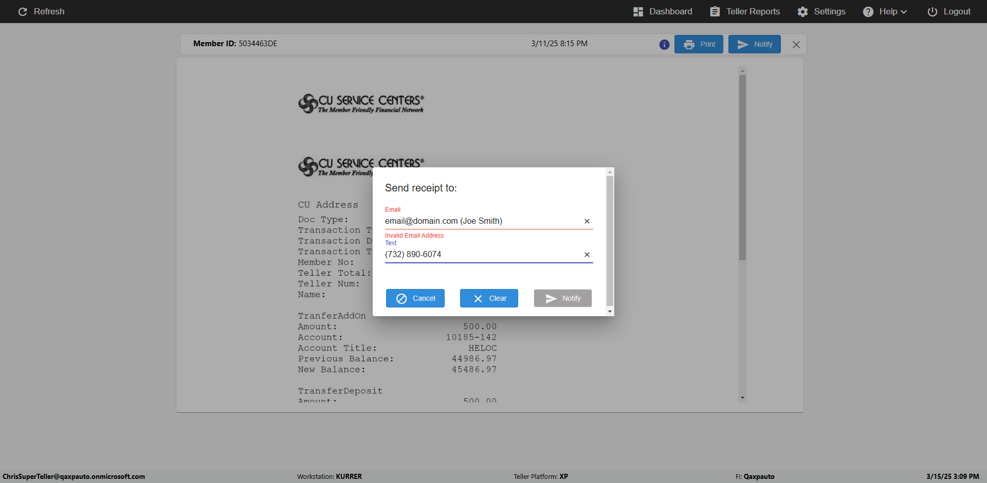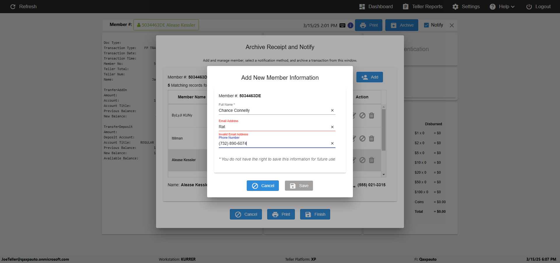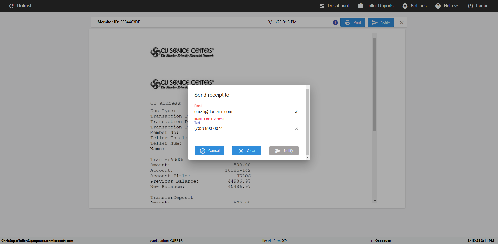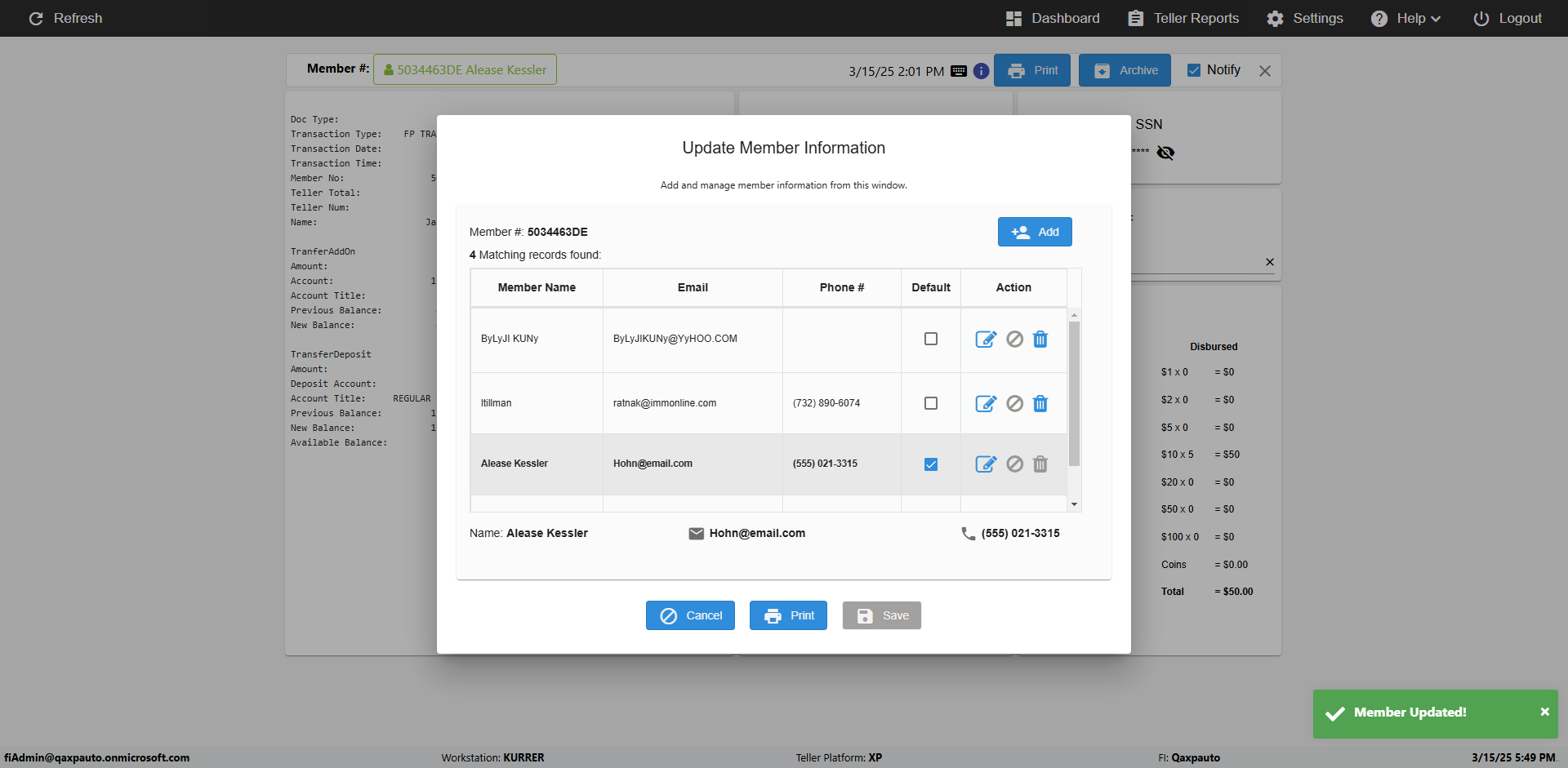 | {Toggel=TRUE, Archived Transactions=no, Description=verify Normal MemberID And Archive Information Update (Use Normal only), Email=Ratnak@immonline.com, Archive=, Document Type=, Notify=, SignatureTab=, DisbursedExpression=, Operation=, Teller LastName=, Disbursed cash=, errorint=, TestID=verifyNormalMemberAddUpdateContactInfo, Print=, DisbursedExpressionValue=, Phone=(732) 890-6074, ReceivedCashValue=, Member=5034463, UserPwd=iMM2022!, Transtatus=Archived-false;Active-true;Error-false, Docment ID=, Teller=, Teller FirstName=, errorMessage=, ReceivedExpressionValue=, Date=11/01/2021 - 11/20/2021, Platfrom=, Received cash=, Transaction=, Header=, Expression=, Username=JoeTeller@Qaxpauto.onmicrosoft.com, DisbursedCashValue=, FullName=Johna, ReceivedExpression=, SMS=, Memo=} |
