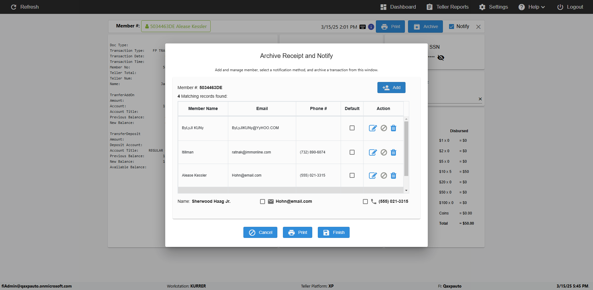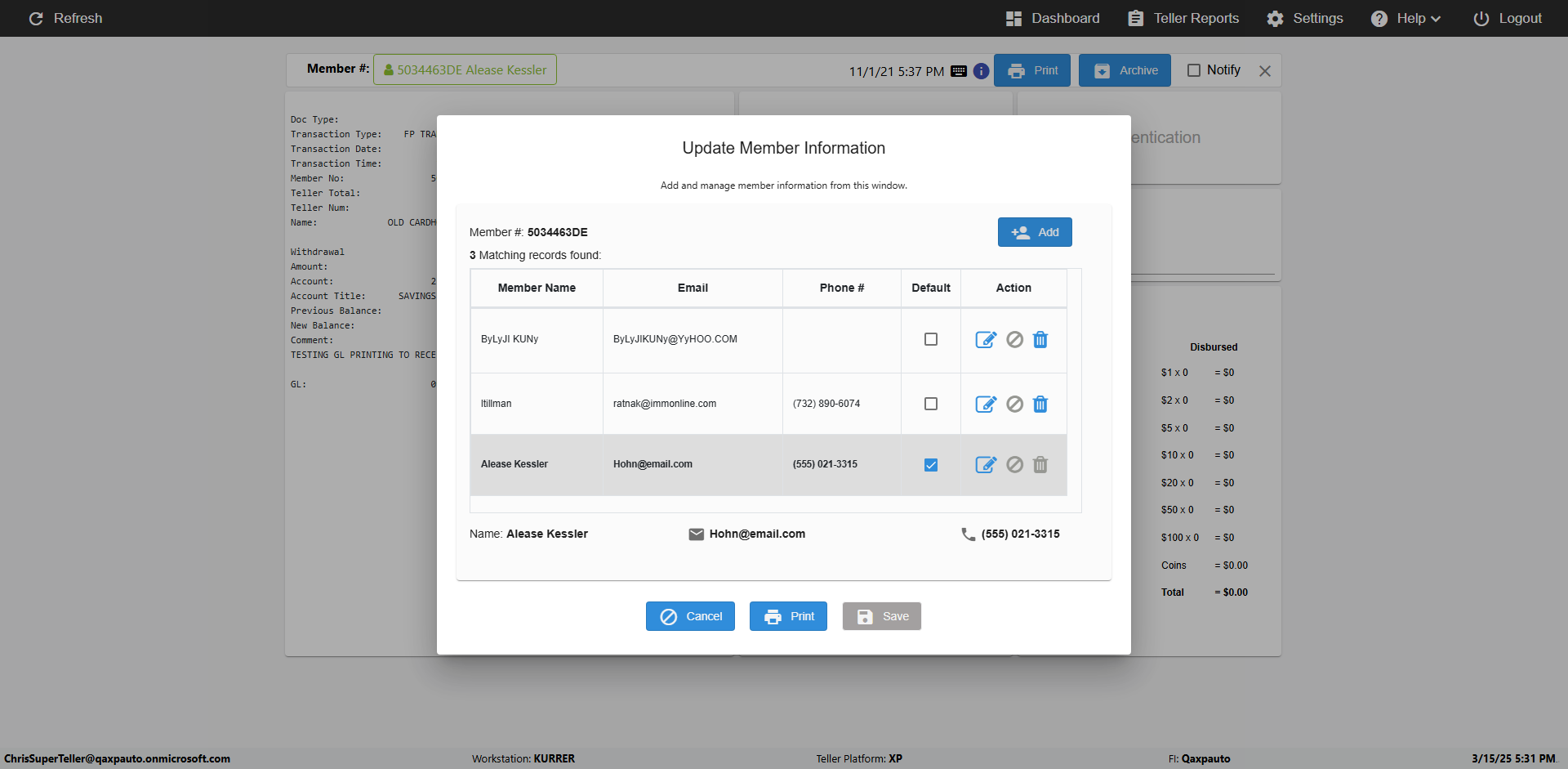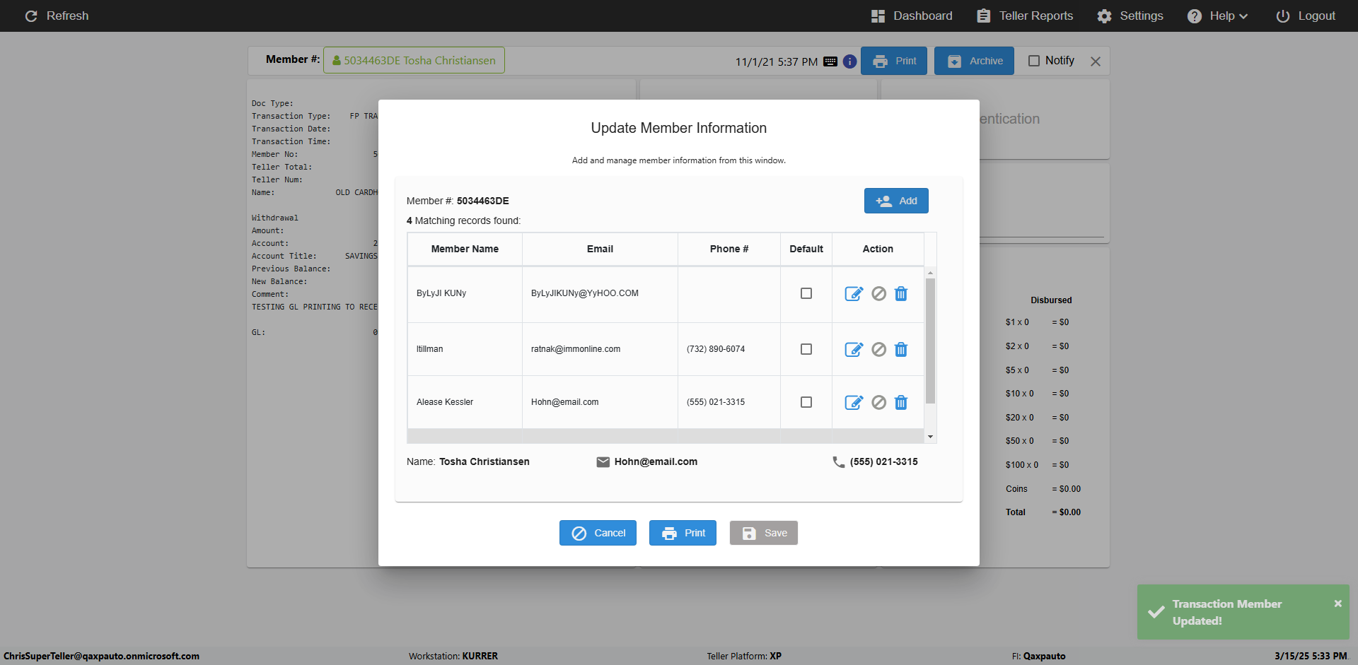 | {Toggel=TRUE, Archived Transactions=no, Description=verify MemberID And Archive Information Update, Email=Hohn@email.com, Archive=, Document Type=, Notify=, SignatureTab=, DisbursedExpression=, Operation=, Teller LastName=, Disbursed cash=, errorint=, TestID=verifyMemberAddUpdateContactInfo, Print=, DisbursedExpressionValue=, Phone=(555) 021-3315, ReceivedCashValue=, Member=5034463, UserPwd=iMM2022!, Transtatus=Archived-false;Active-true;Error-false, Docment ID=, Teller=, Teller FirstName=, errorMessage=, ReceivedExpressionValue=, Date=11/01/2021 - 11/20/2021, Platfrom=, Received cash=, Transaction=, Header=, Expression=, Username=ChrisSuperTeller@Qaxpauto.onmicrosoft.com, DisbursedCashValue=, FullName=John, ReceivedExpression=, SMS=, Memo=} |