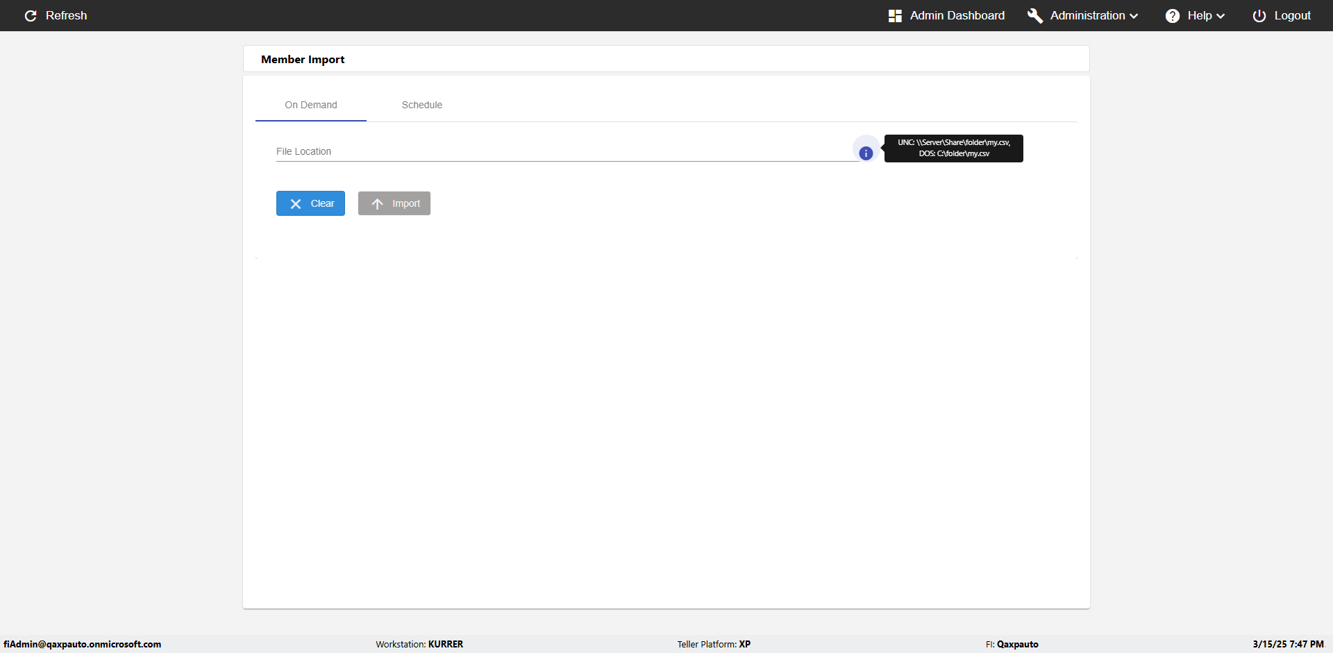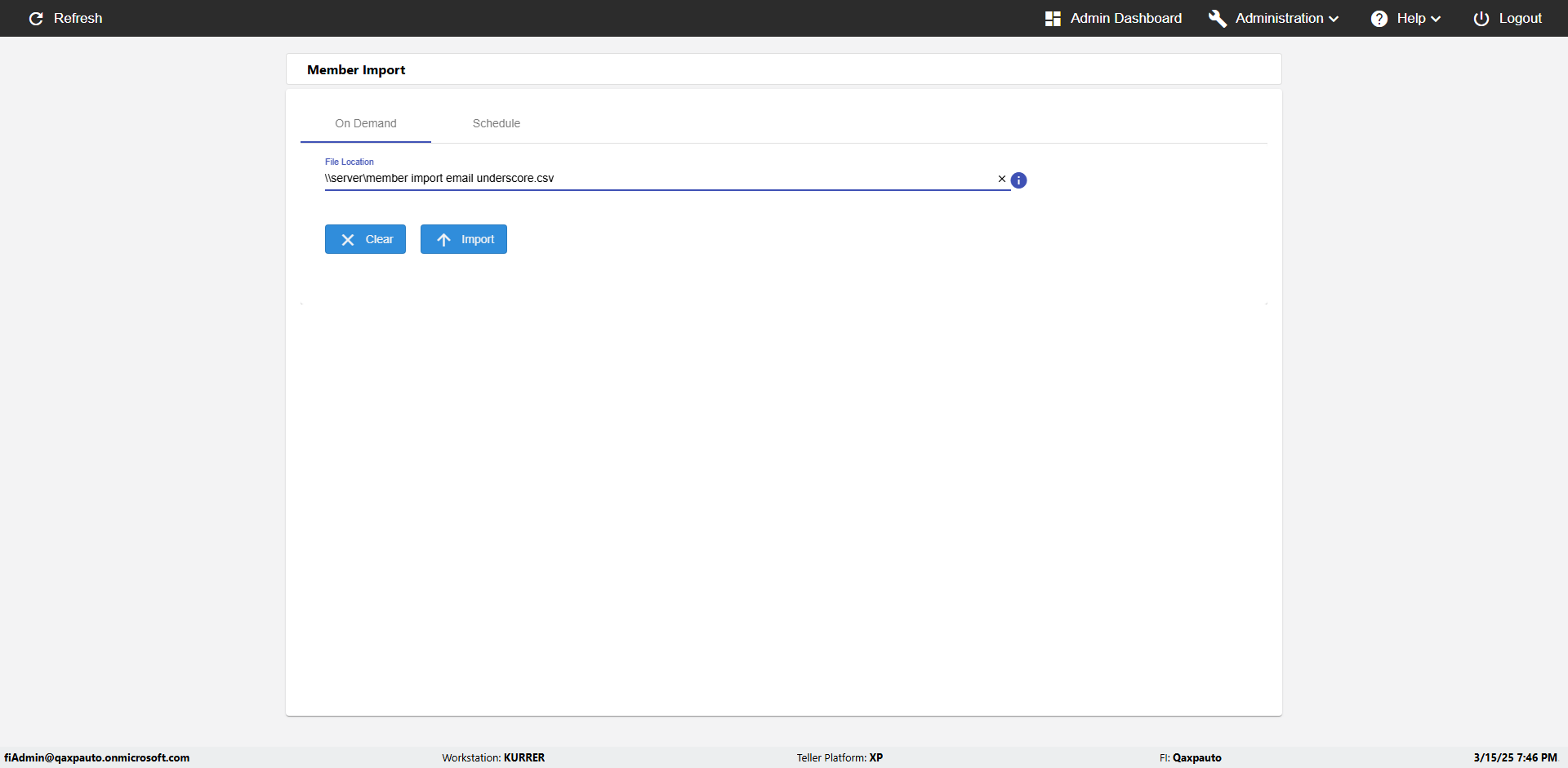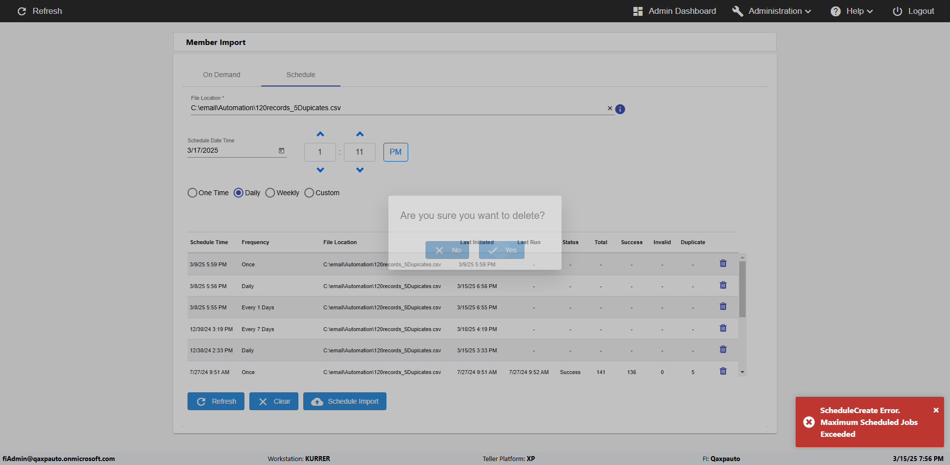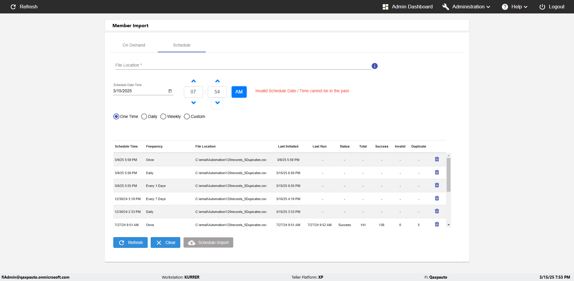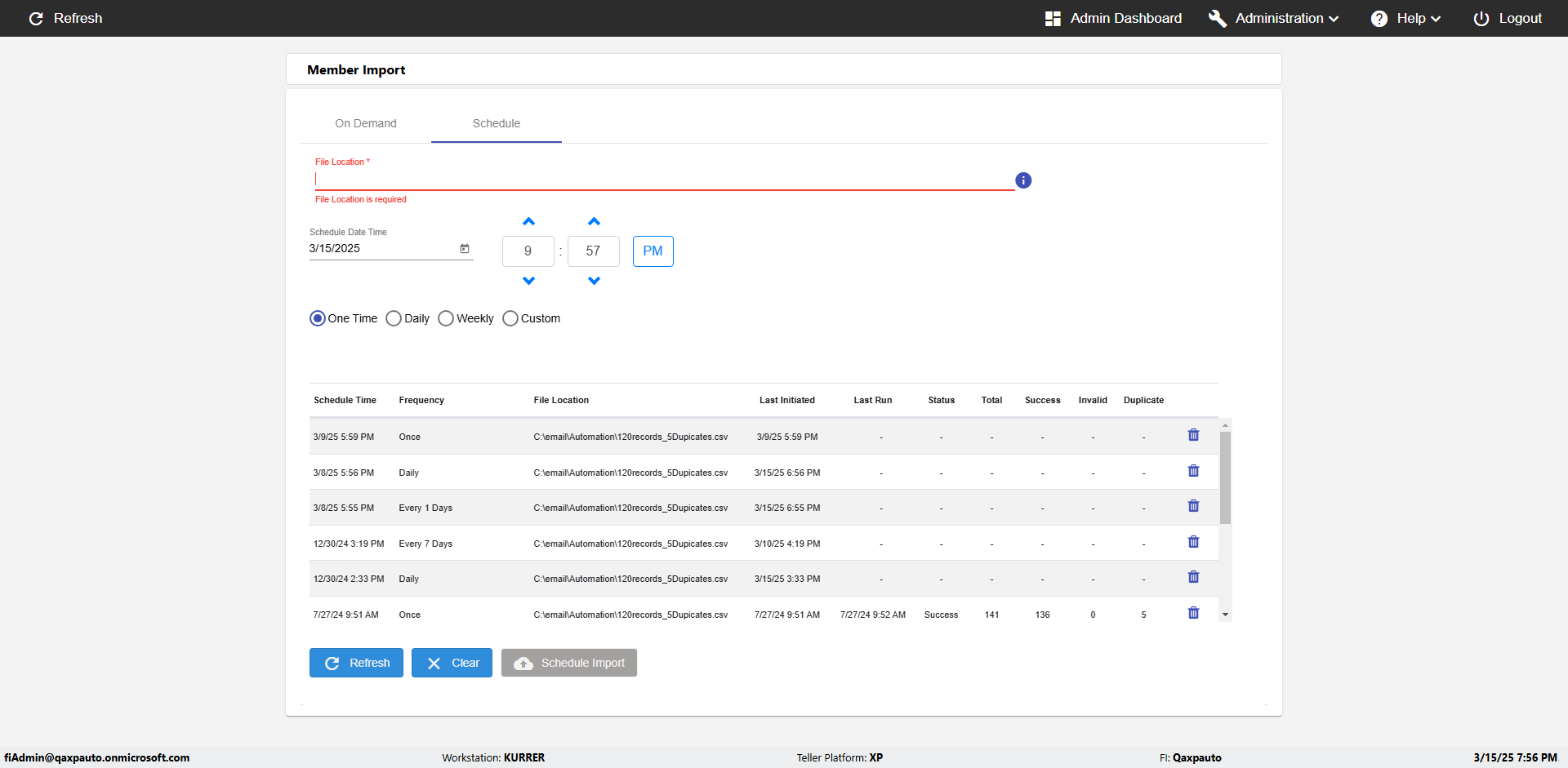 | {Archived Transactions=, Archive=, print signatur=, Name=, MultipleWorkstation=, WorkstationDeleteOption=, BranchName=, Agent=, UserPwd=iMM2022!, BranchDeleteOption=, Receipt=, Role=, Brand=, Print signature line=, TimeZone=, Header=, MappedOption=, Scan=, PortNumber=, FromWks=, FromBranch=, Description=verify Member Import 'Schedule' Page, weeks=, Operation=, Clear=, TestID=verifyMemberImportSchedulePage, Phone=, WorkstationName=, ToBranch=, ToWks=, Subscription Names=, FilePath=C:\email\Automation\120records_5Dupicates.csv, Transtatus=Archived-false;Active-true;Error-false, Report=, Index_Field_Name=, Agents=, Text=, Hold Notice=, Suppress=, SchedualType=Daily,, Date=, Platfrom=, GroupId=, print Disburstments=, SMTP=, Imaging System=, MultipleBranches=, Username=fiAdmin@Qaxpauto.onmicrosoft.com, Sign=} |