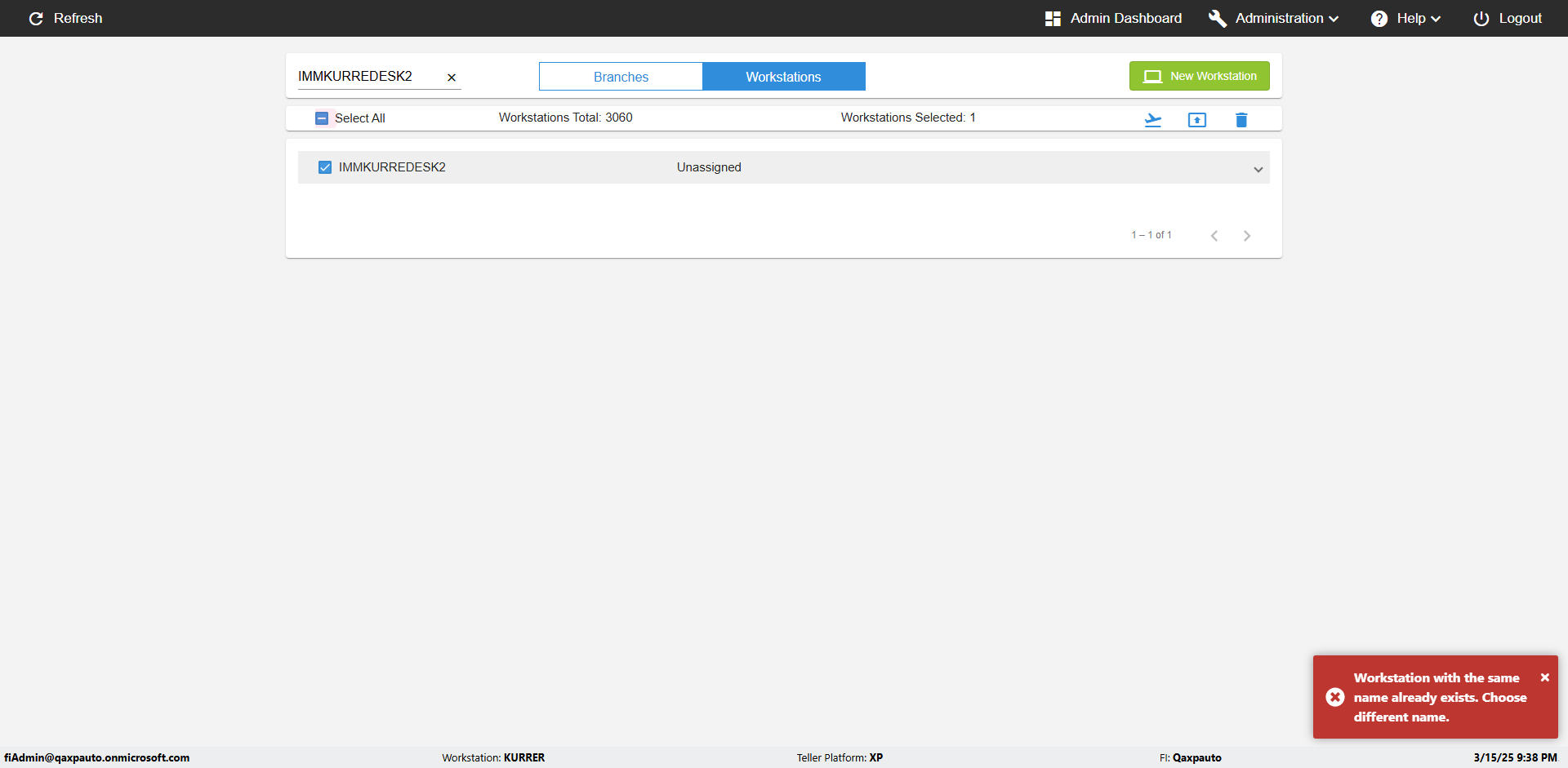 | {UserPwd=iMM2022!, Description=verify Error Messages in Report Page for Workstation Length, Teller ID=, errorMessage=Must be at least 4 characters long, Teller Email=, View=, Date=10, Clear=, Workstation=abc, errorint=1, TestID=verifyErrorMessagesInReports, Transaction=, Header=, Username=ChrisSuperTeller@Qaxpauto.onmicrosoft.com, Export=, Member #=, Search Text=, Level=} |