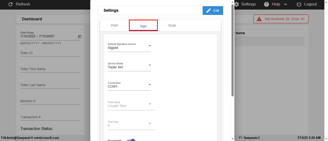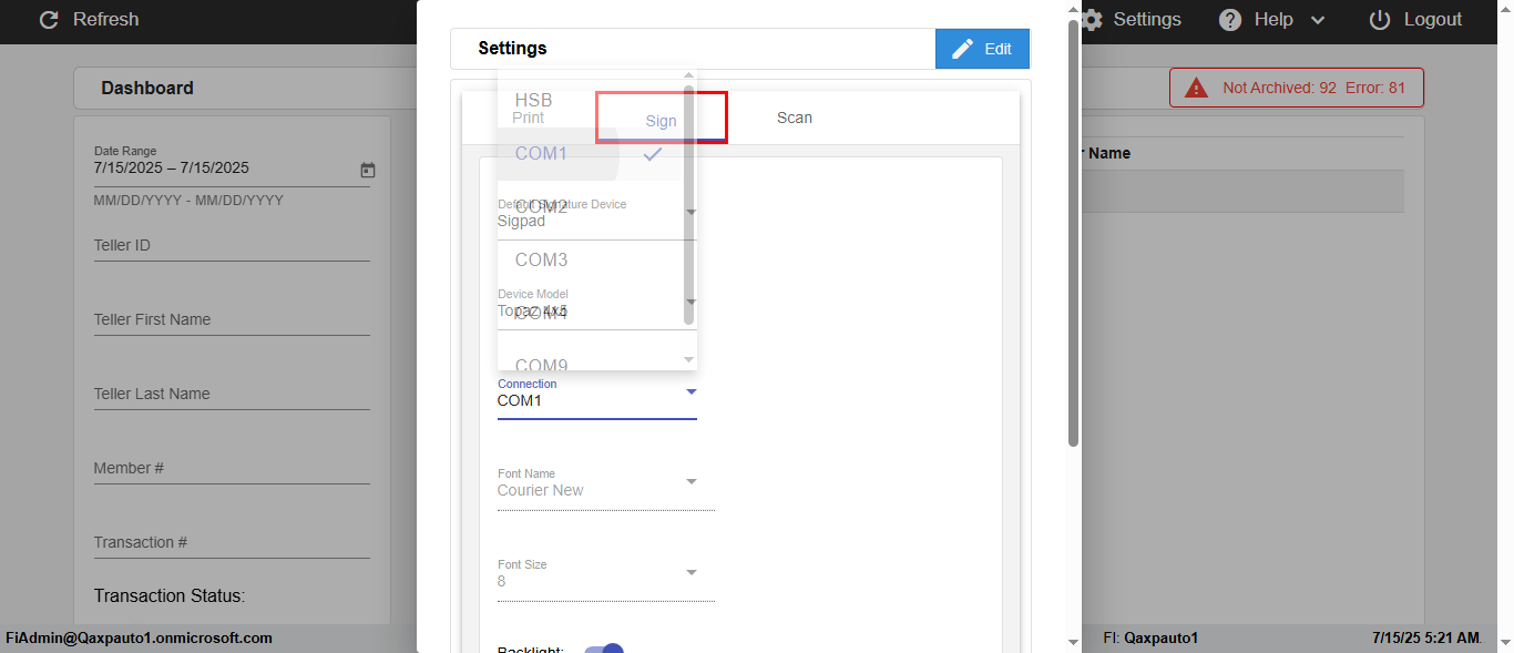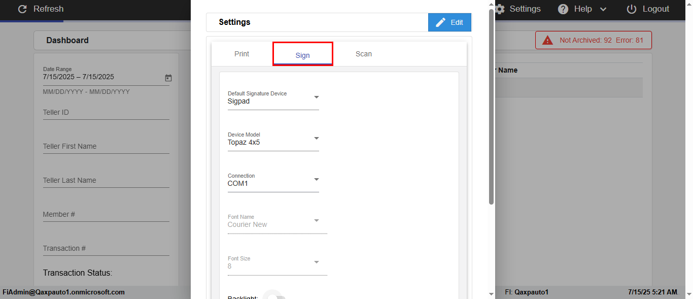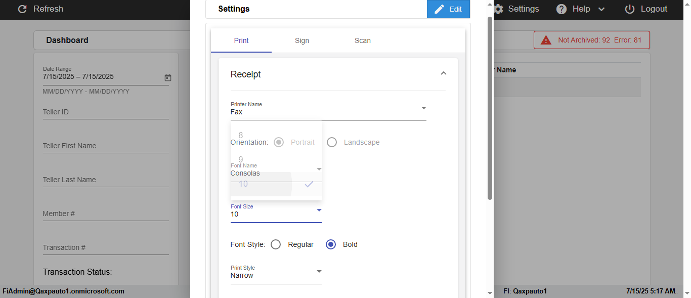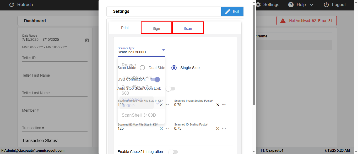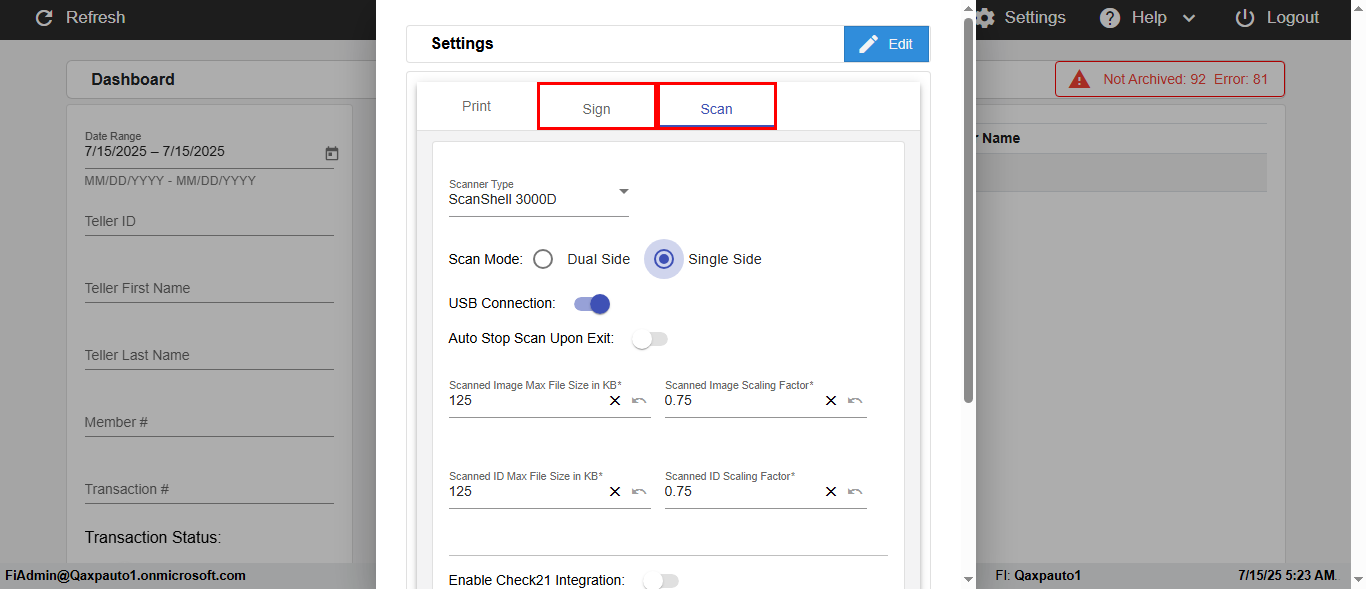 ({Description=verify Settings page In Teller Portal, Email=, Teller LastName=, print signatur=TRUE, errorint=, TestID=verifySettingsInTellerPage, Color Transactions=, Member=, UserPwd=iMM2022!, Transtatus=, Receipt=Printer Name-Fax;Name-Consolas;Size-10;Style-Bold,Narrow, Report=Printer Name-Fax;Orientation-Landscape;Name-Consolas;Size-10;Style-Bold, Teller=, Teller FirstName=, errorMessage=, Suppress=Log1-false;Log2-false;CuAddress-false;Member Address-false, Date=, print Disburstments=FALSE, Print signature line=print the sign, Type=, Transaction=, Header=, Username=fiAdmin@Qaxpauto1.onmicrosoft.com, SMS=, Sign=Default Signature Device-Sigpad;Device Model-Topaz 4x5;Connection-COM1;Backlight-true, Scan=Scanner Type-ScanShell 3000D;Image Mode-Singleside;USB Connection-false})