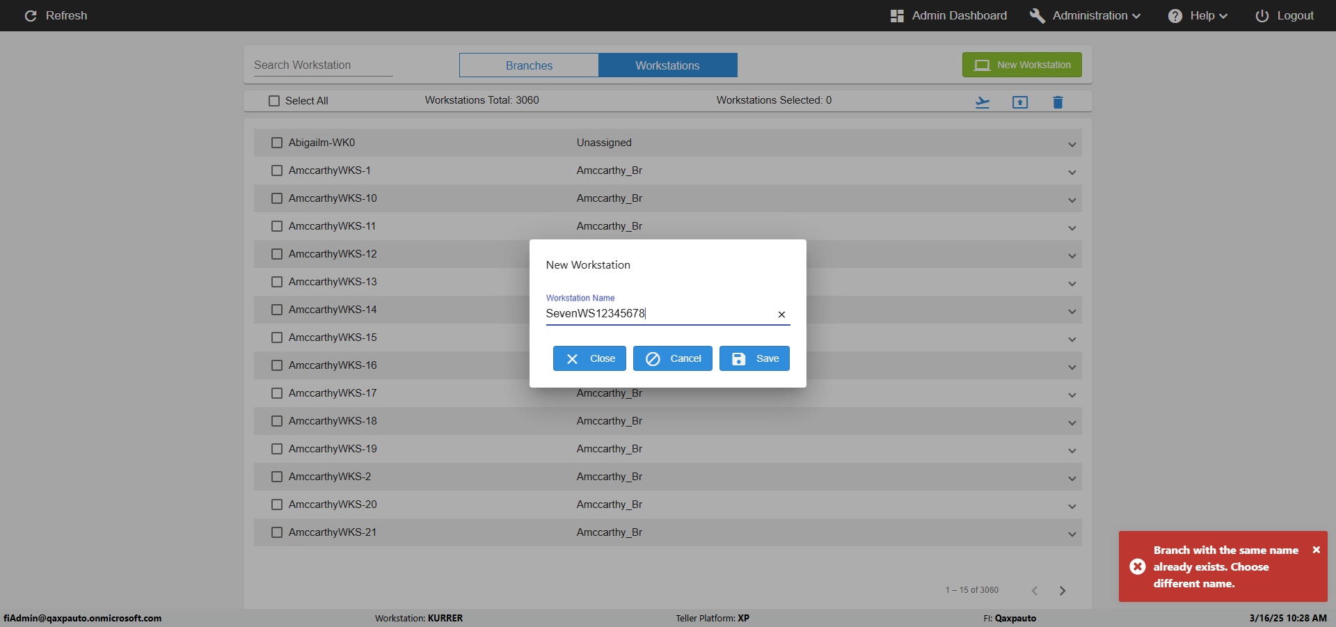 Actual(Failed): Failed to verify the Invalid name in Newly created Workstation Page[ScreenShot]