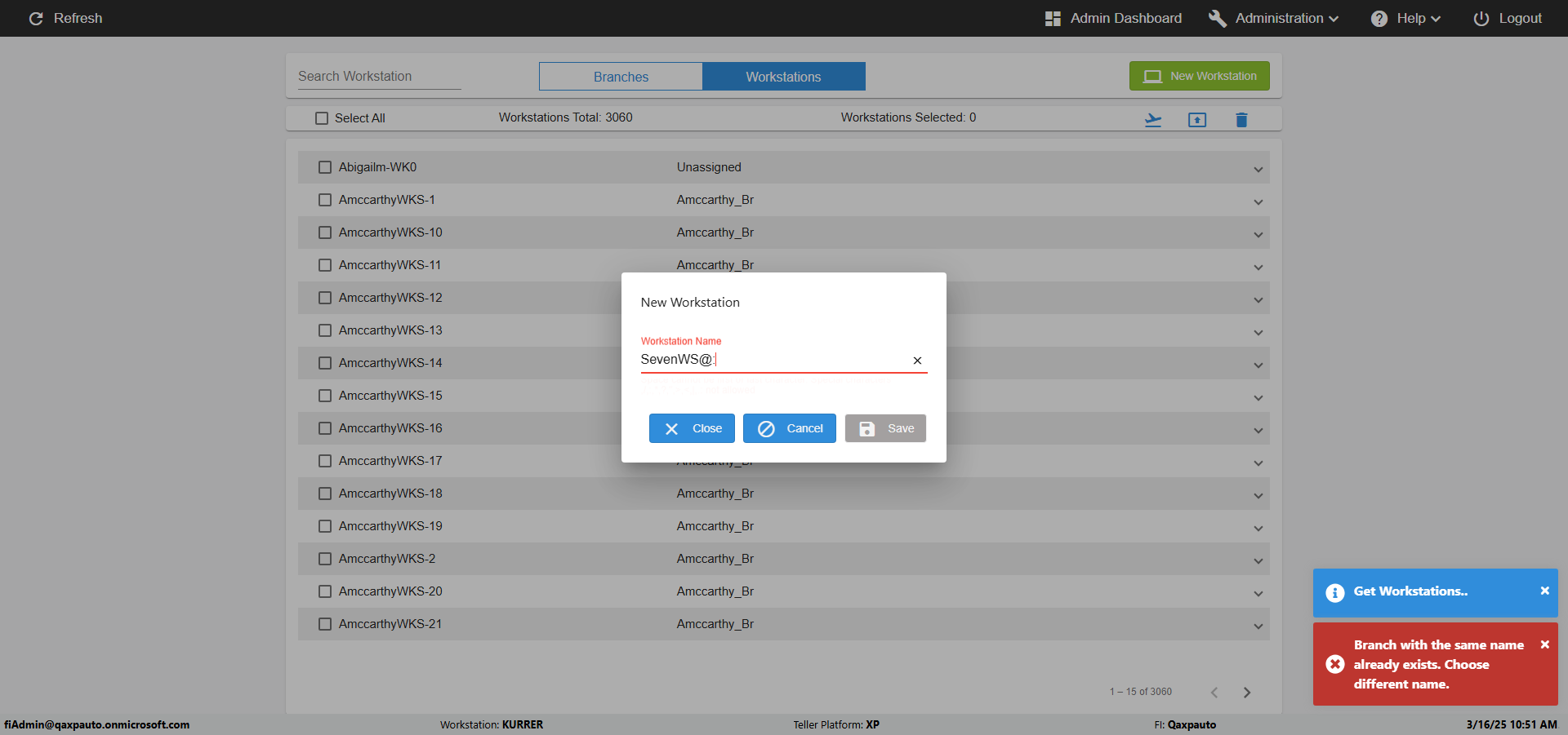 | 10:52:00 AM | Expected: verify the Invalid name in Newly created Workstation Page Actual(Failed): Failed to verify the Invalid name in Newly created Workstation Page [ScreenShot] |
