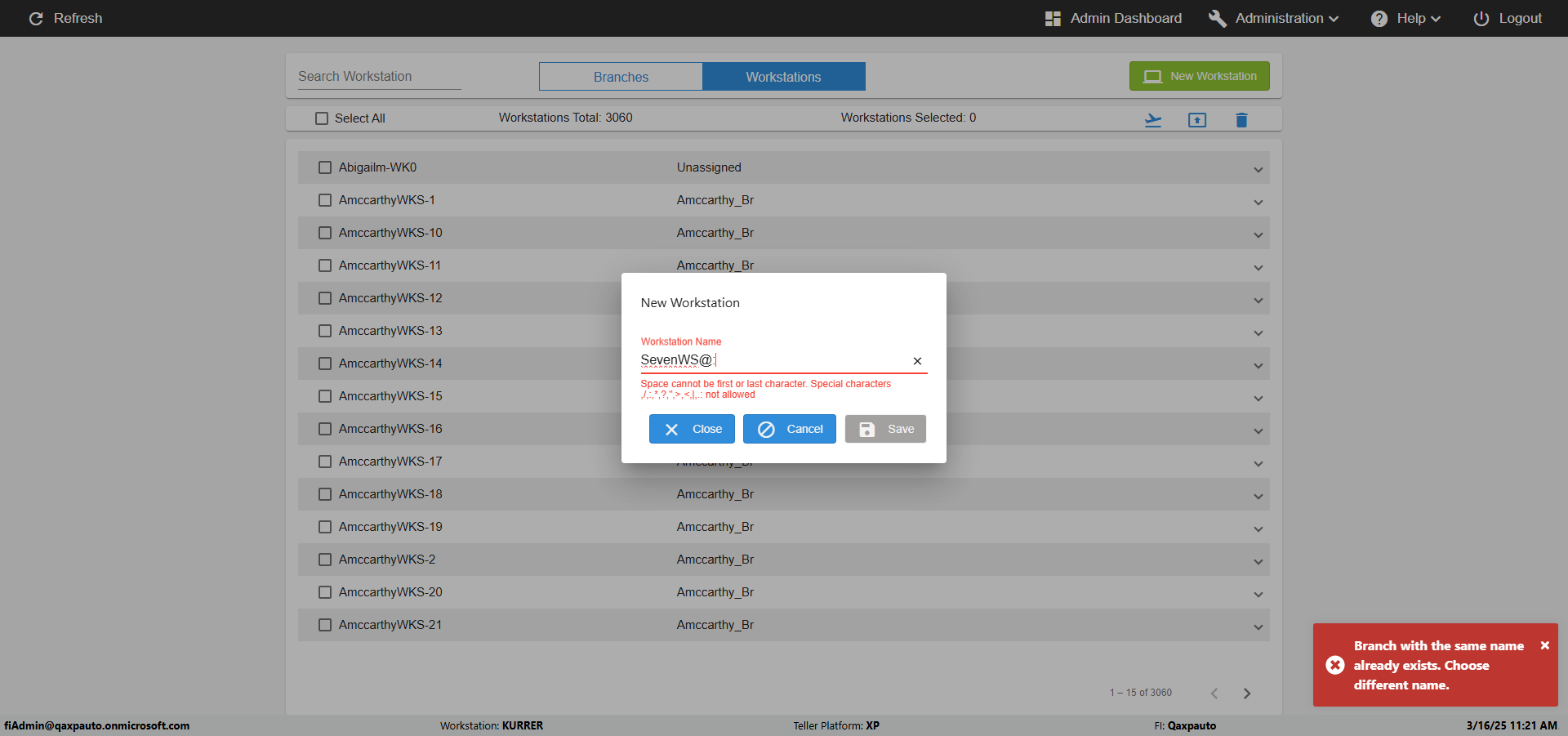 | 11:21:40 AM | set the Invalid Workstation name [ScreenShot] | |